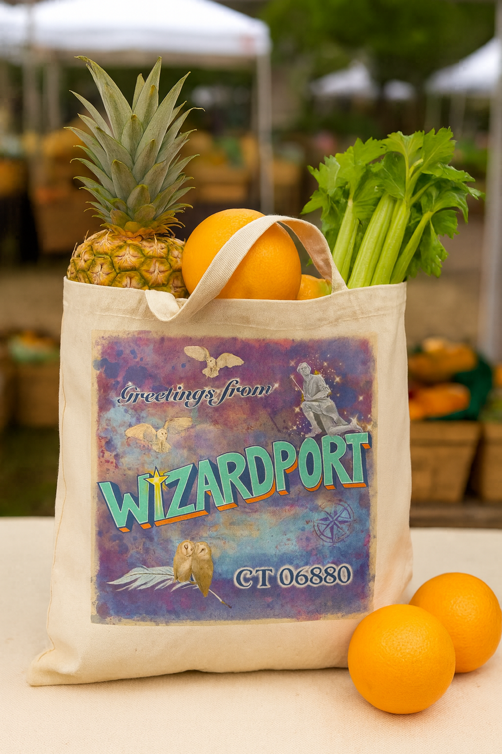 ✨ “Greetings from Wizardport, CT 06880” Magical Canvas Tote ✨