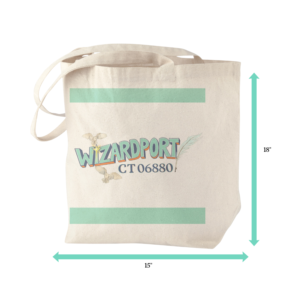 Carry a touch of enchantment wherever you go! This 100% cotton canvas tote bag features the vibrant, hand-illustrated Wizardport™, CT 06880 logo, bursting with color and whimsical charm. Each design is lovingly crafted to capture the spirit of Wizardport — where everyday errands feel just a little more magical.
