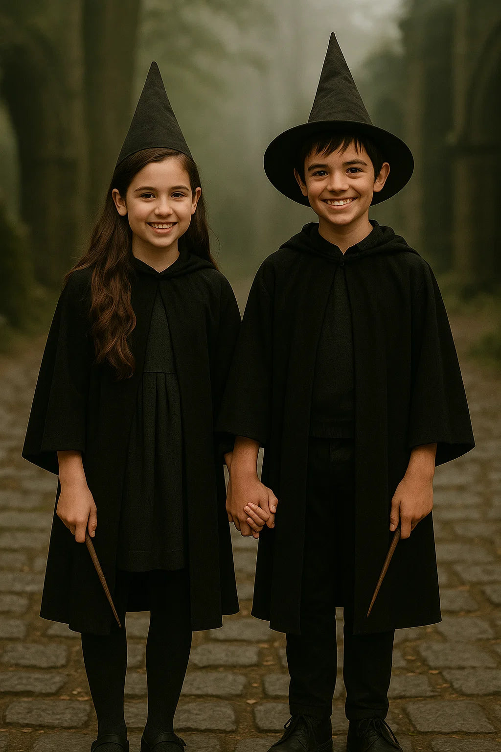 the 13-year-old to 15-year-old narrator and narratress couple / the 13-year-old to 15-year-old male and female protagonist couple / the 13-year-old to 15-year-old good human-witch and good human-wizard couple.