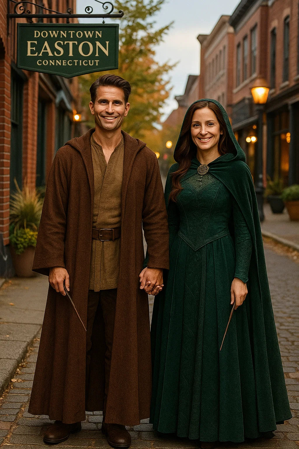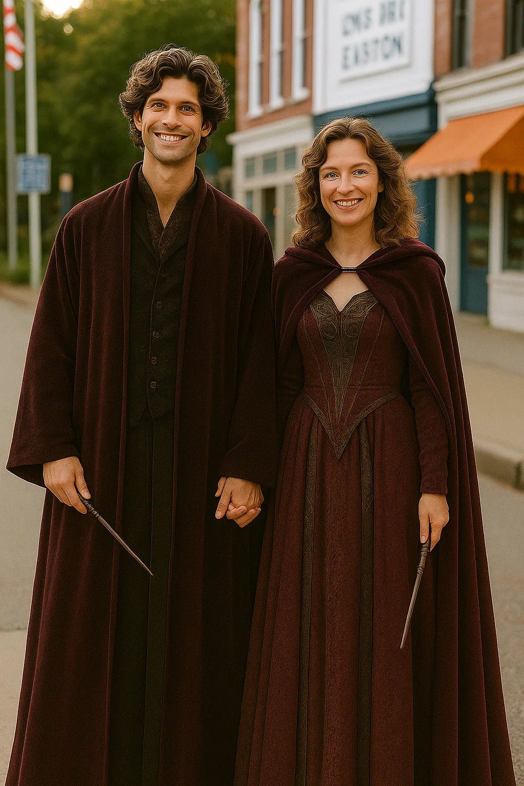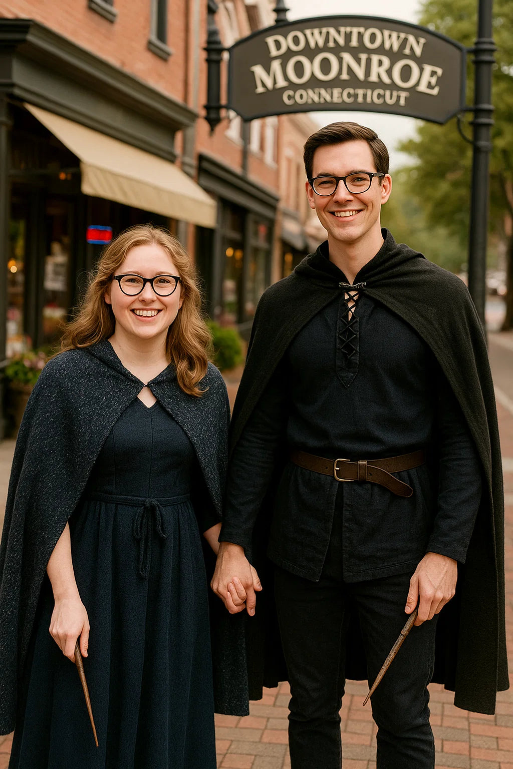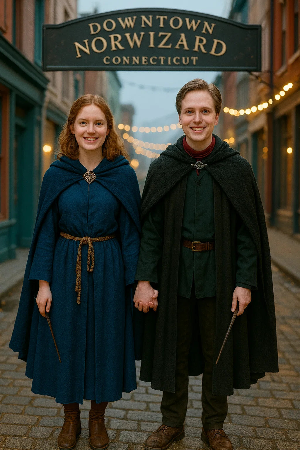 the 24-year-old to 26-year-old narrator and narratress precouple / the 24-year-old to 26-year-old male and female protagonist precouple / the 24-year-old to 26-year-old good human-witch and good human-wizard precouple / the owner and owneress couple of 9 Dragon Hill Rd, Wizardport, CT 06880.