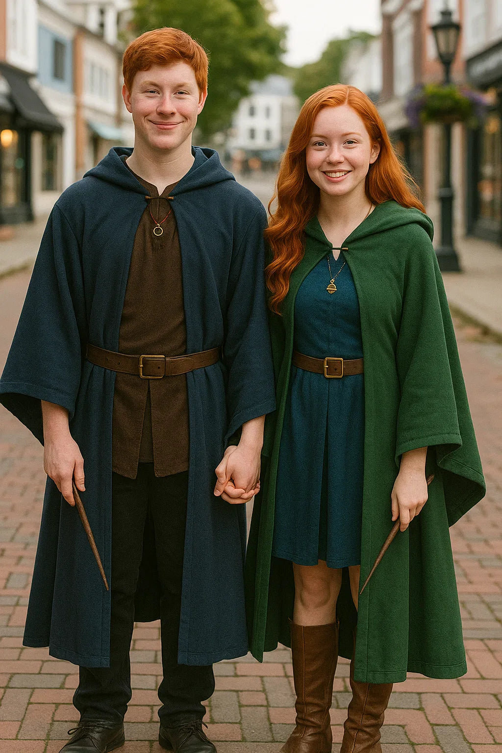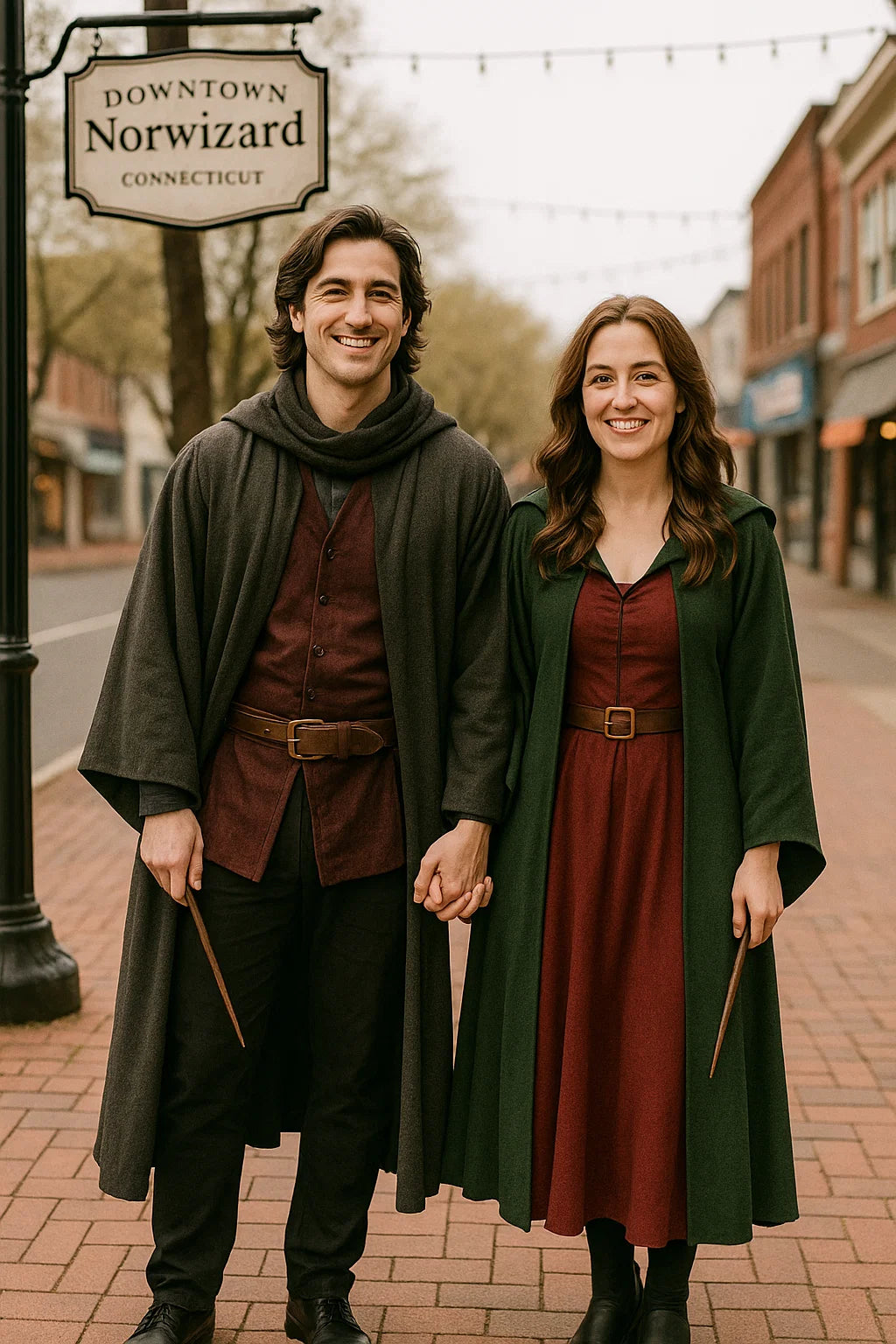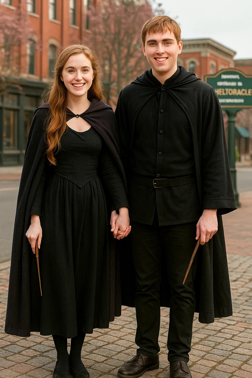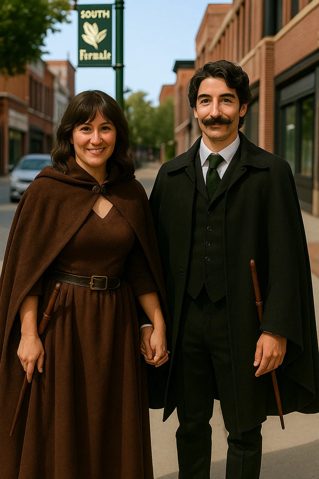 the 24-year-old to 26-year-old narrator and narratress precouple / the 24-year-old to 26-year-old male and female protagonist precouple / the 24-year-old to 26-year-old good human-witch and good human-wizard precouple / the owner and owneress couple of 9 Dragon Hill Rd, Wizardport, CT 06880.