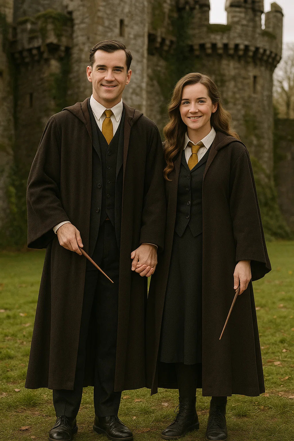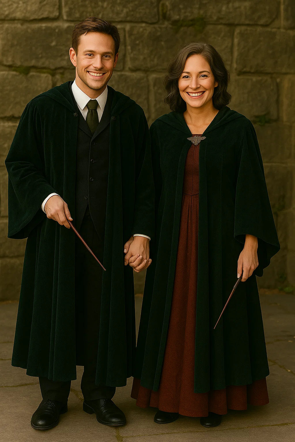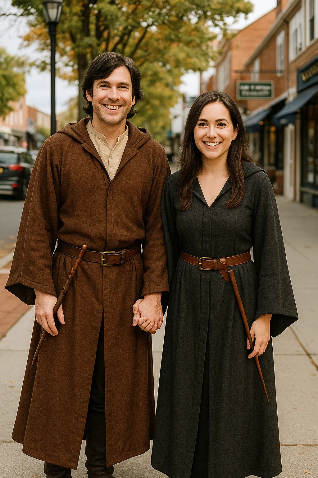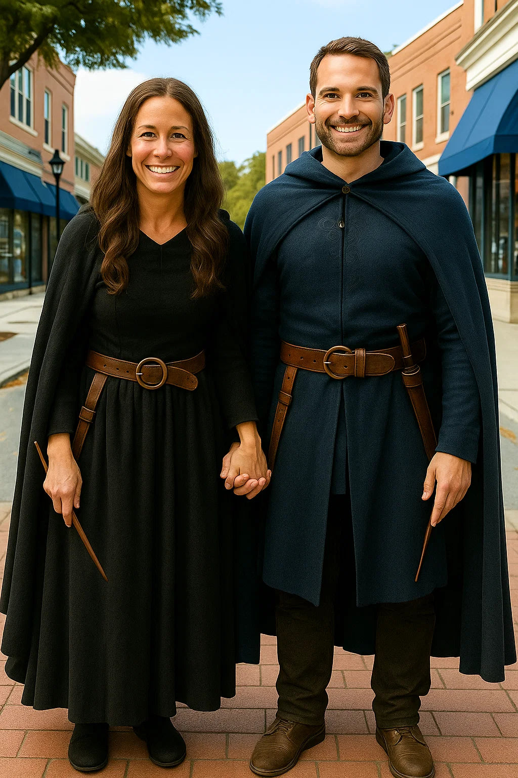 the 24-year-old to 26-year-old narrator and narratress precouple / the 24-year-old to 26-year-old male and female protagonist precouple / the 24-year-old to 26-year-old good human-witch and good human-wizard precouple / the owner and owneress couple of 9 Dragon Hill Rd, Wizardport, CT 06880.