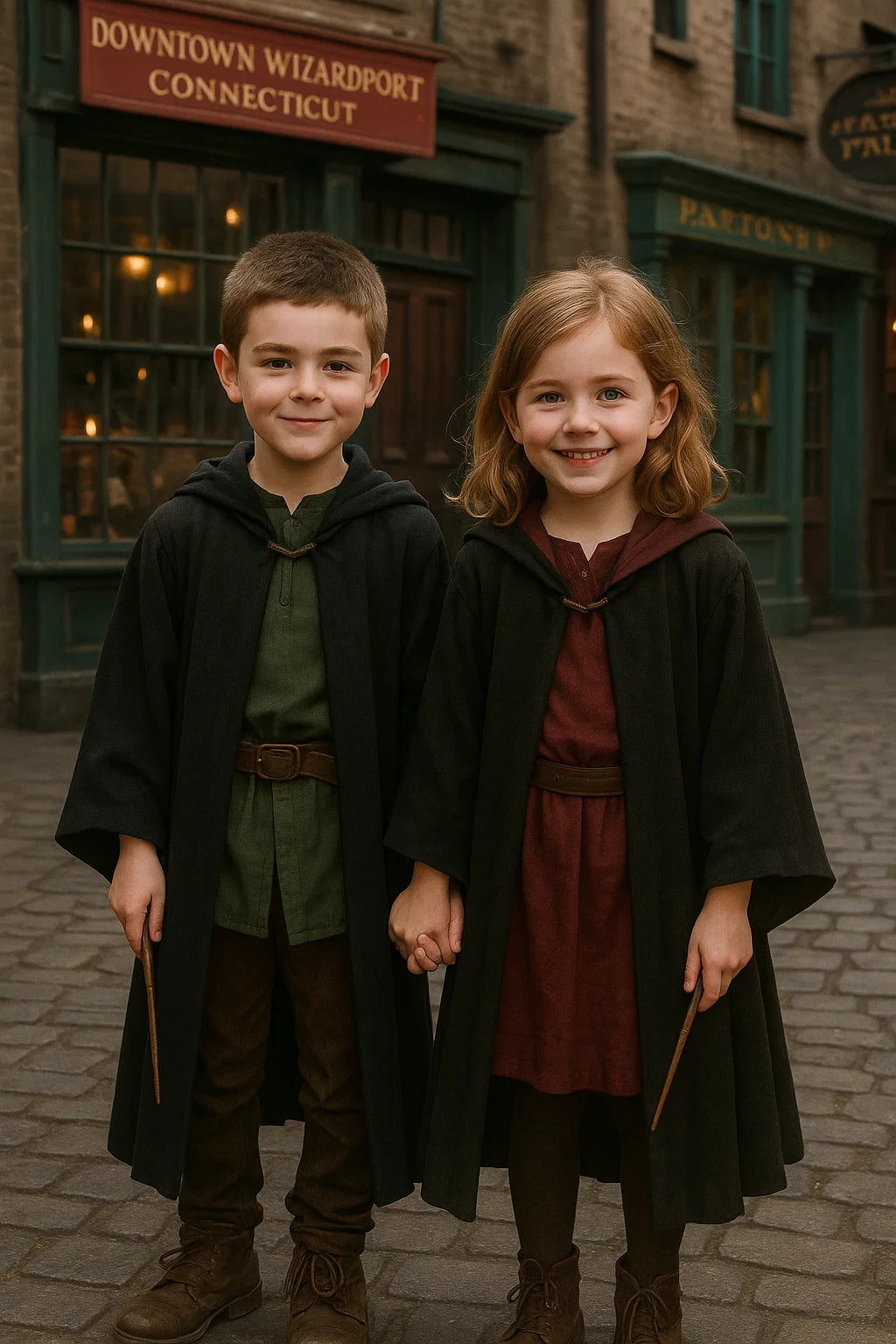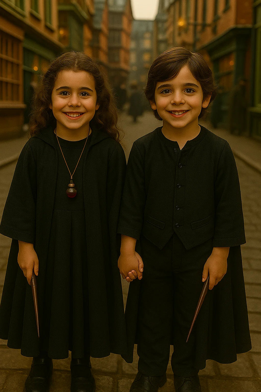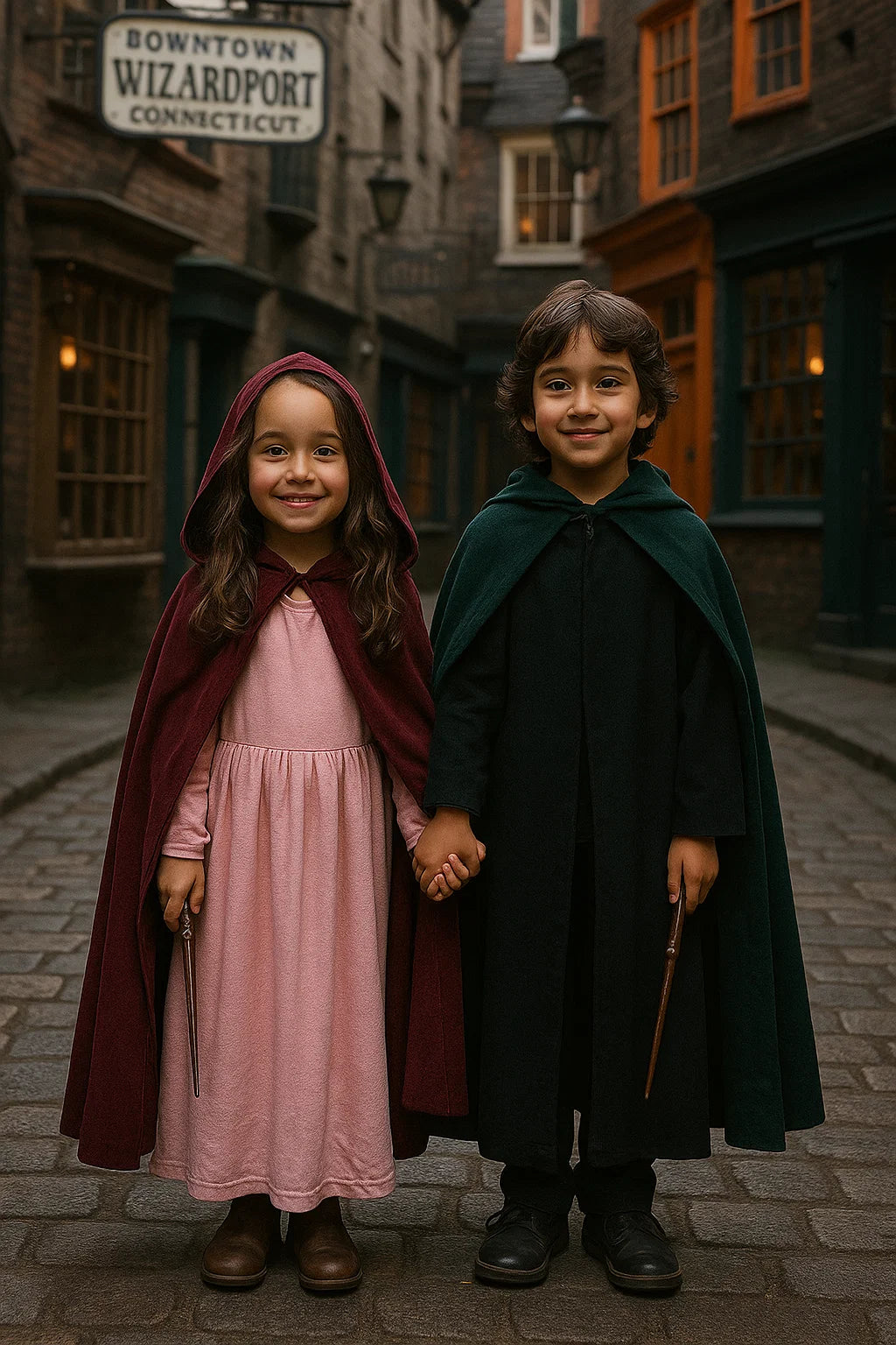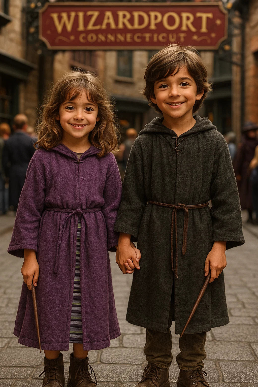 the 5-year-old to 7-year-old good human-witch and good human-wizard precouple / the New York counterparts of Errol Tyler Angelast and Errolla Tyleria Angelist