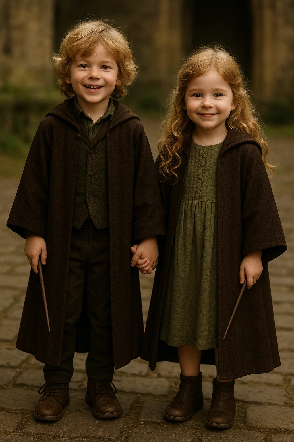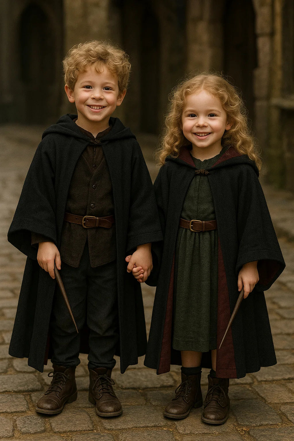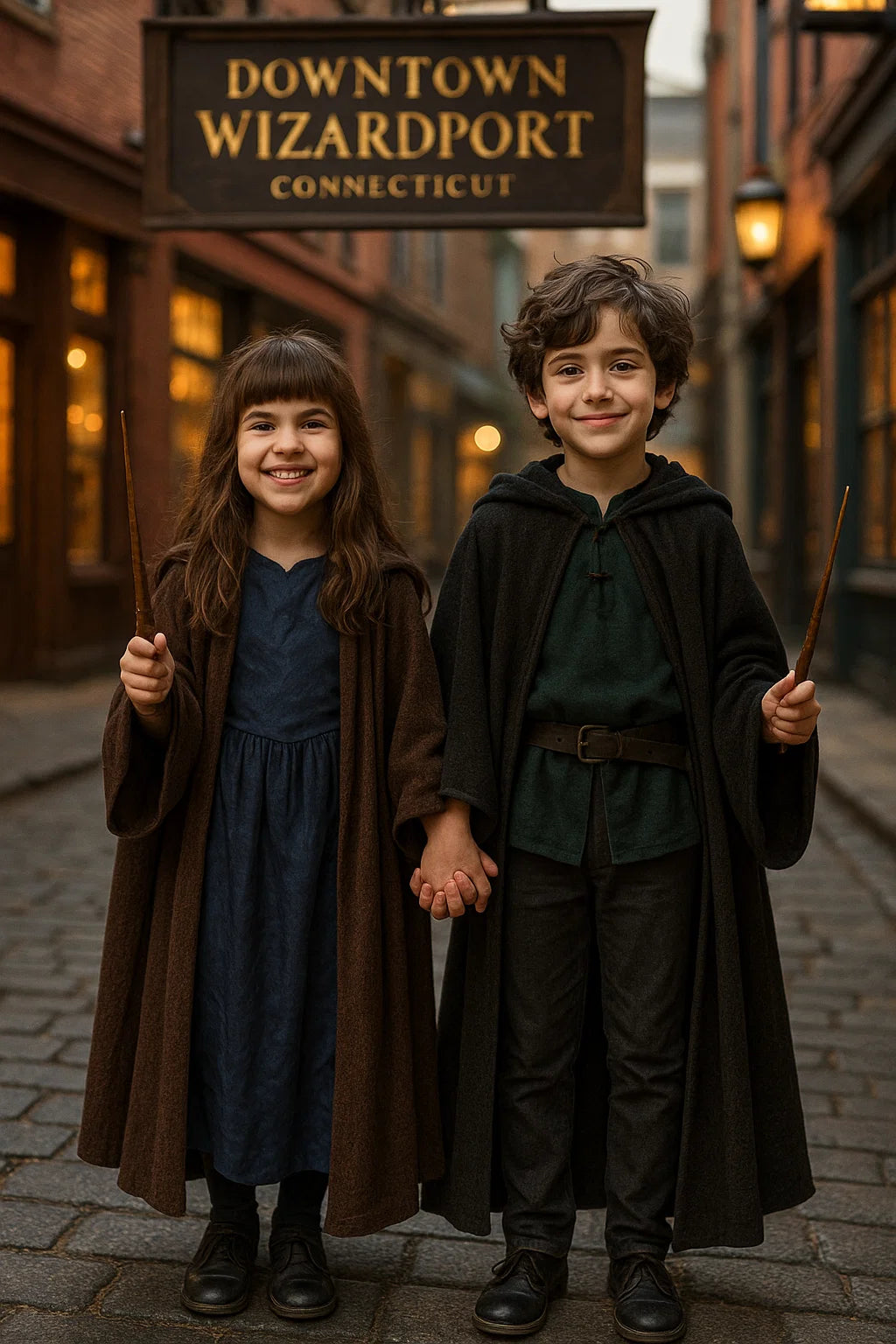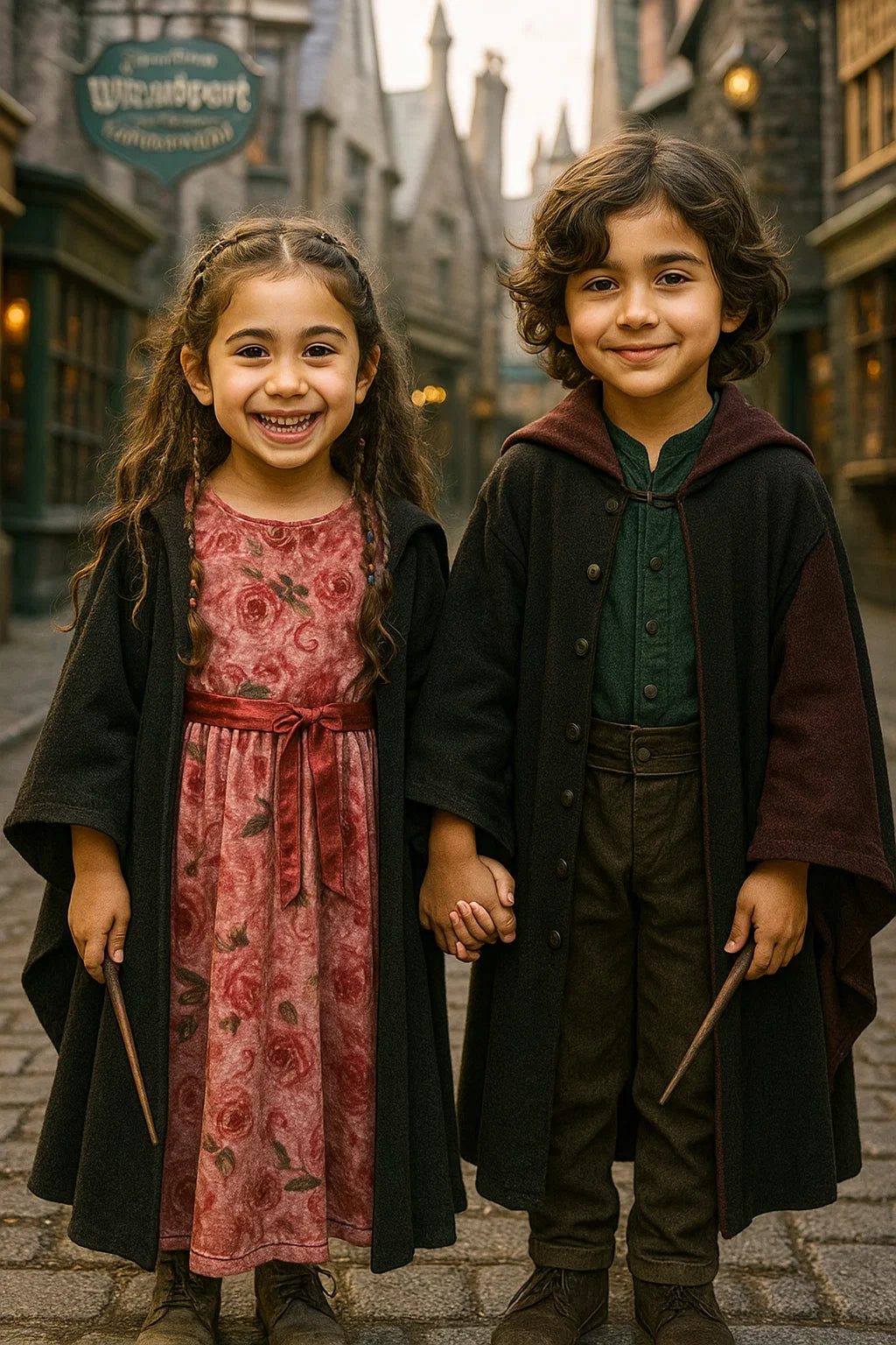 the 5-year-old to 7-year-old good human-witch and good human-wizard precouple / the New York counterparts of Errol Tyler Angelast and Errolla Tyleria Angelist