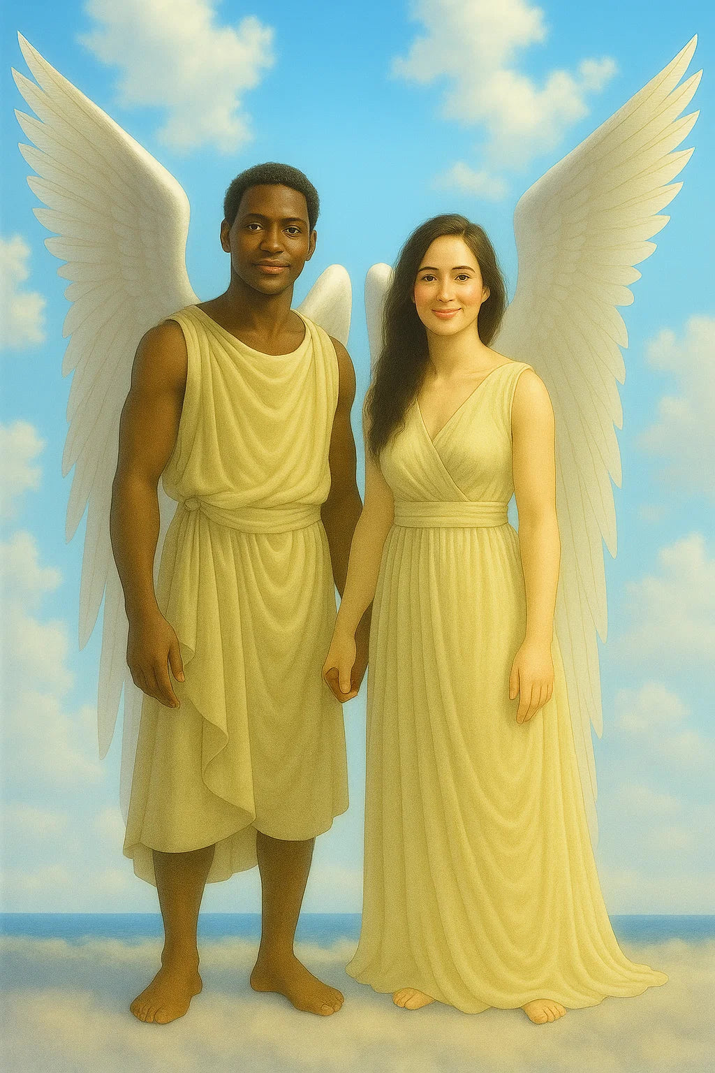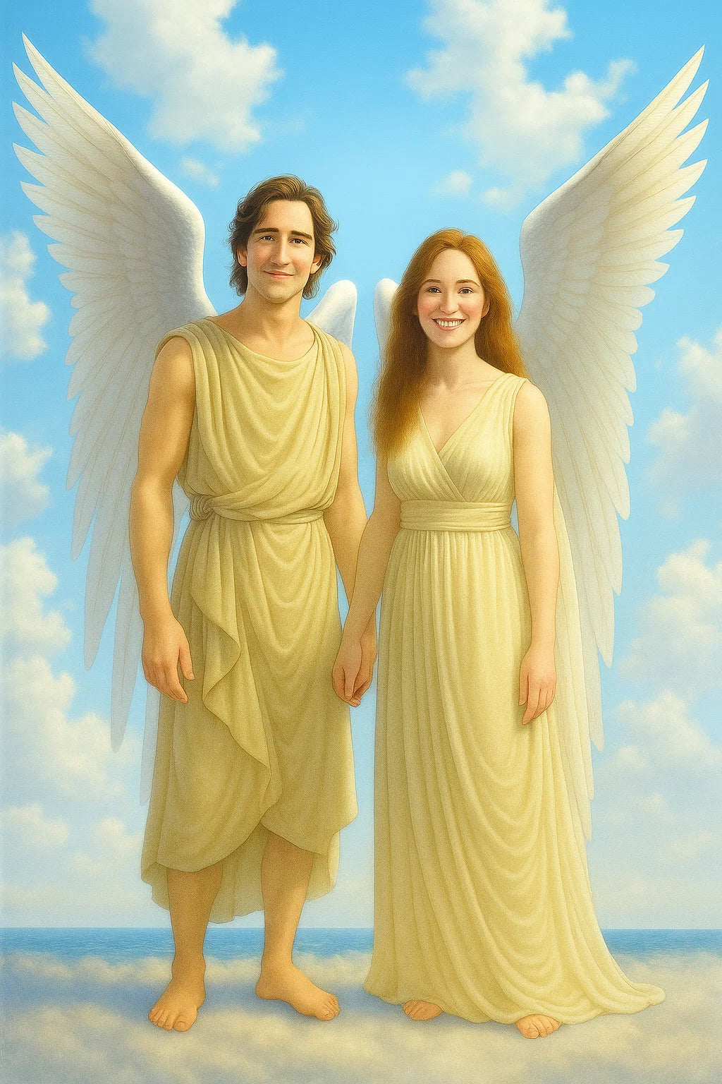 the creator and creatress couple of The Planet Eartha / the King and Queen couple of Heaven / the good humanoid-angel and good humanoid-angeless couple / the lawful mastermind and lawful mistressmind couple of The Affable Angels.