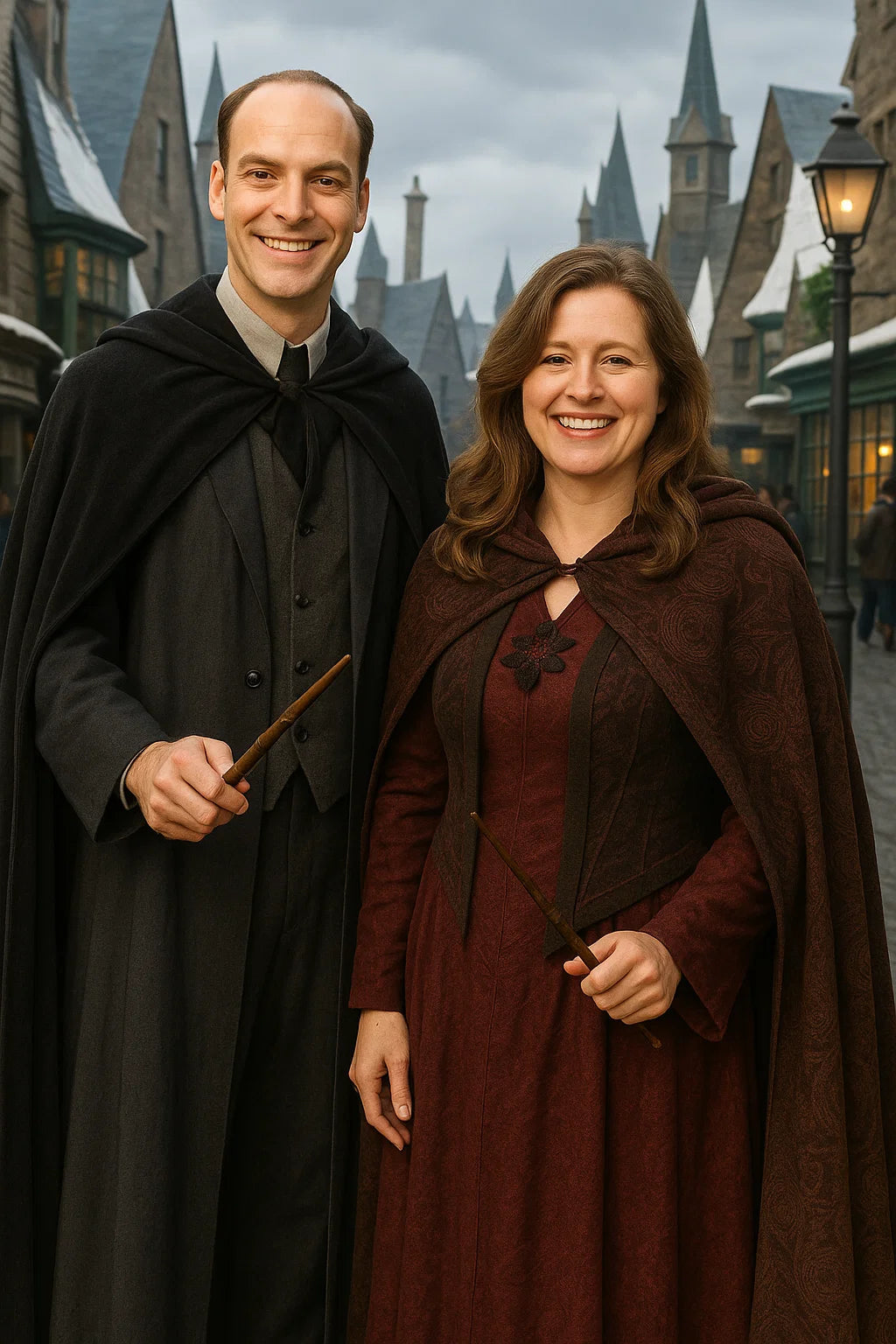Austin Bakkeren Angelast's 1st Maternal Cousin and Cousin-in-law Once Removed / the owner and owneress couple of 82 Shorefairy Park, Norwizard, CT 06850 / the 35-year-old good human-witch and good human-wizard couple.