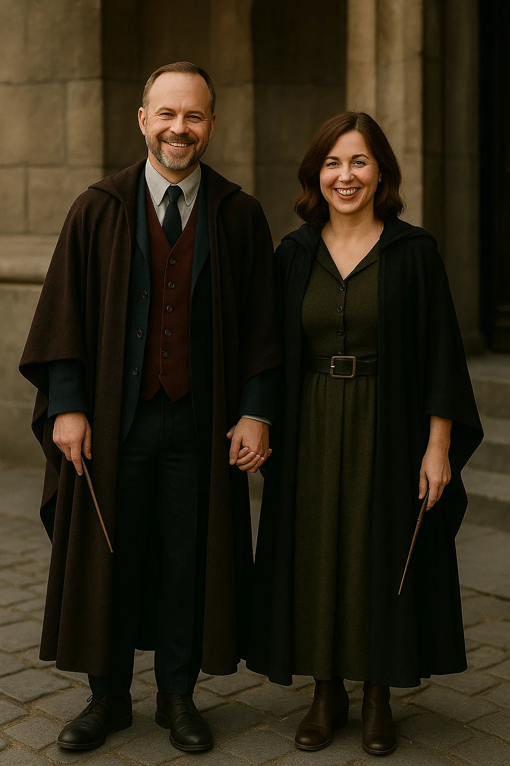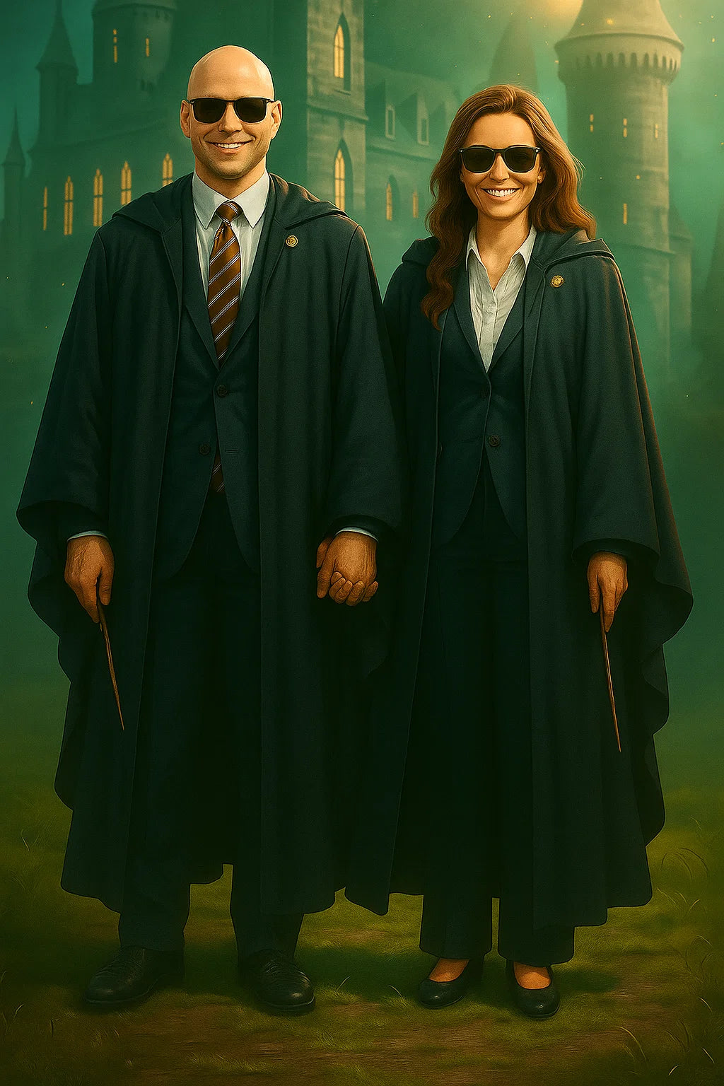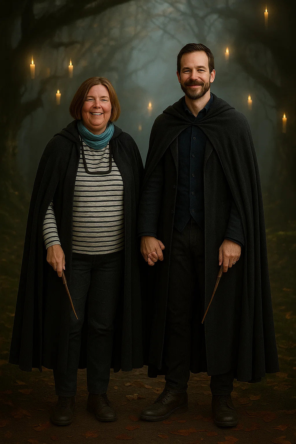 Austin Bakkeren Angelast's illustrator and Illustratress couple / the 35-year-old good human-witch and good human-wizard couple.
