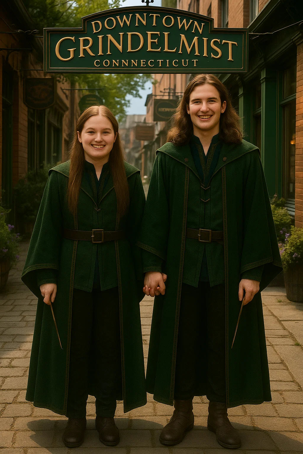 Austin Bakkeren Angelast's Maternal Grandparents / the owner and owneress couple of 3 Dollar Summit Rd, Wizardport, CT 06880 / the 35-year-old good human-witch and good human-wizard couple.