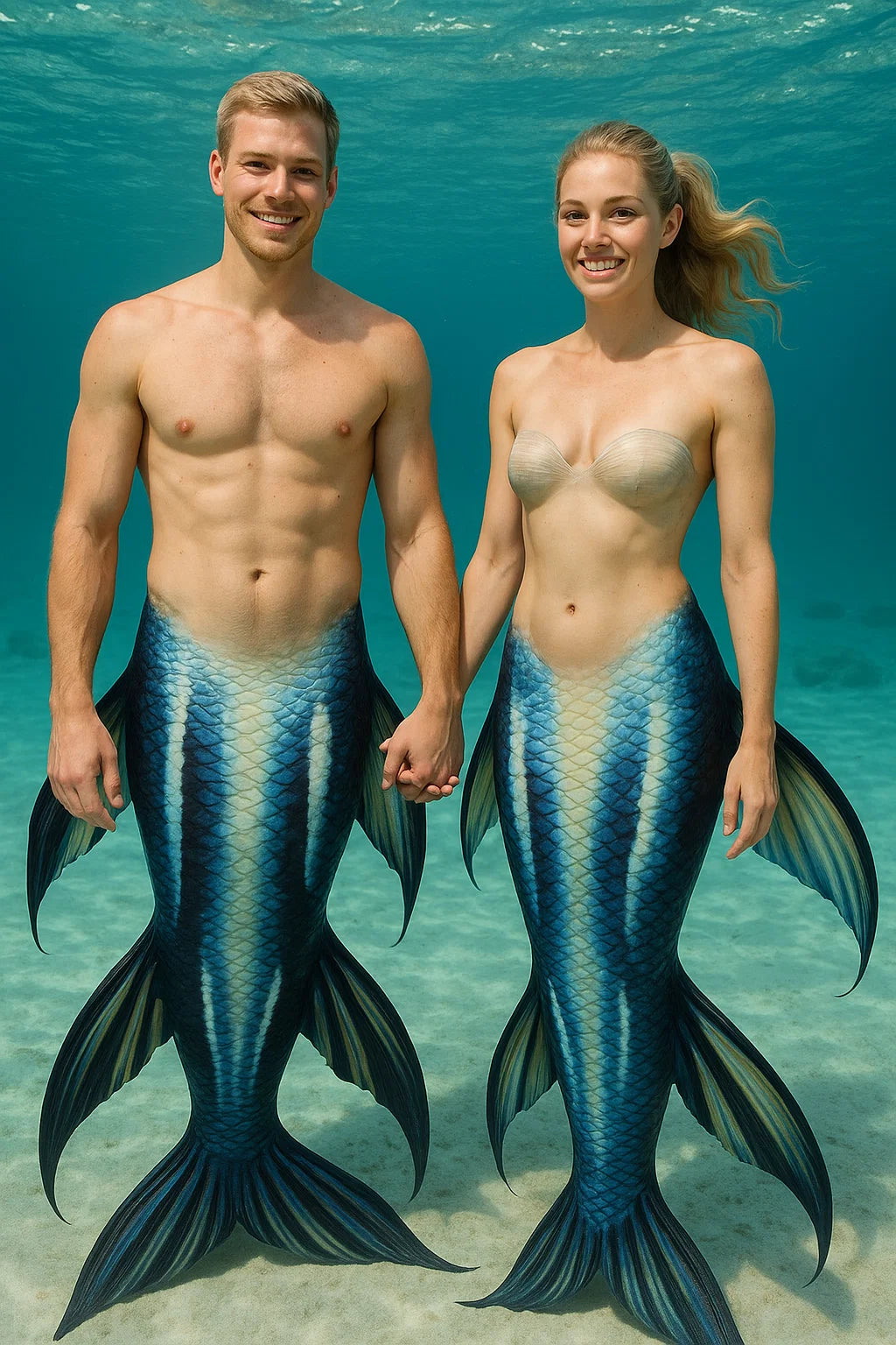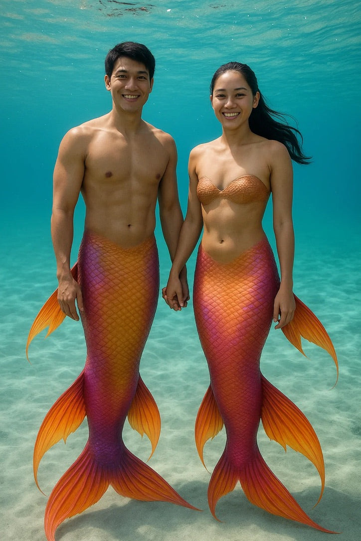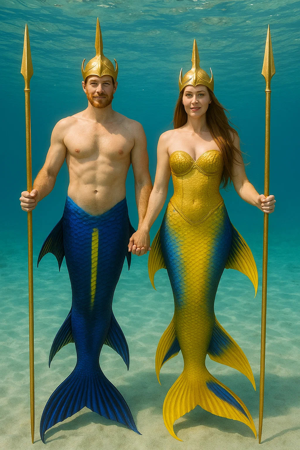 the prince and princess couple of Aquanara / the 35-year-old merman and mermaid couple.