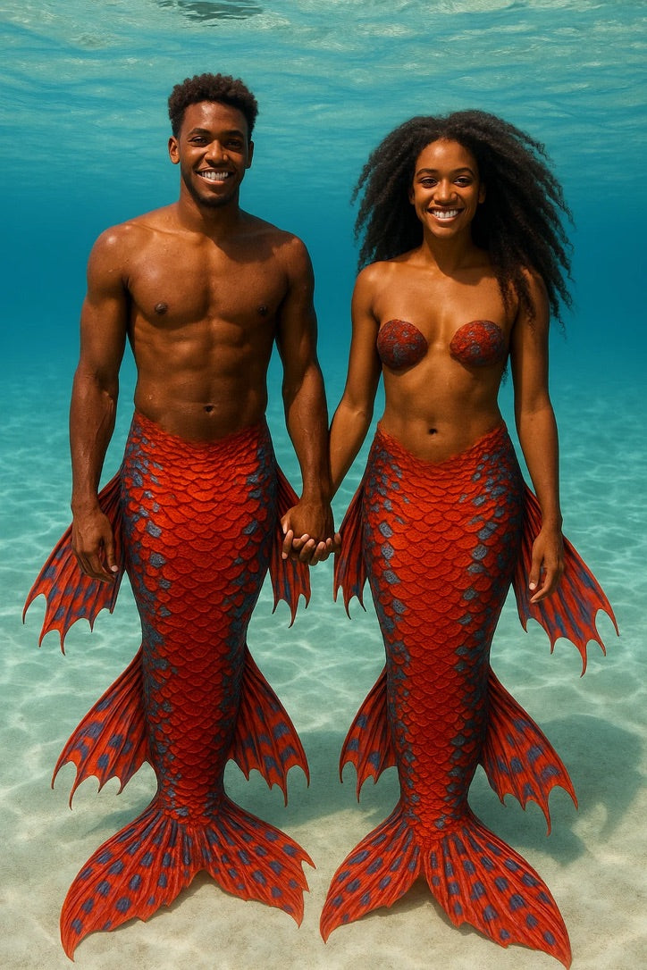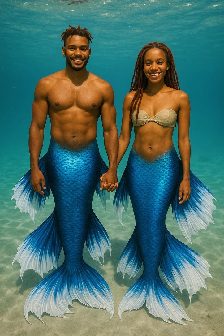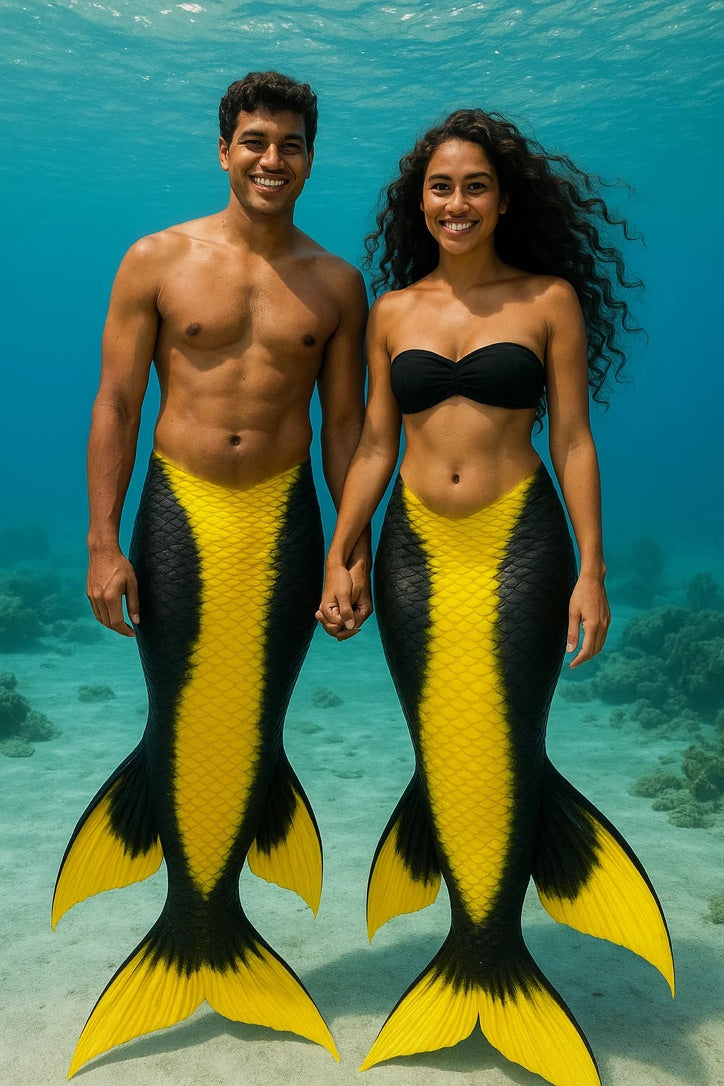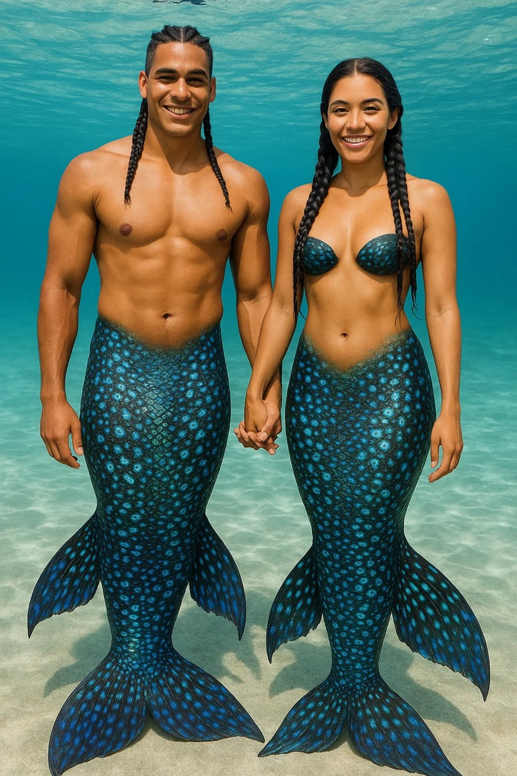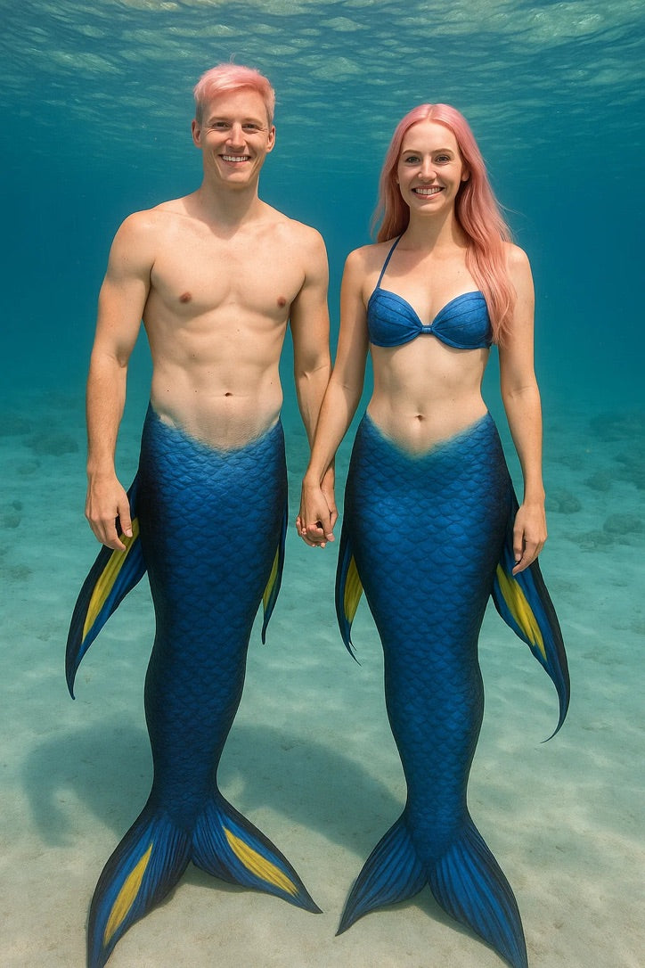 the prince and princess couple of Aquanara / the 35-year-old merman and mermaid couple.