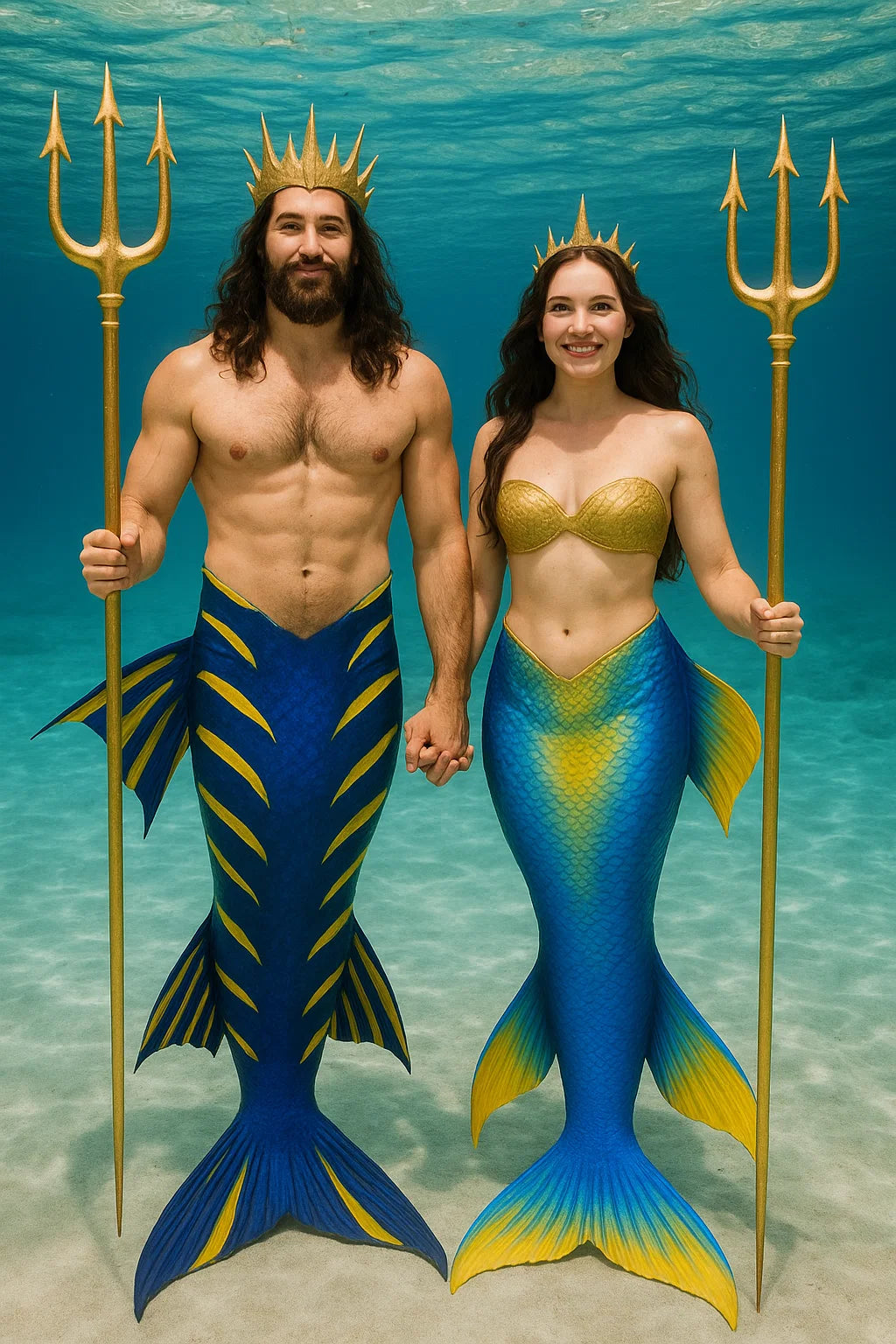 the King and Queen couple of Aquanara / the 35-year-old merman and mermaid couple.