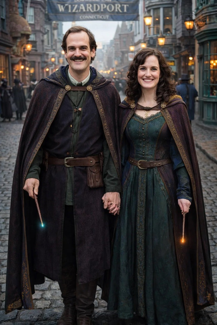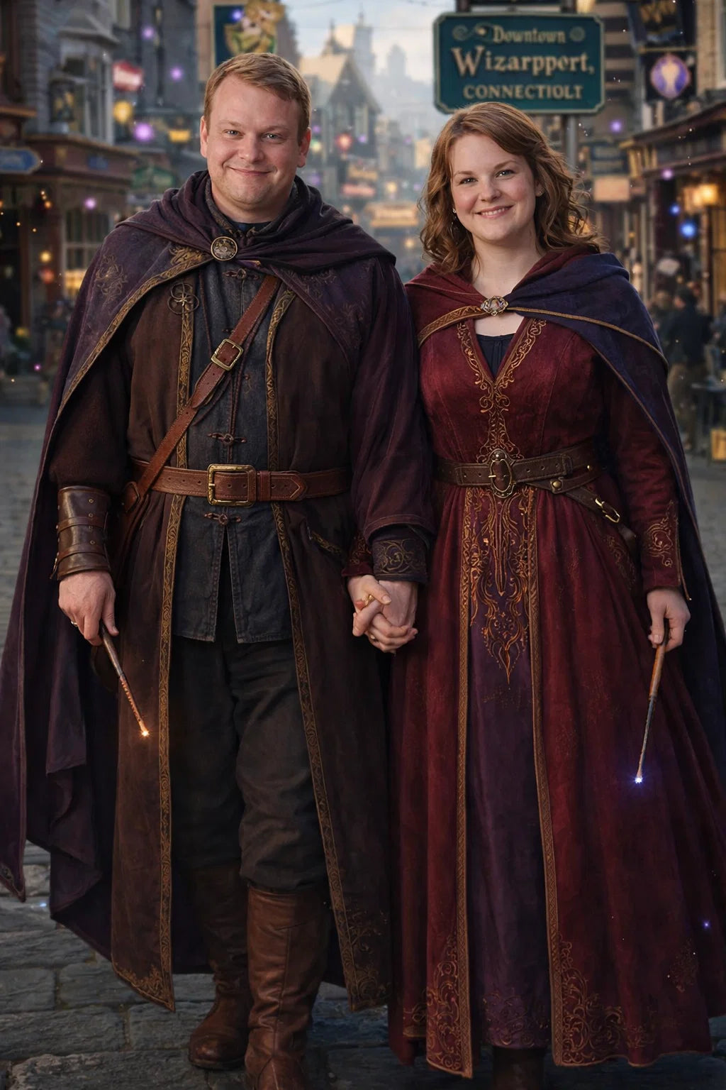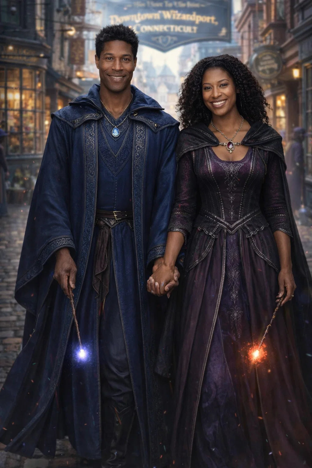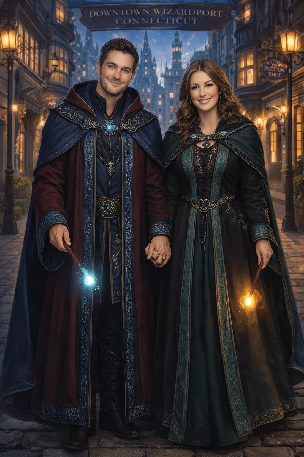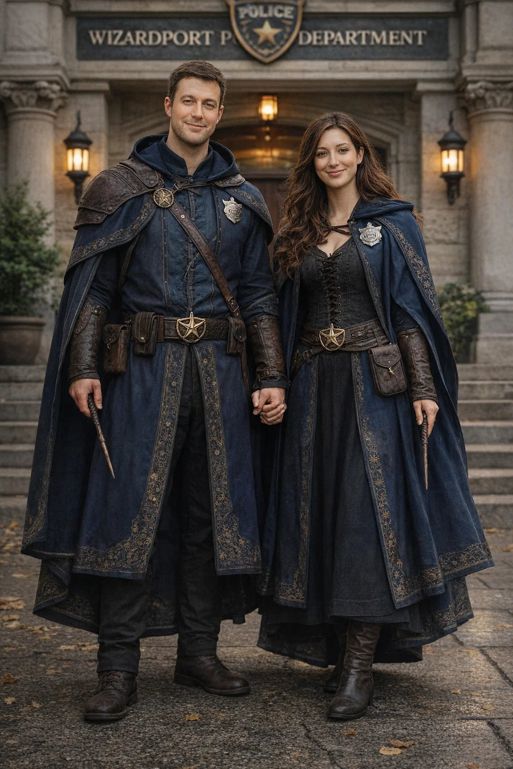 the police captain and police captainess couple of Wizardport Police Department / the 35-year-old good human-witch and good human-wizard couple / the owner and owneress couple of 5 Foxfairy Ln, Wizardport, CT 06880, United States of America.
