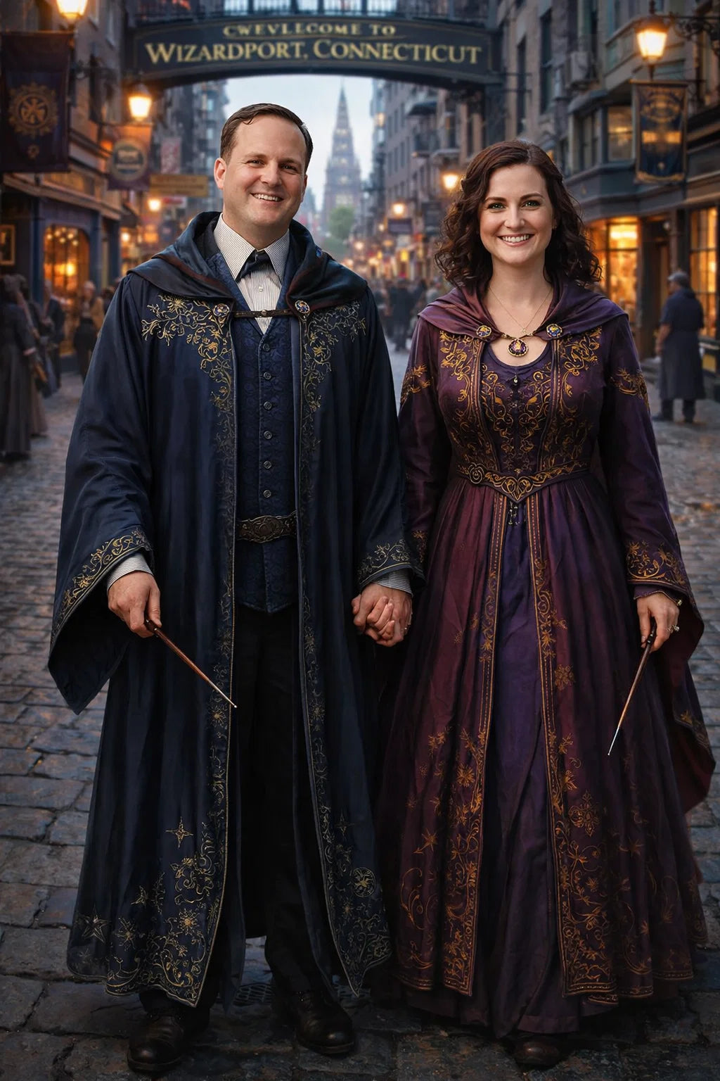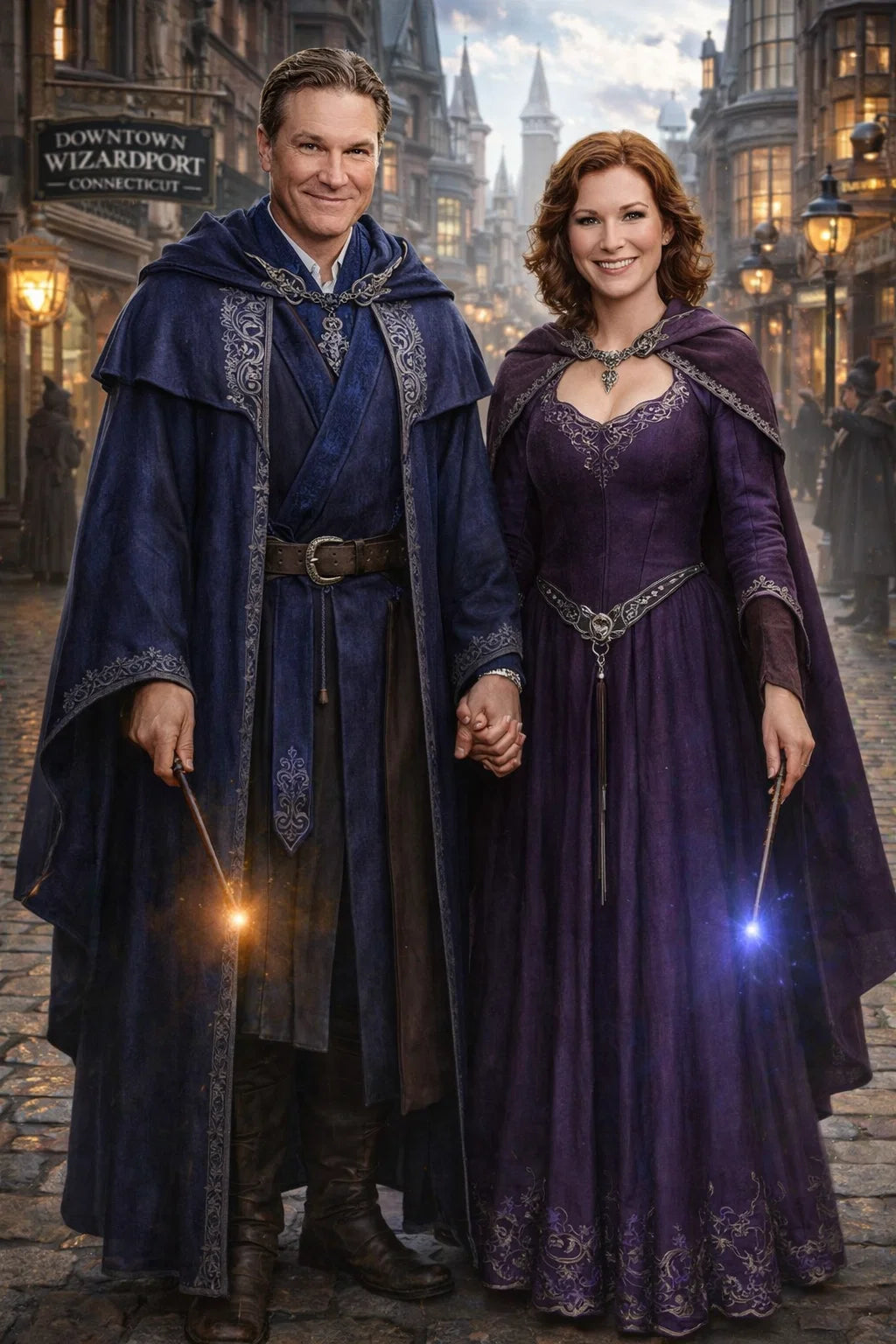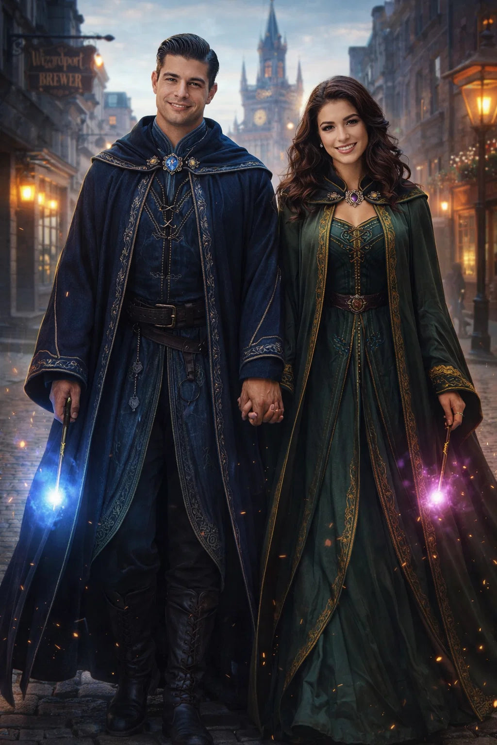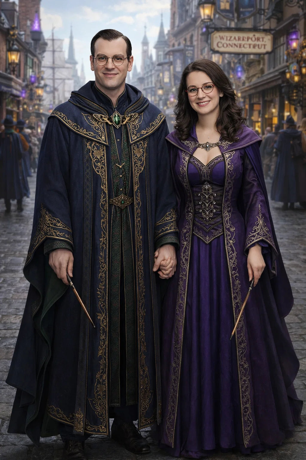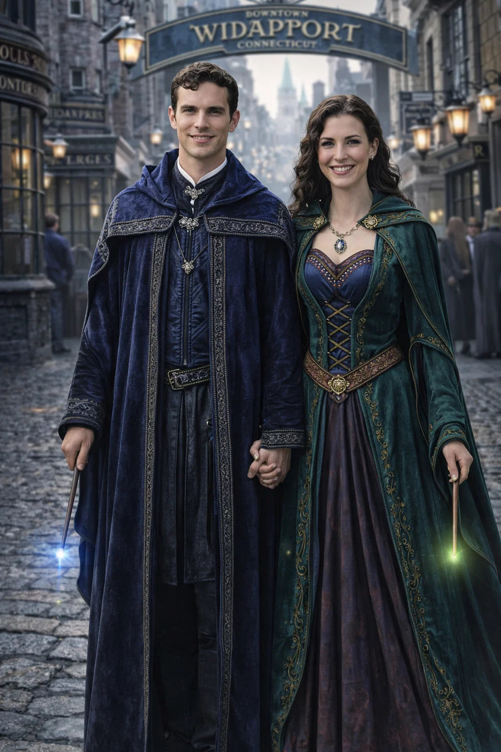 the police captain and police captainess couple of Wizardport Police Department / the 35-year-old good human-witch and good human-wizard couple / the owner and owneress couple of 5 Foxfairy Ln, Wizardport, CT 06880, United States of America.