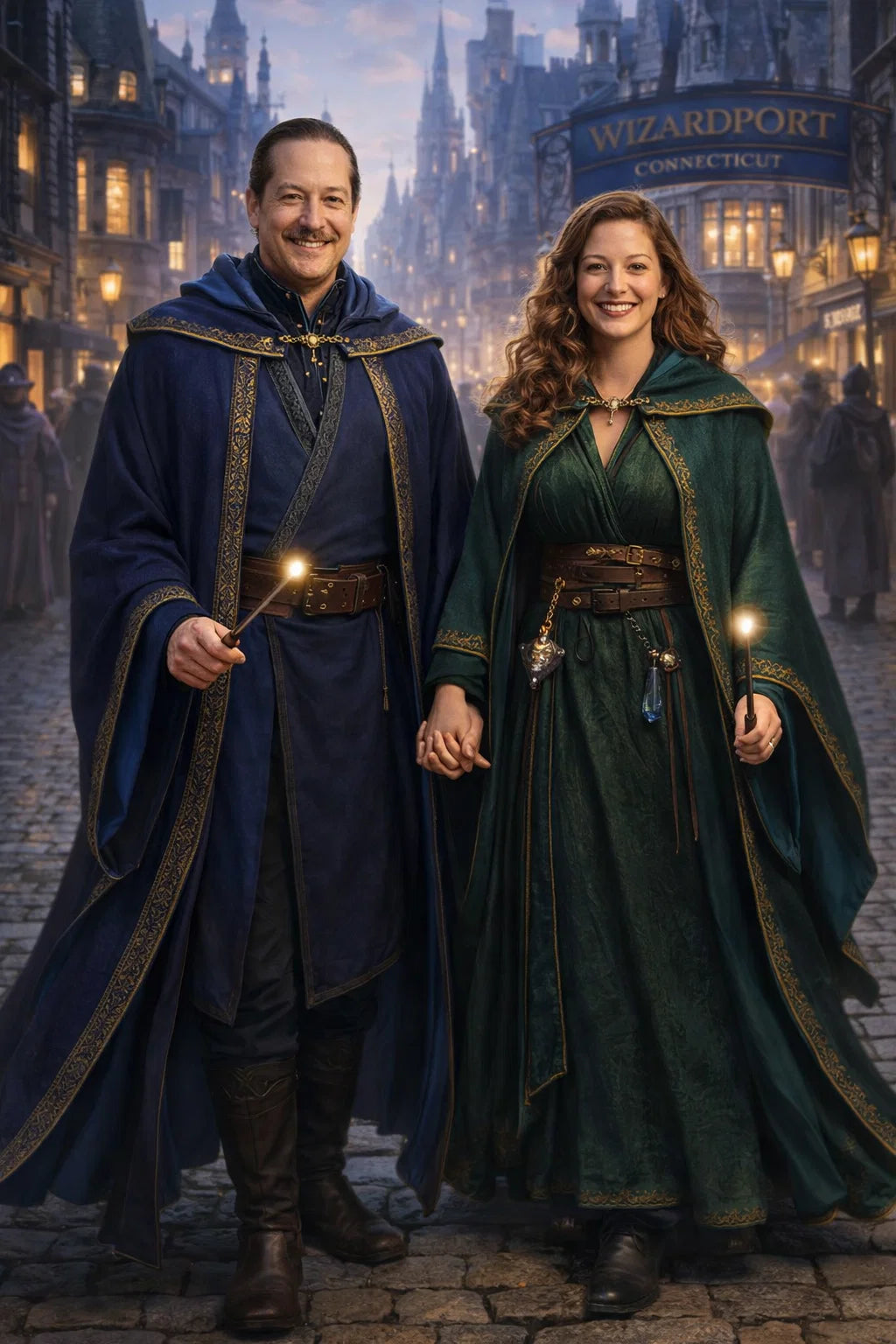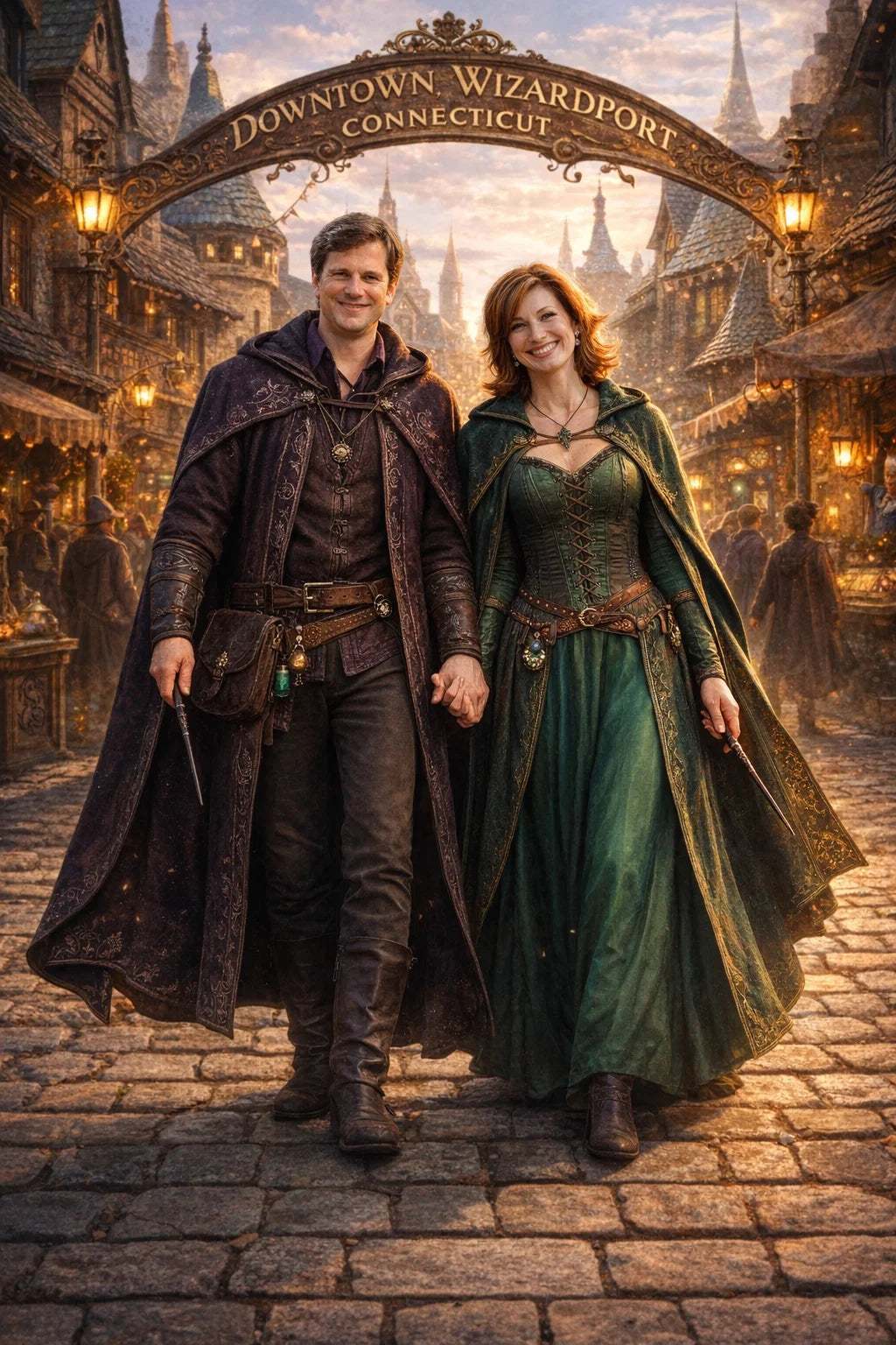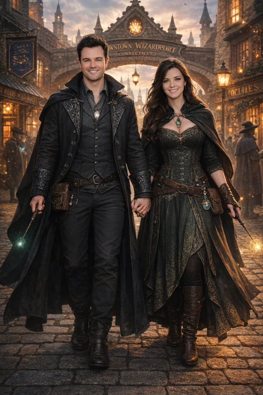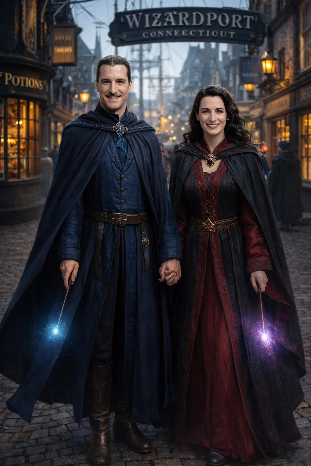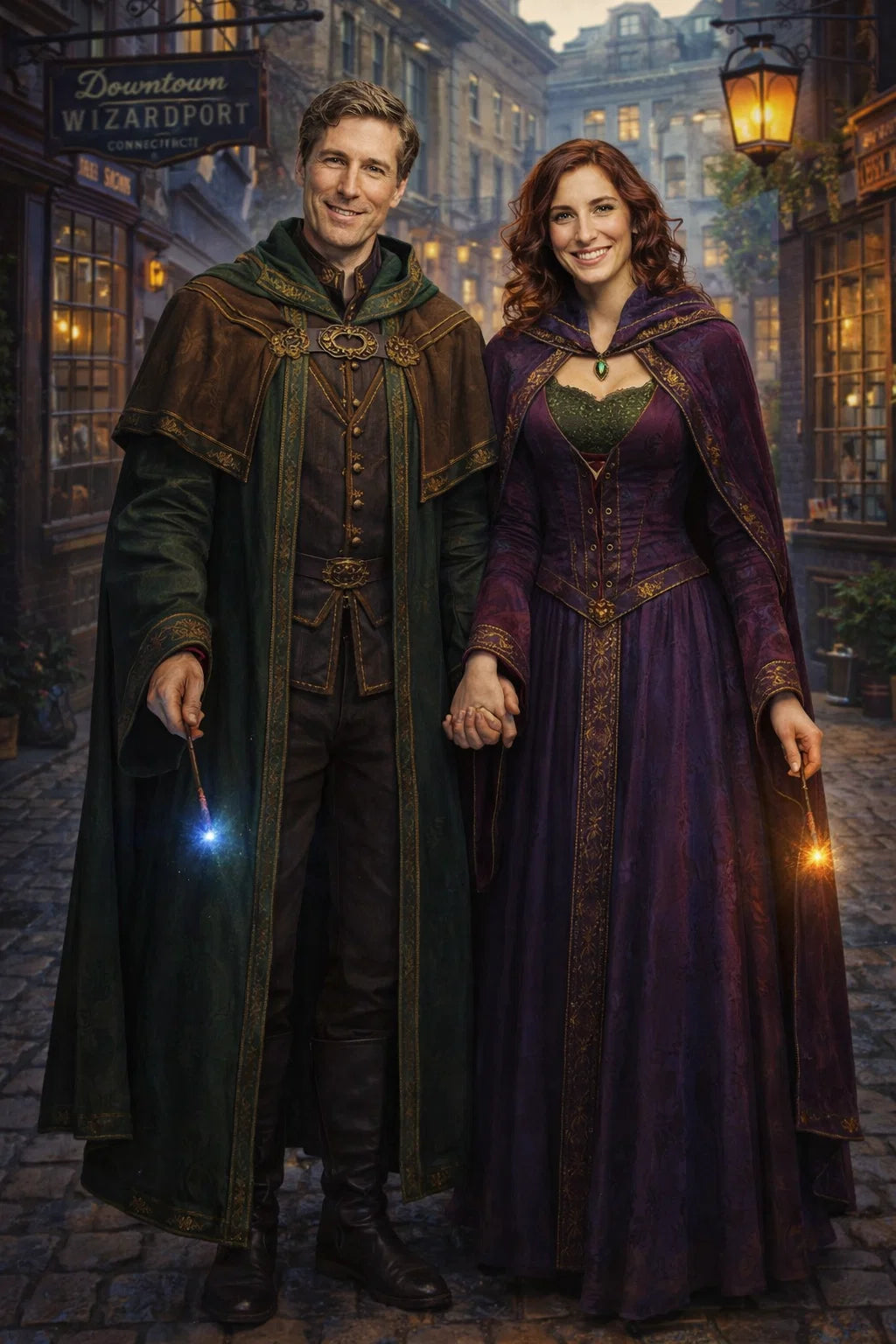 the police captain and police captainess couple of Wizardport Police Department / the 35-year-old good human-witch and good human-wizard couple / the owner and owneress couple of 5 Foxfairy Ln, Wizardport, CT 06880, United States of America.