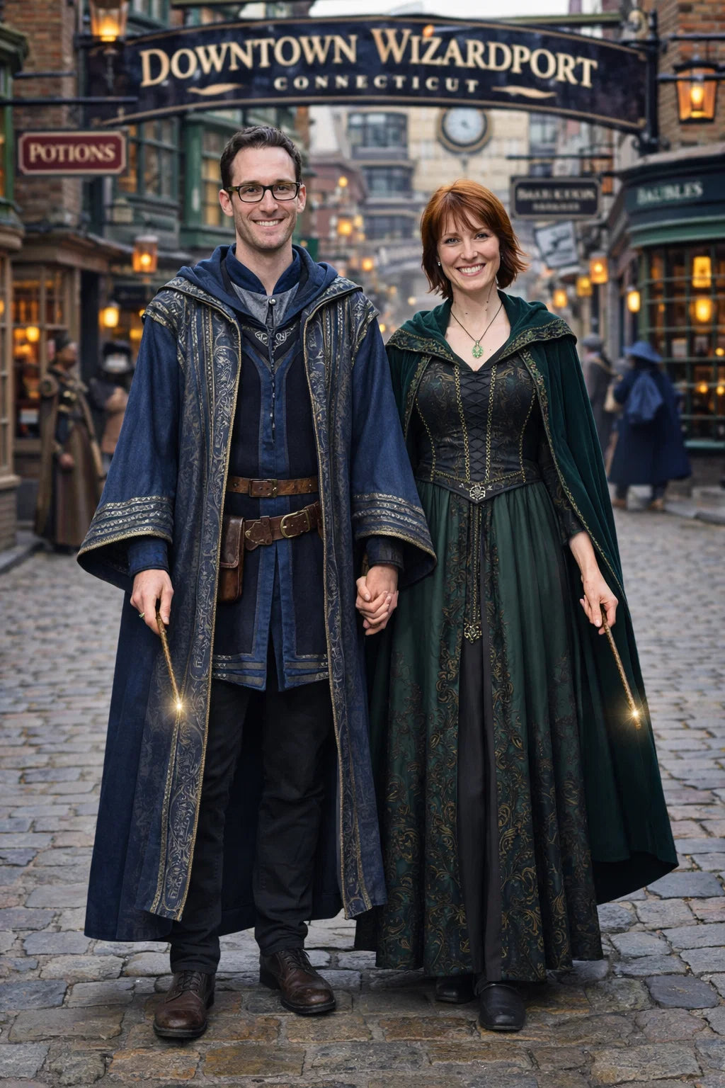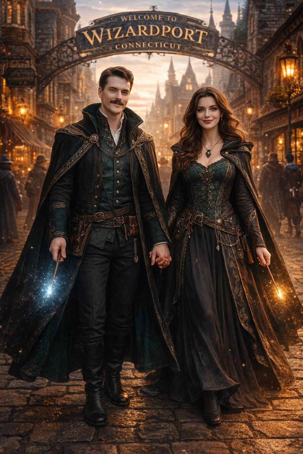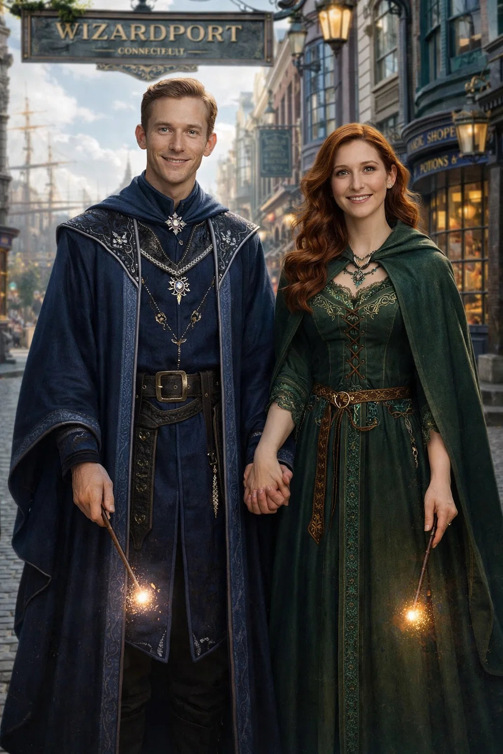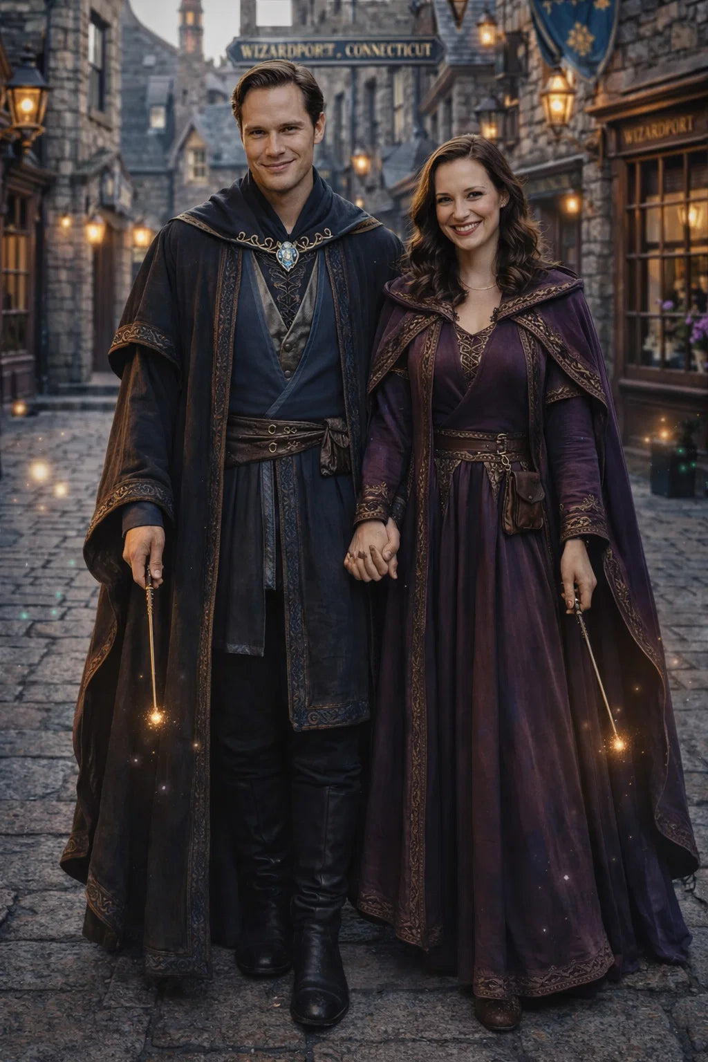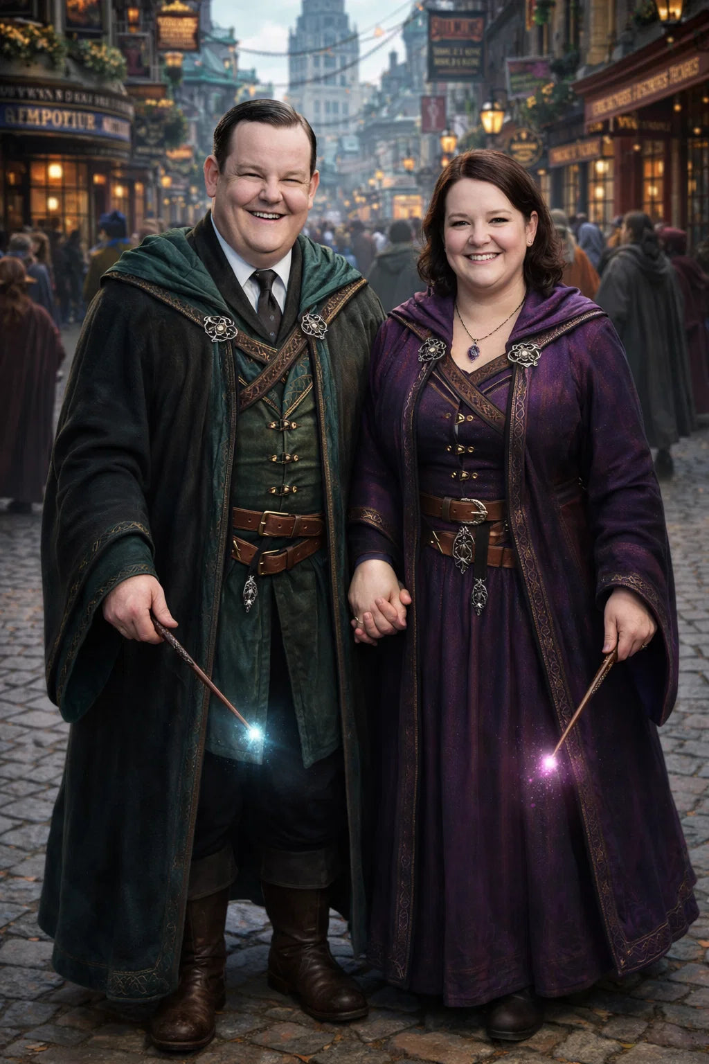 the police captain and police captainess couple of Wizardport Police Department / the 35-year-old good human-witch and good human-wizard couple / the owner and owneress couple of 5 Foxfairy Ln, Wizardport, CT 06880, United States of America.