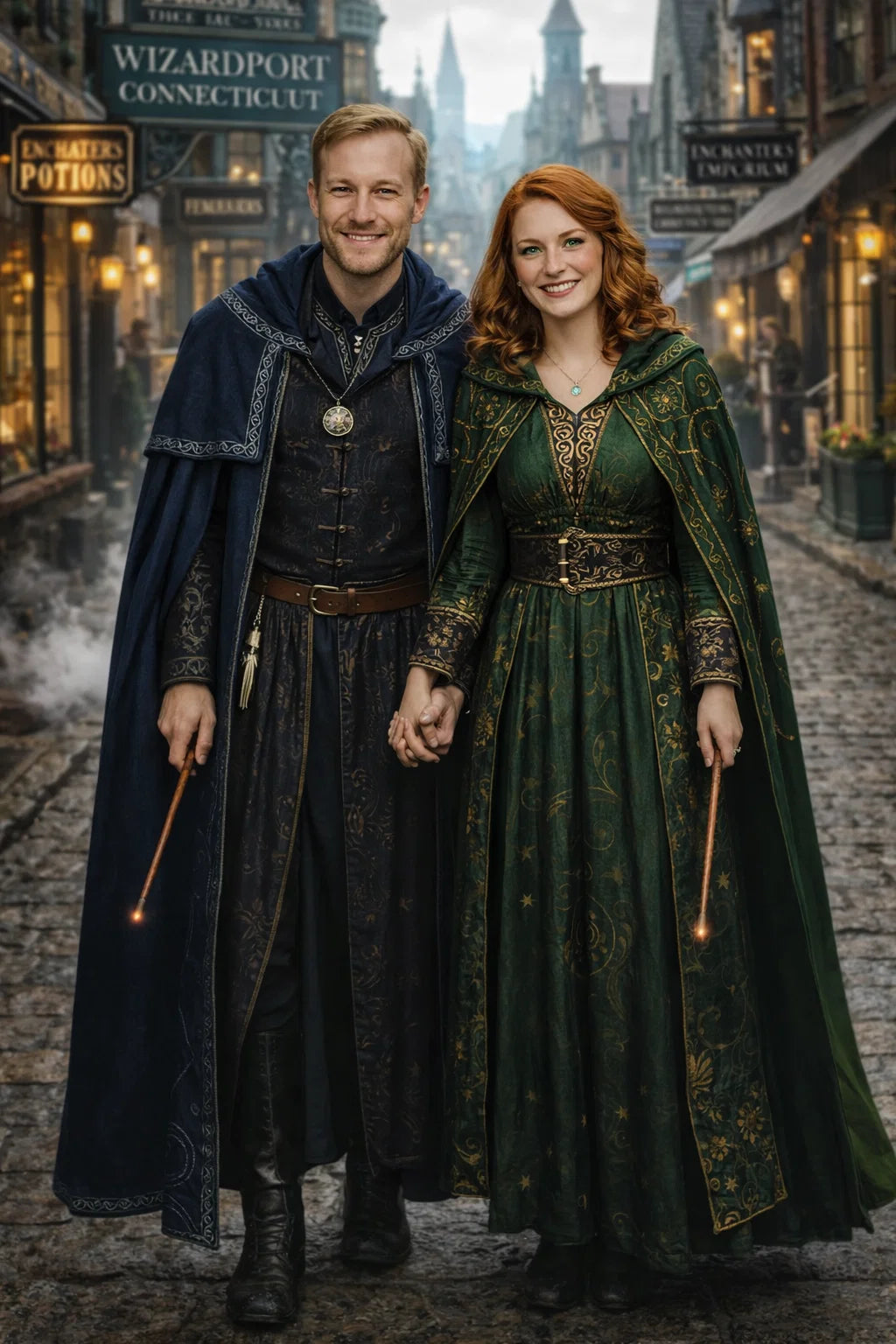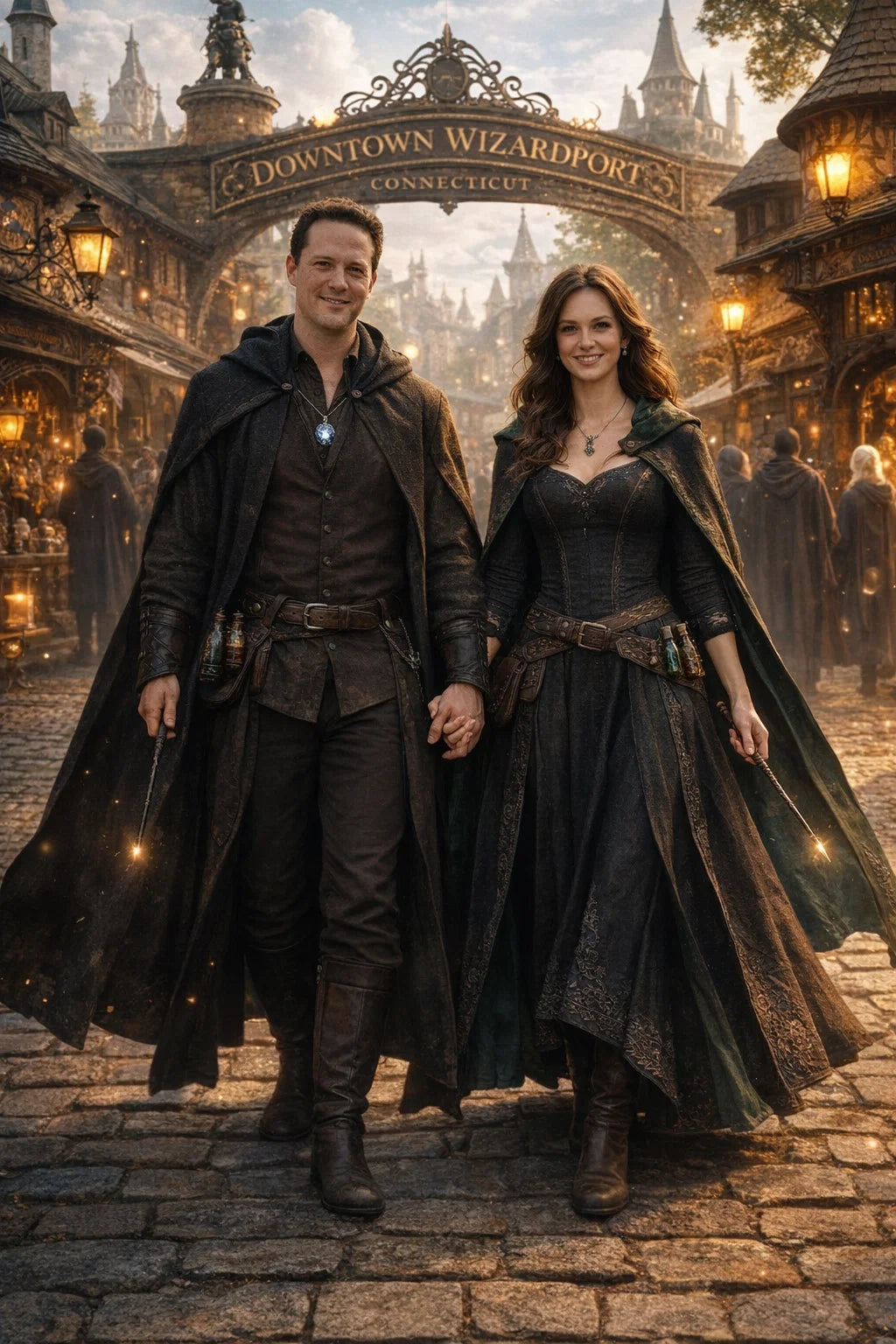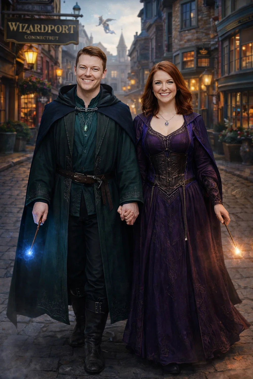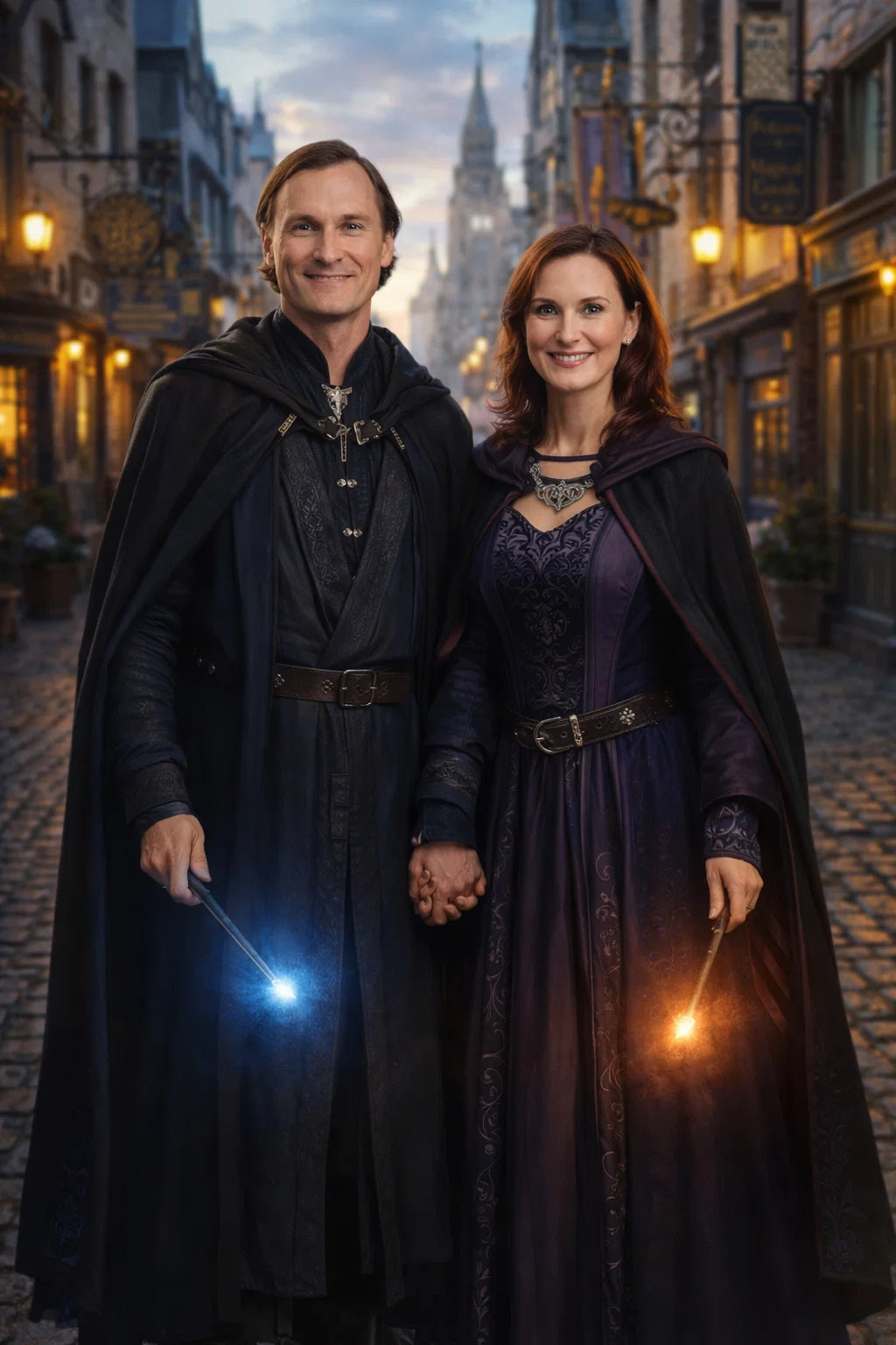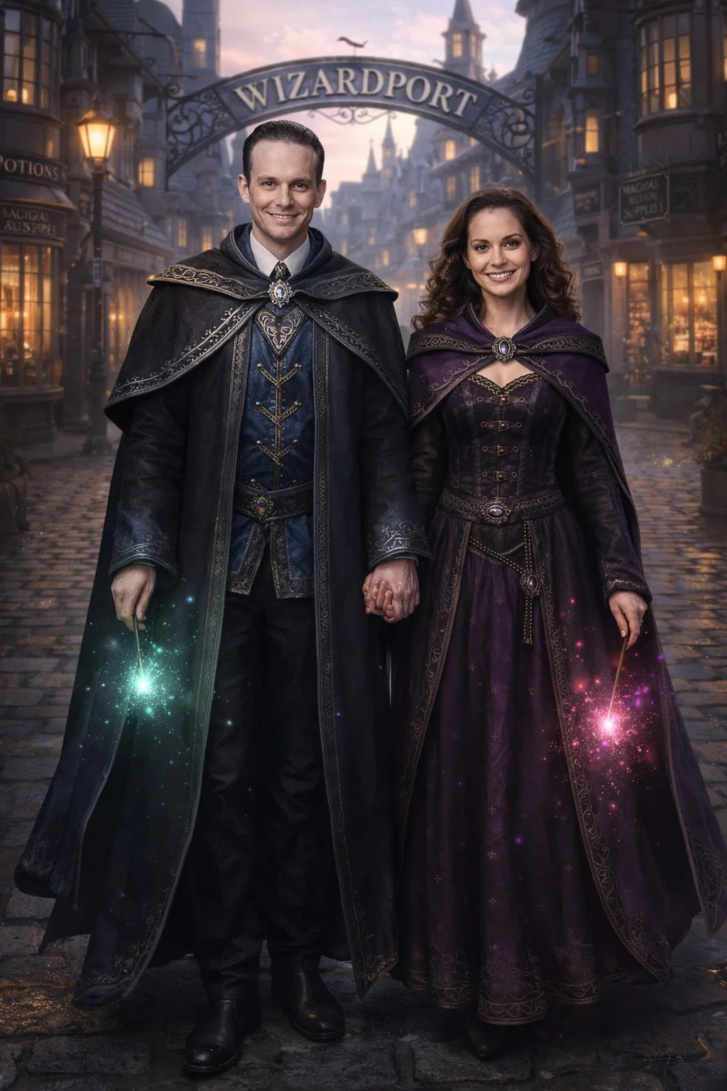 the police captain and police captainess couple of Wizardport Police Department / the 35-year-old good human-witch and good human-wizard couple / the owner and owneress couple of 5 Foxfairy Ln, Wizardport, CT 06880, United States of America.