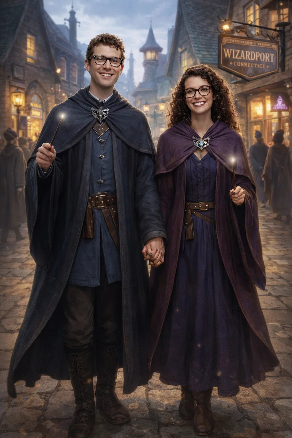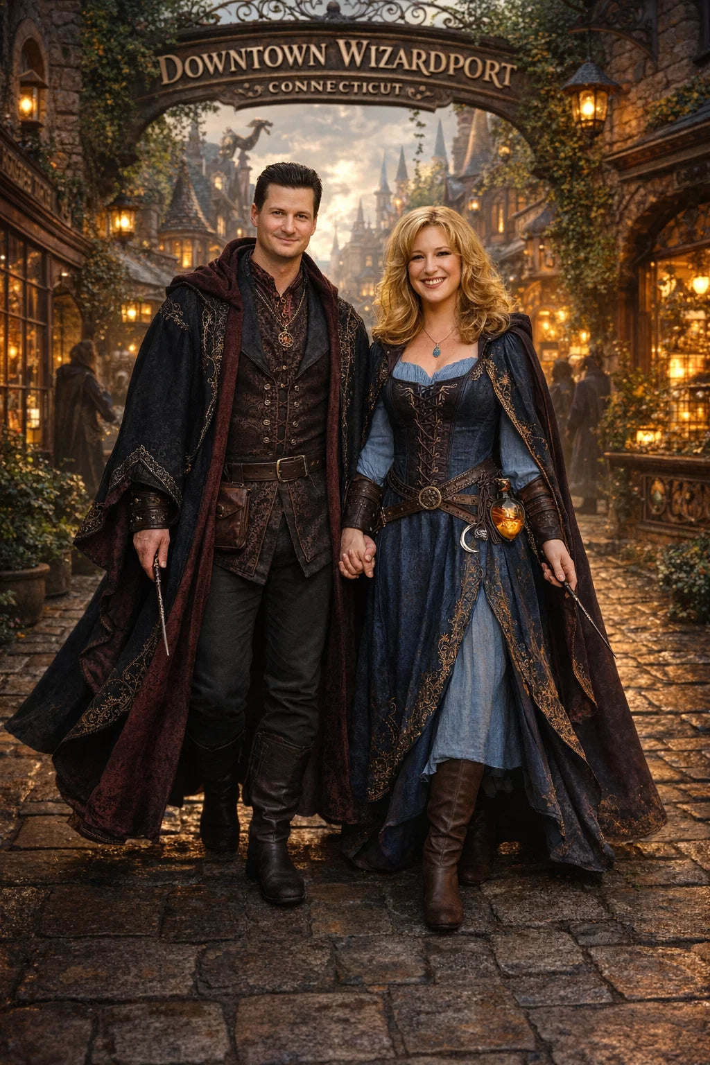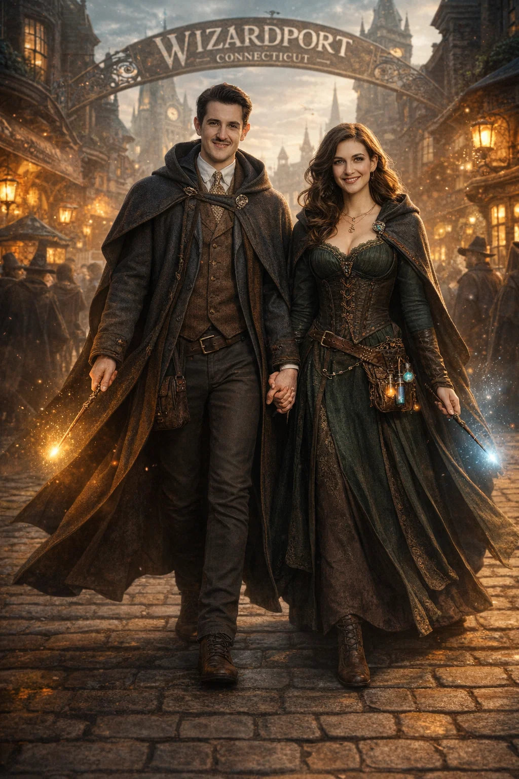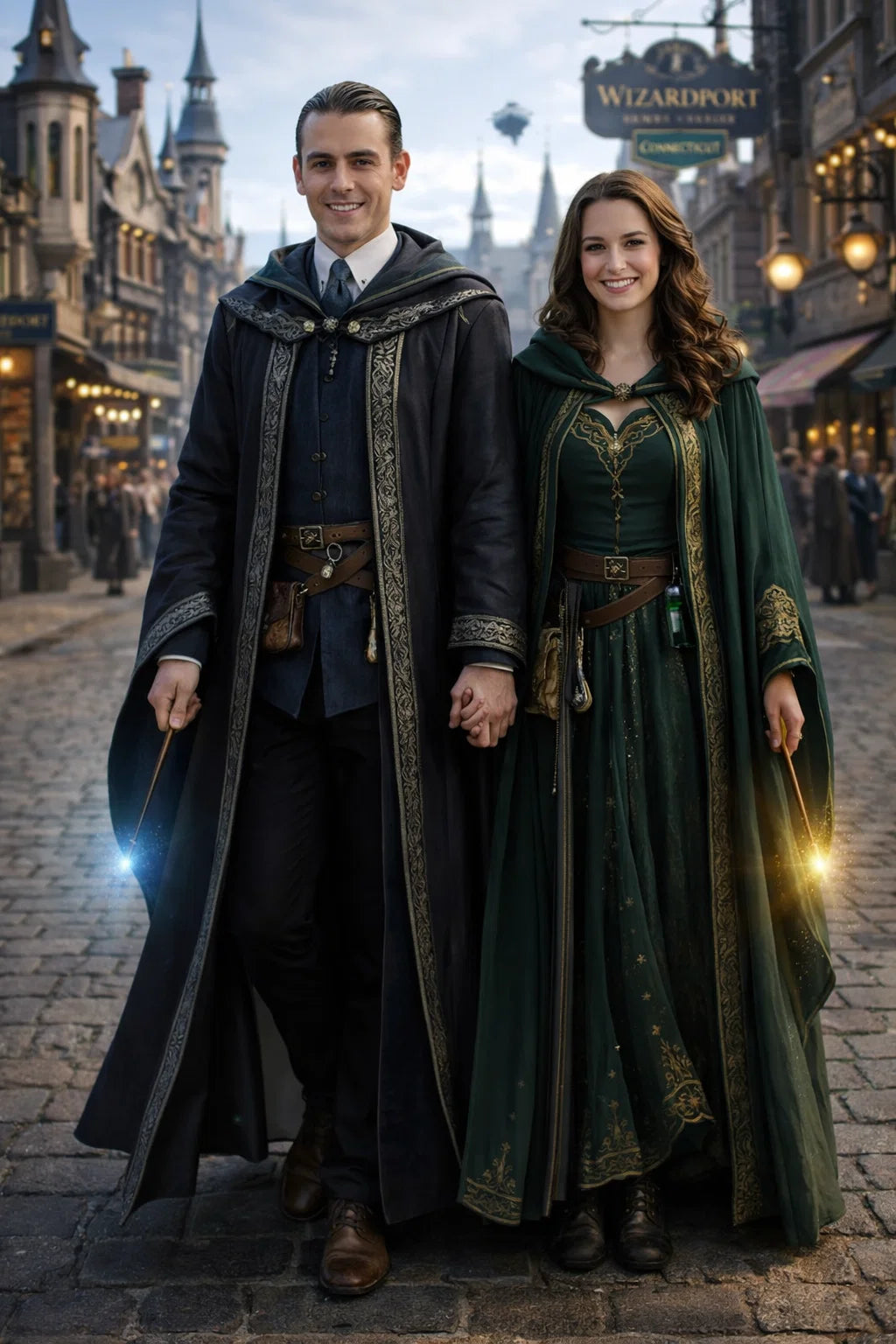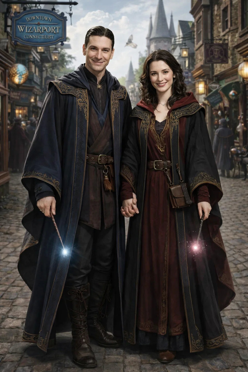 the police captain and police captainess couple of Wizardport Police Department / the 35-year-old good human-witch and good human-wizard couple / the owner and owneress couple of 5 Foxfairy Ln, Wizardport, CT 06880, United States of America.