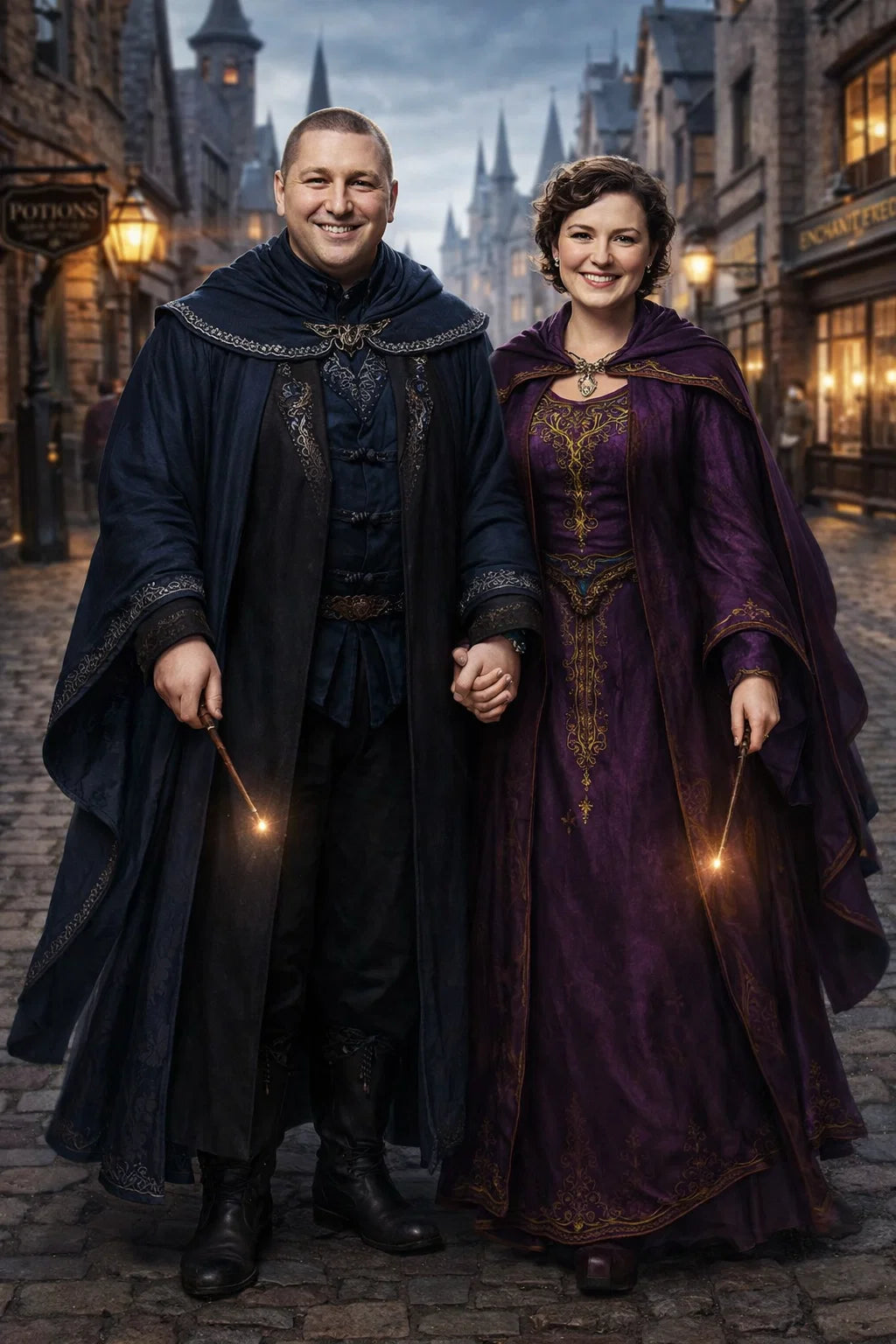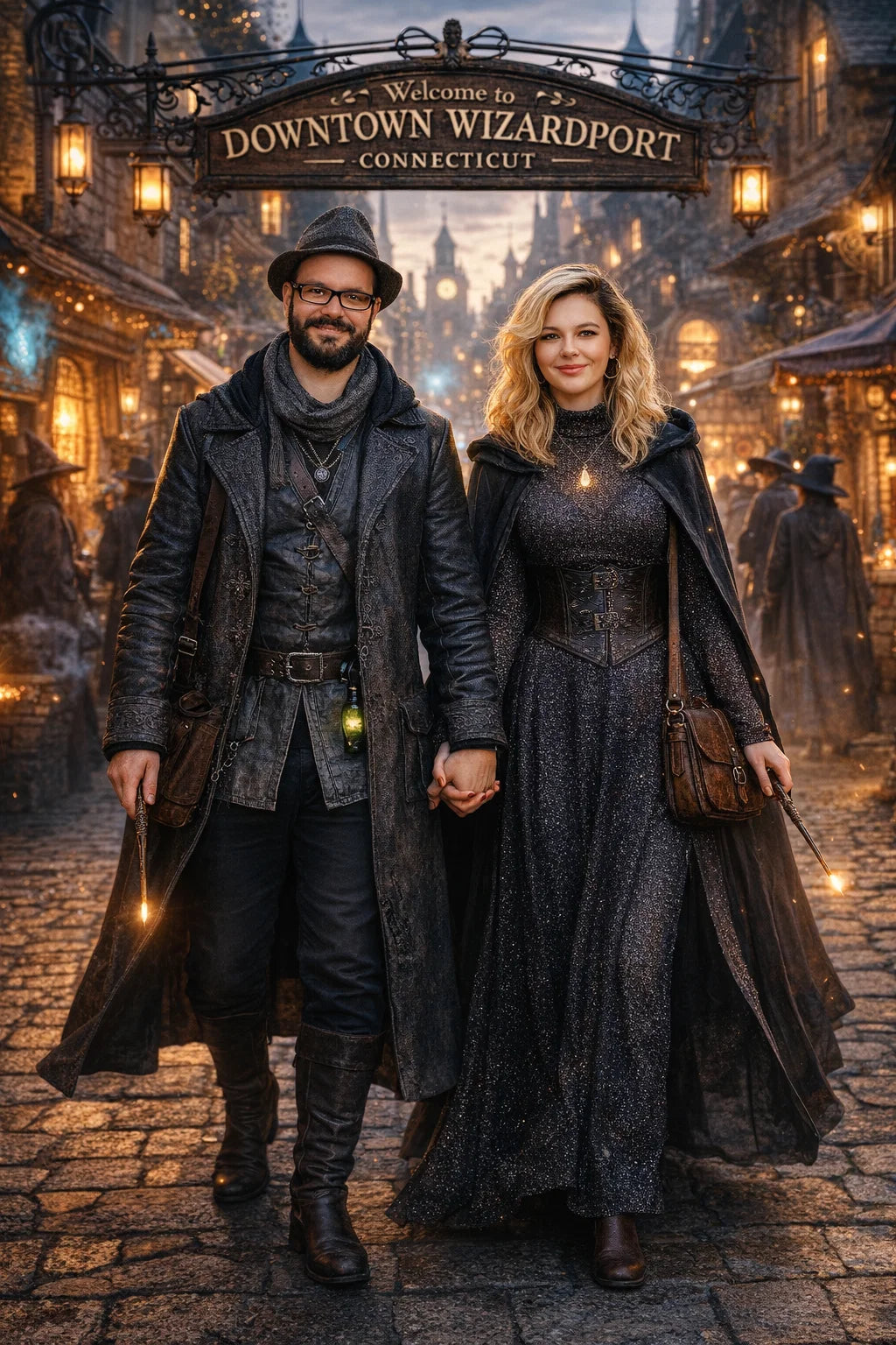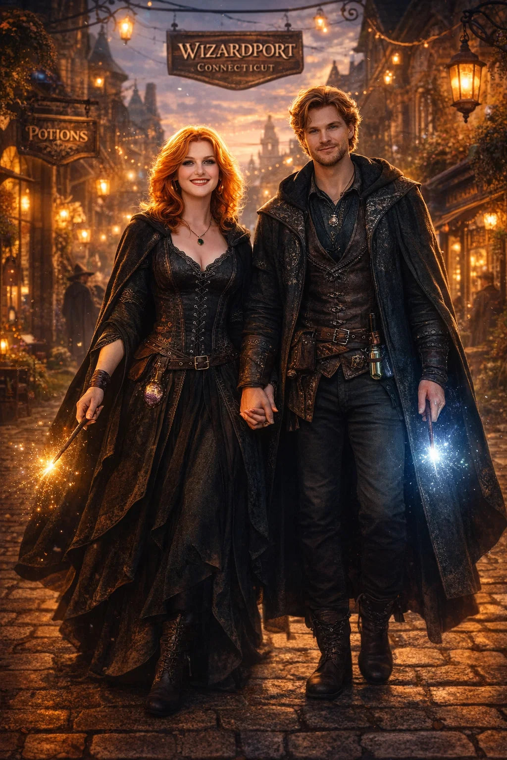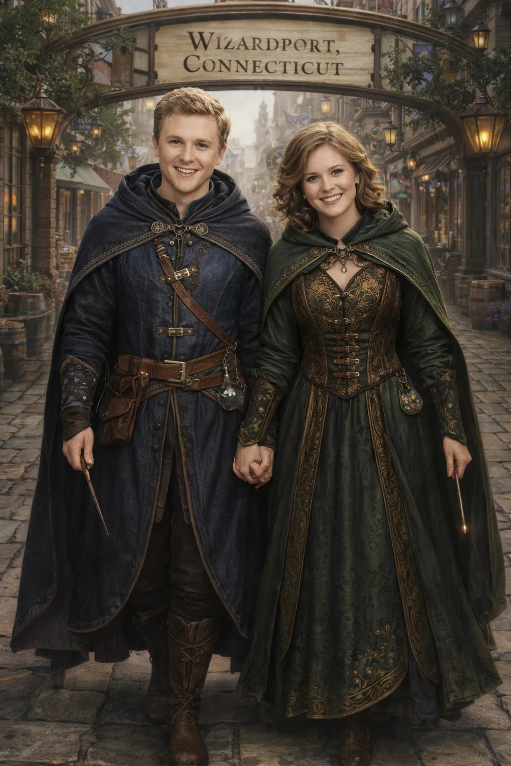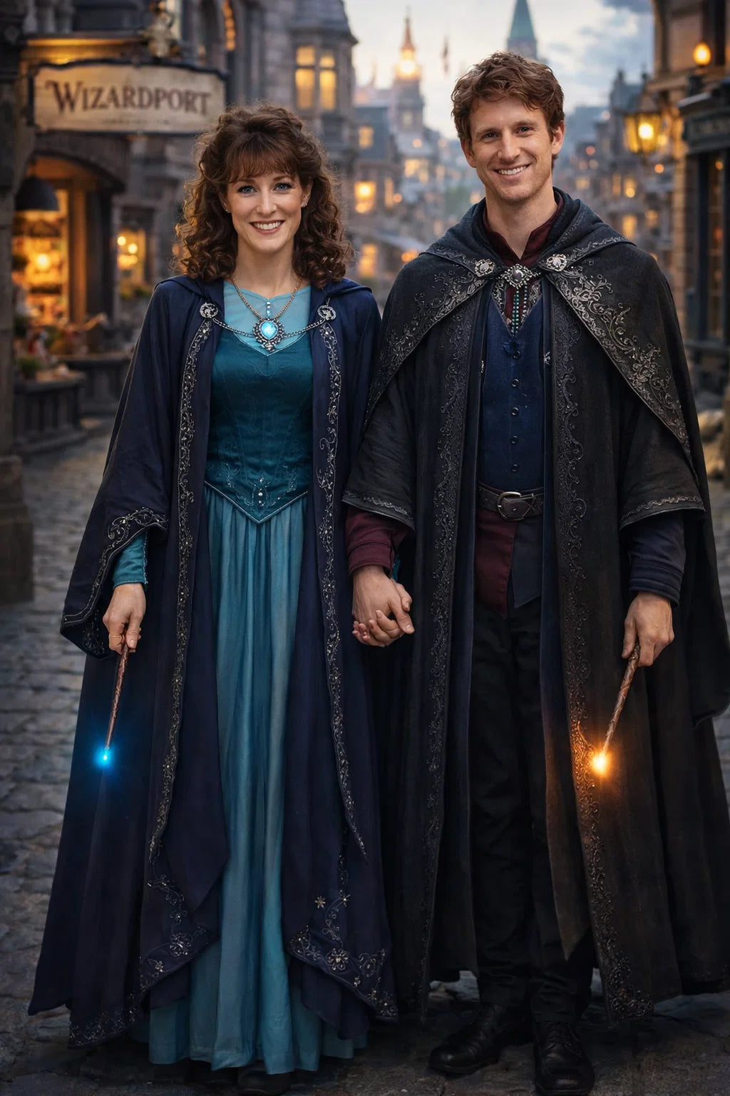 the police captain and police captainess couple of Wizardport Police Department / the 35-year-old good human-witch and good human-wizard couple / the owner and owneress couple of 5 Foxfairy Ln, Wizardport, CT 06880, United States of America.