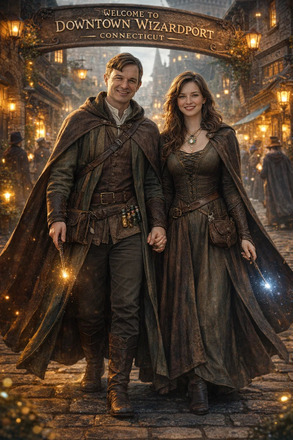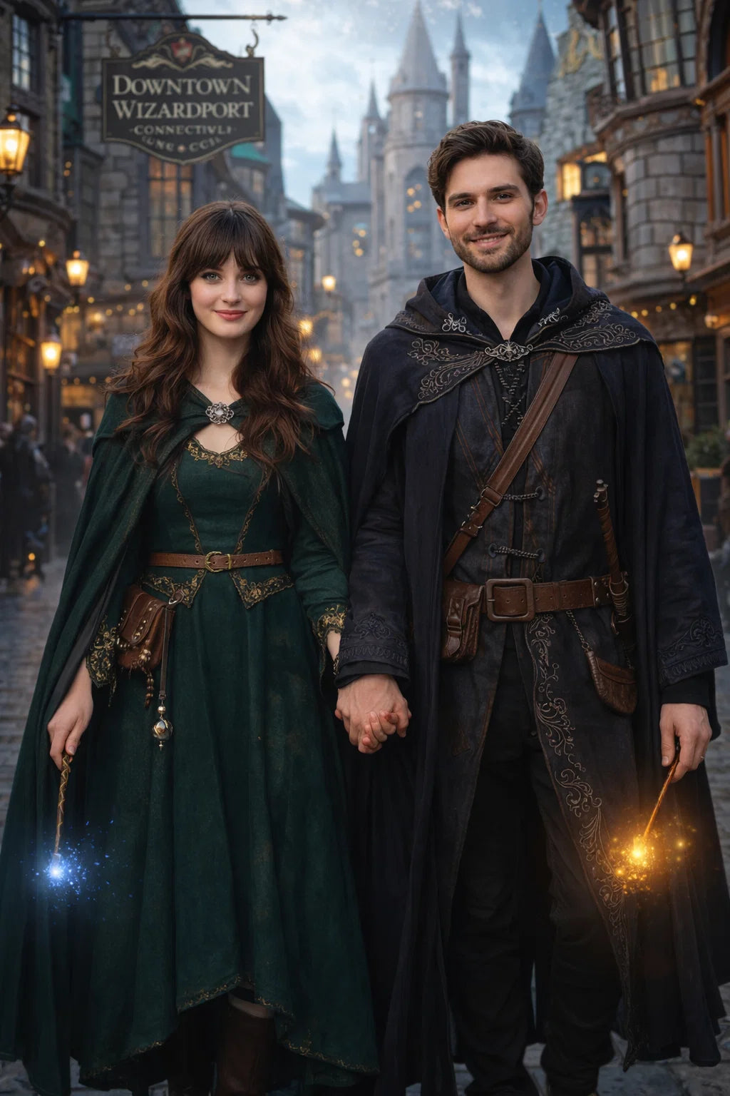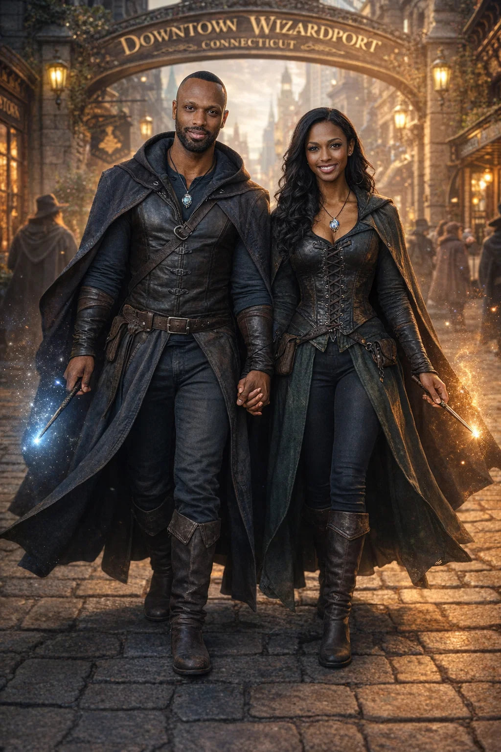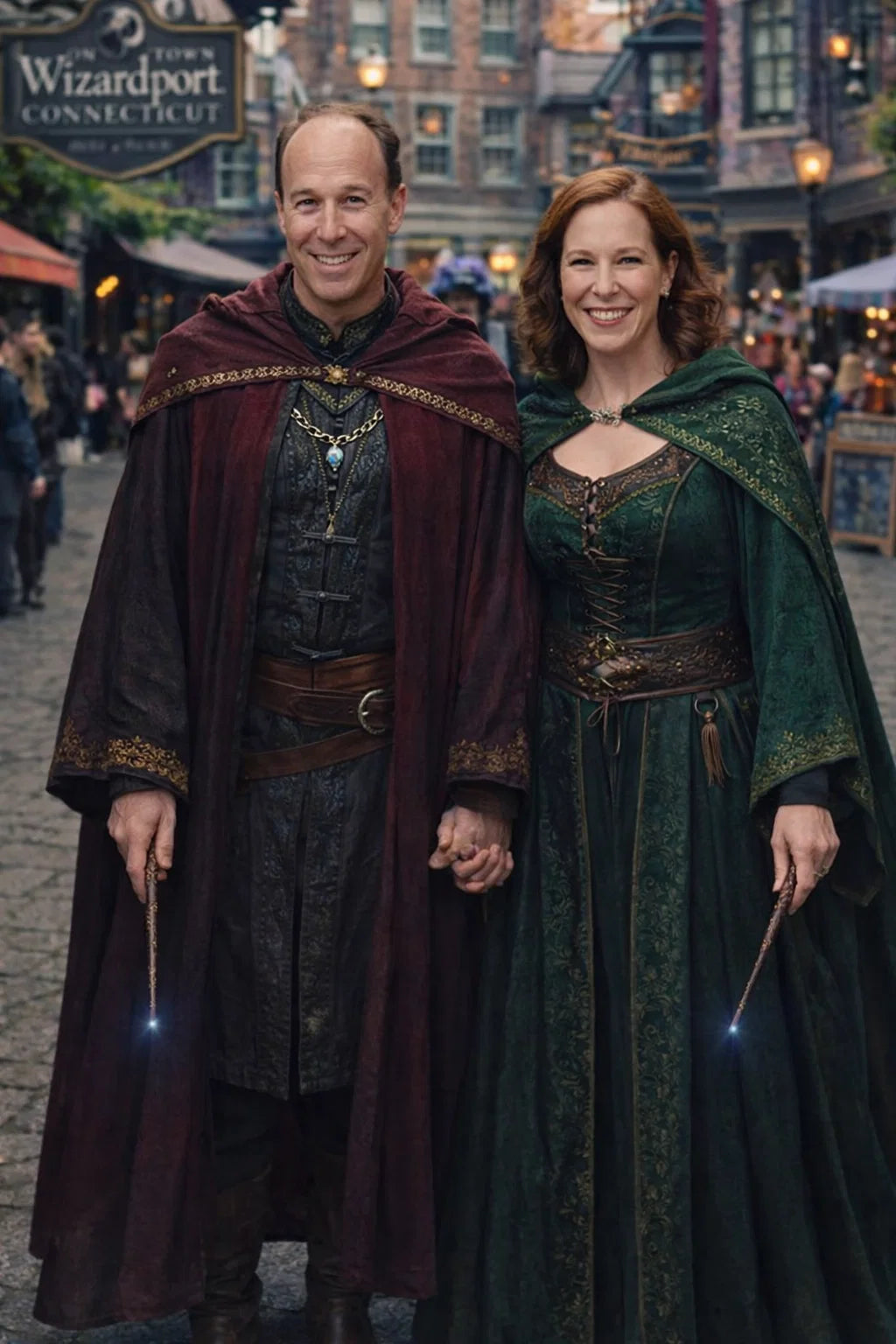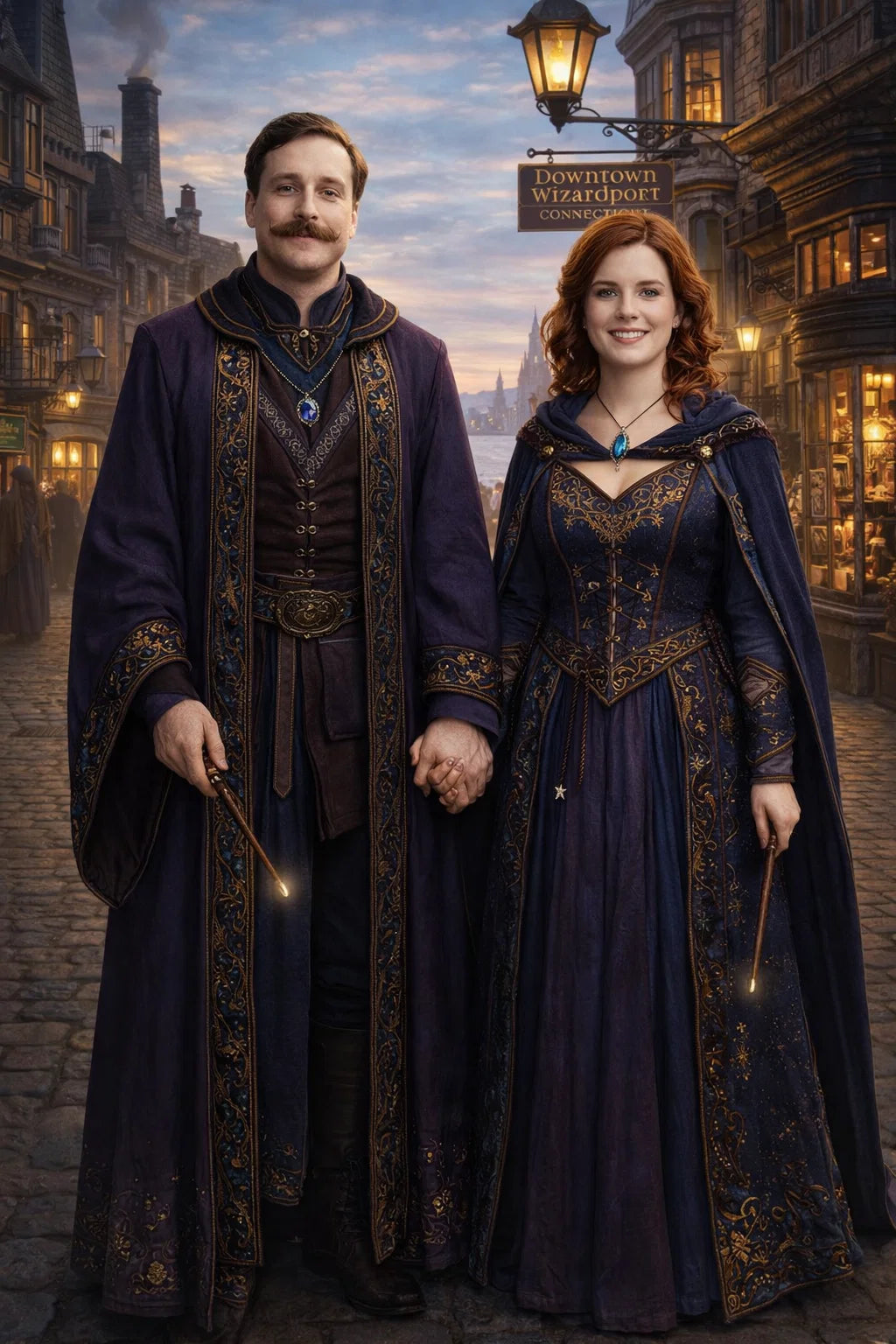the police captain and police captainess couple of Wizardport Police Department / the 35-year-old good human-witch and good human-wizard couple / the owner and owneress couple of 5 Foxfairy Ln, Wizardport, CT 06880, United States of America.