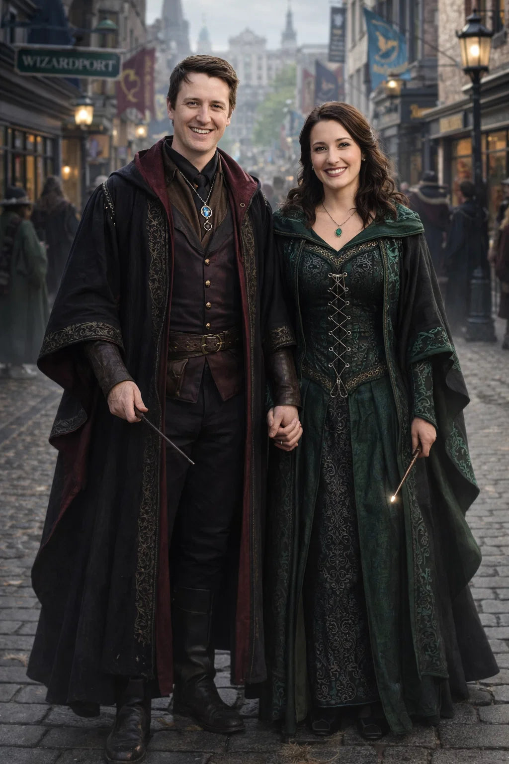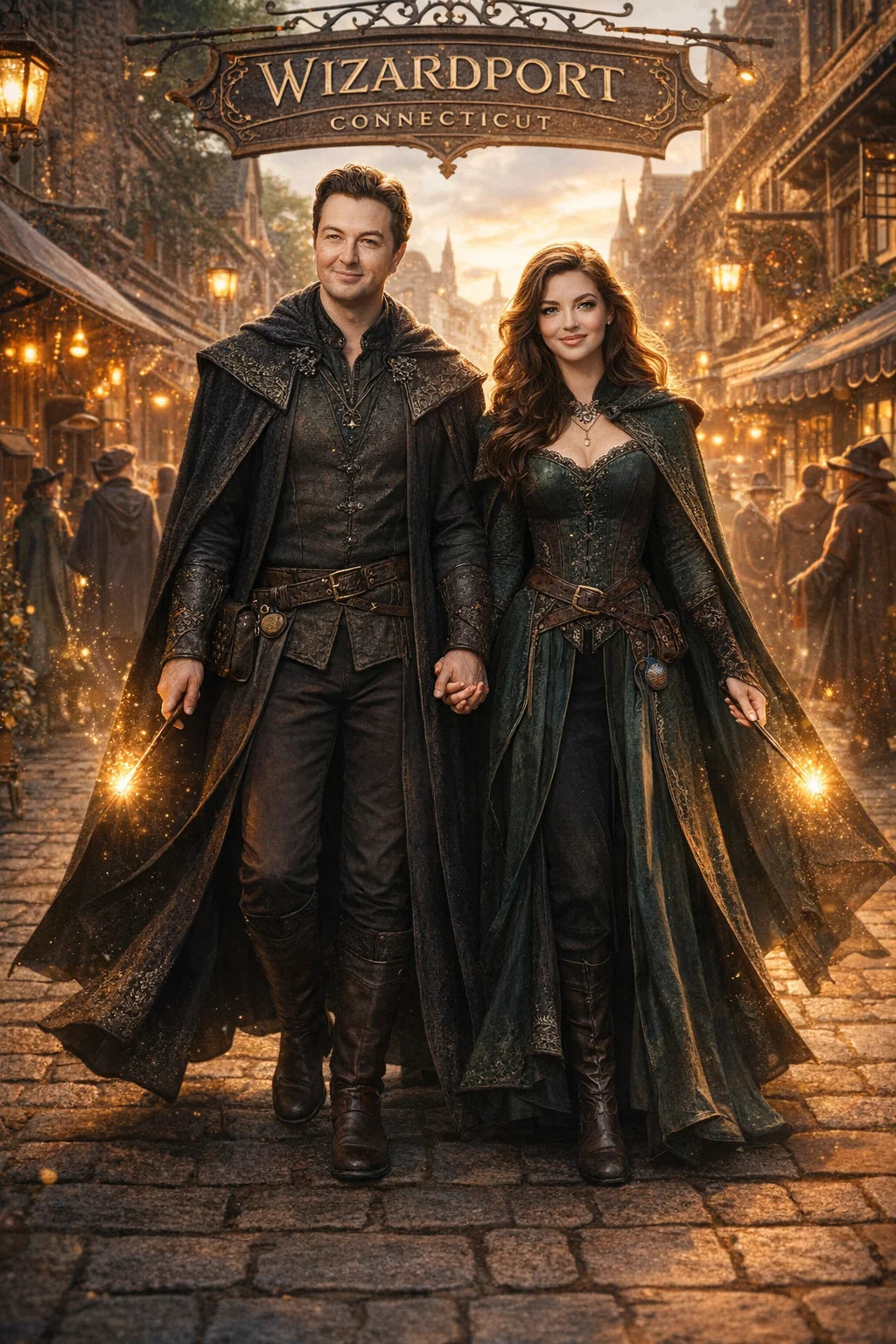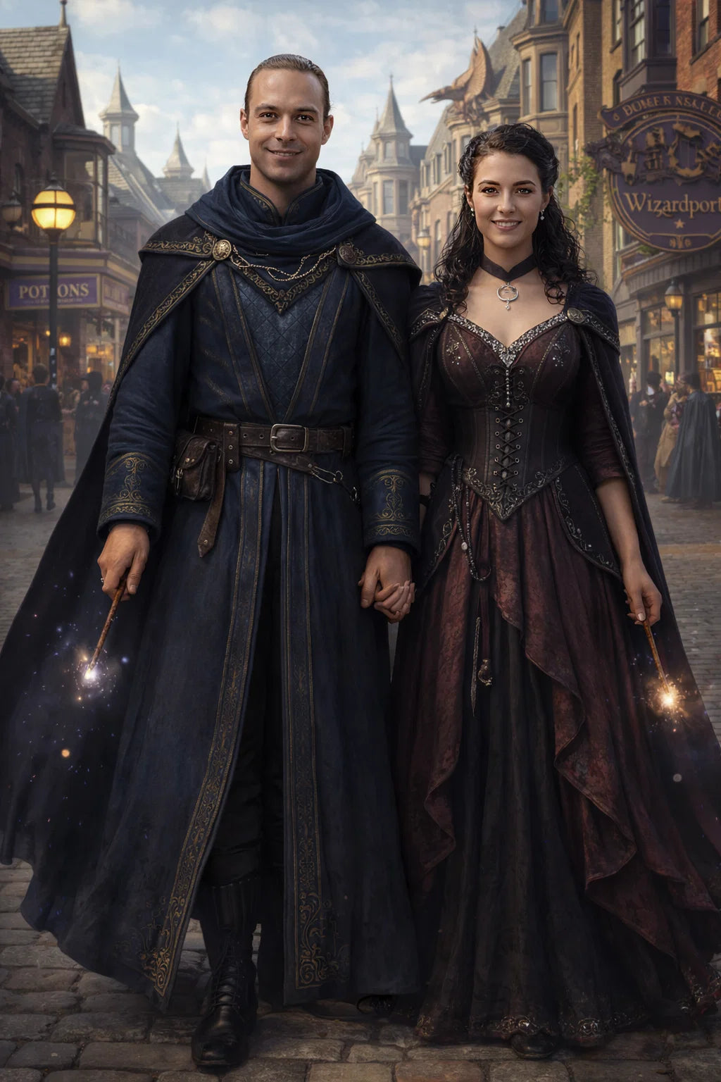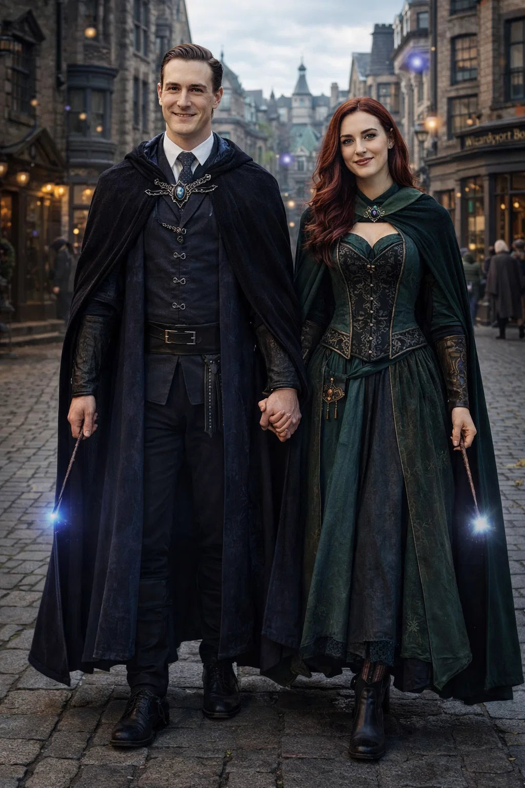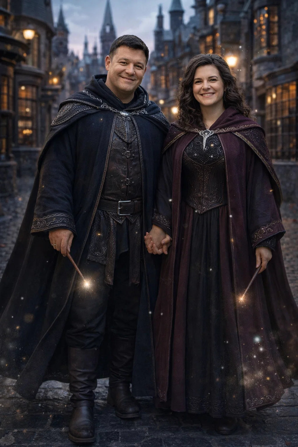 the police captain and police captainess couple of Wizardport Police Department / the 35-year-old good human-witch and good human-wizard couple / the owner and owneress couple of 5 Foxfairy Ln, Wizardport, CT 06880, United States of America.