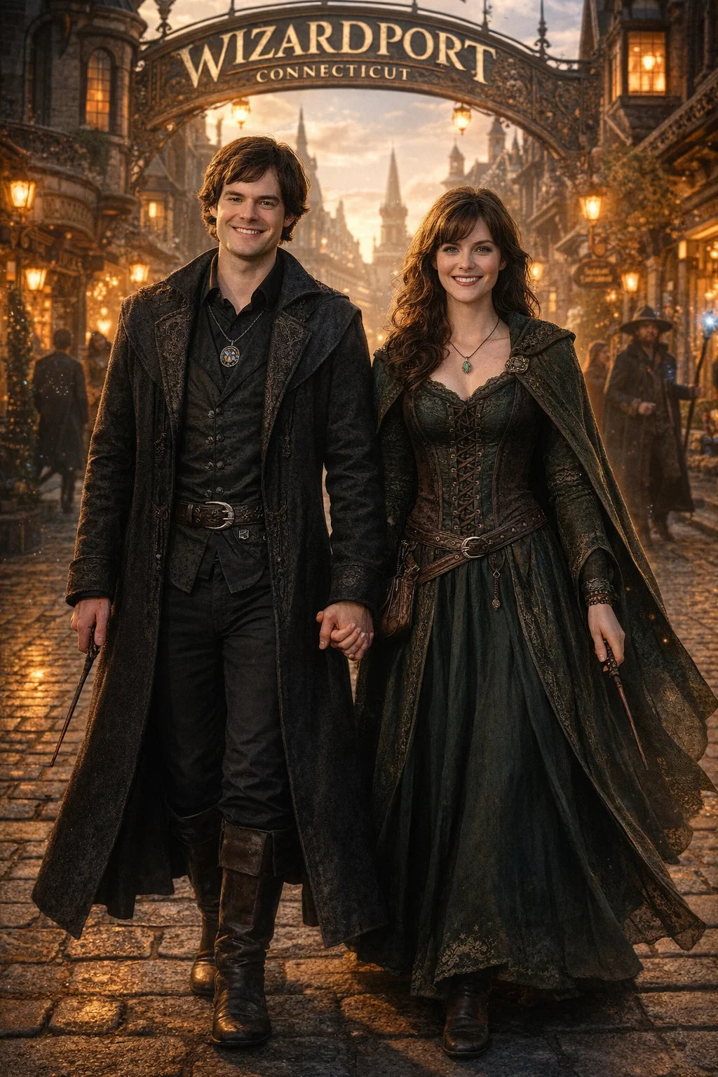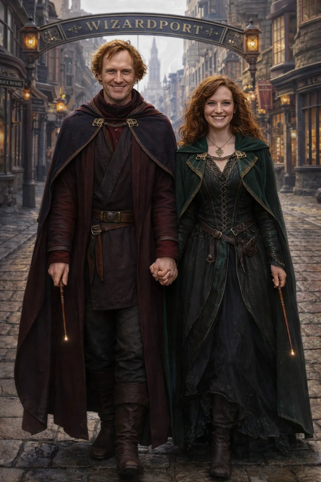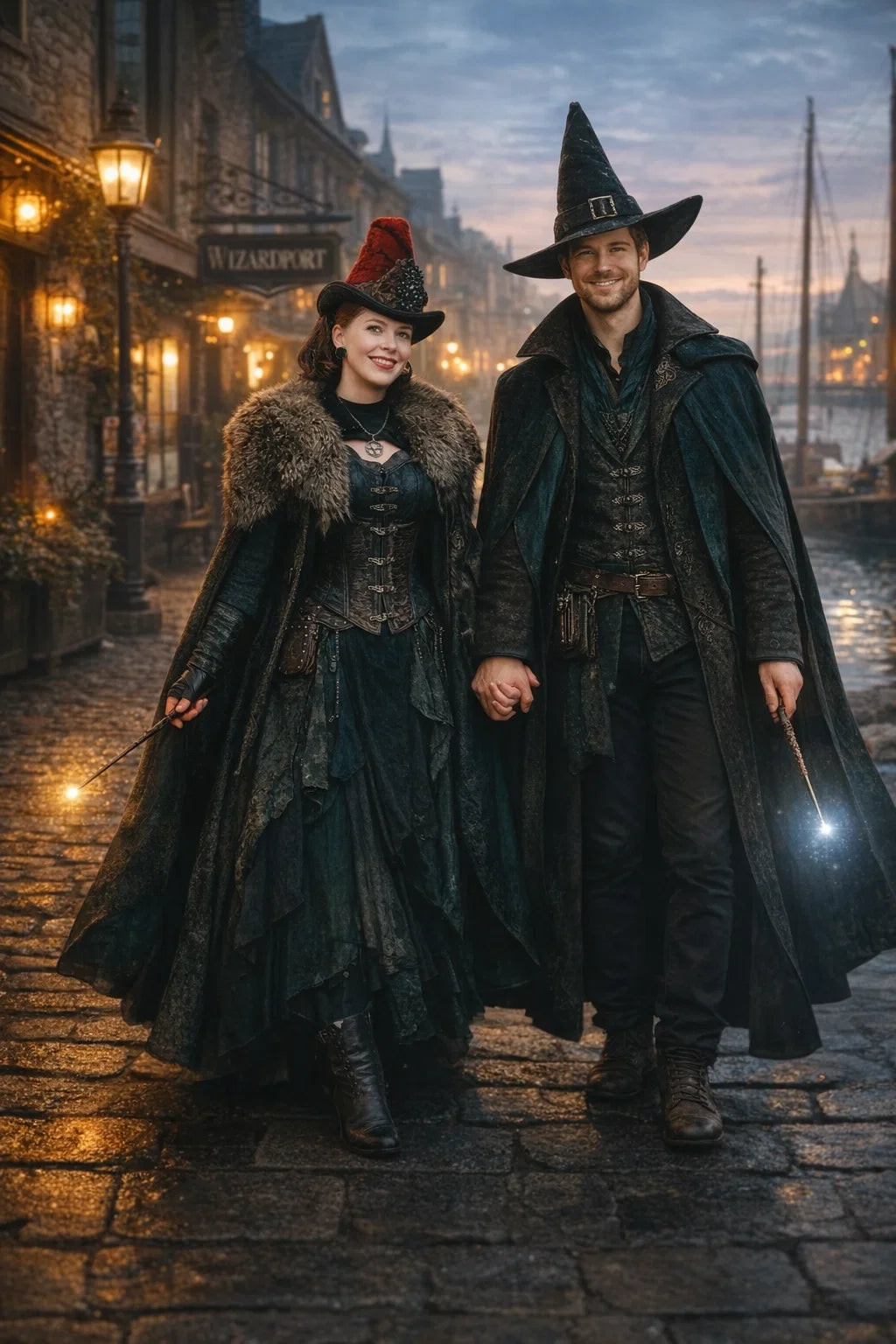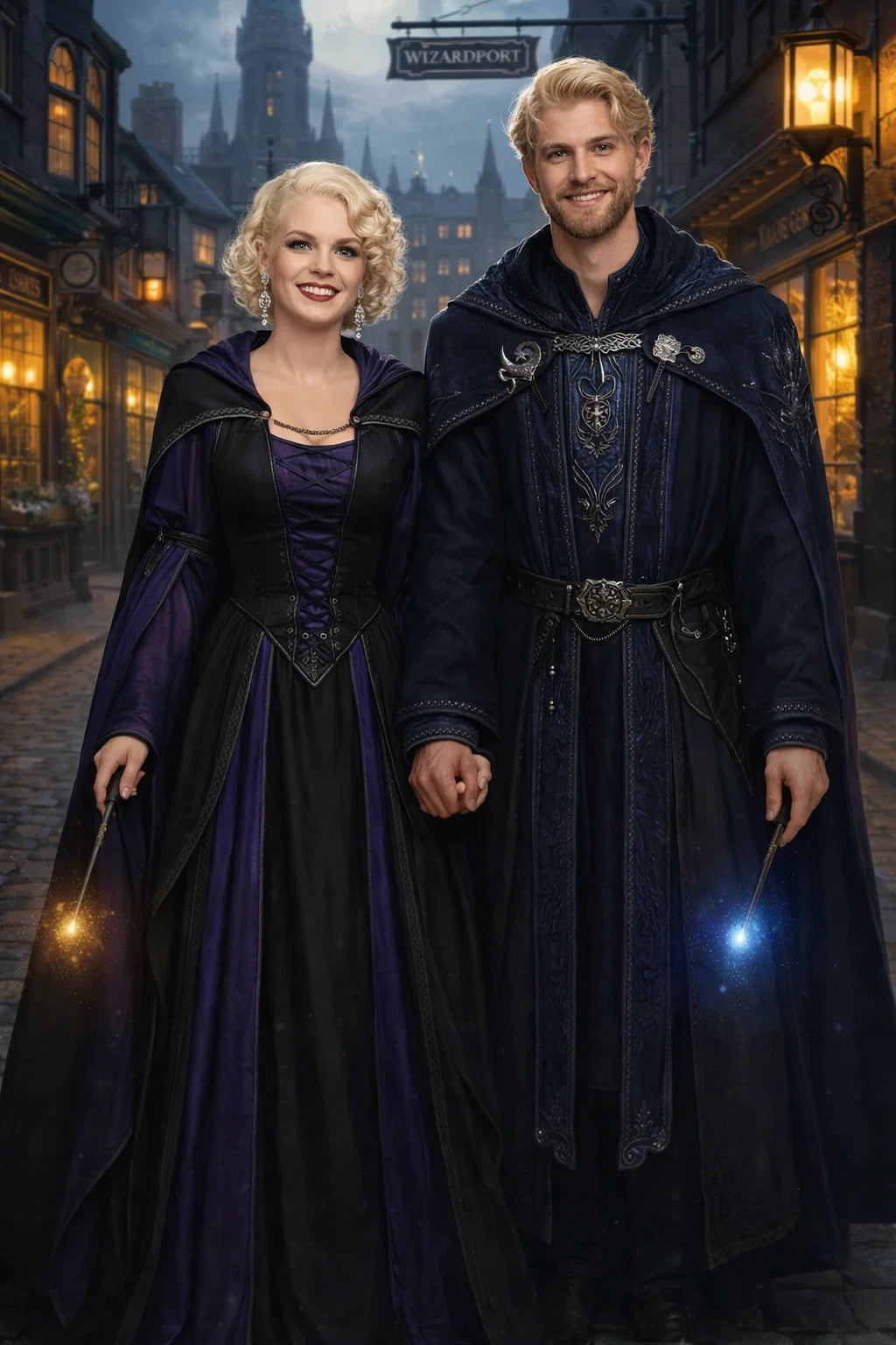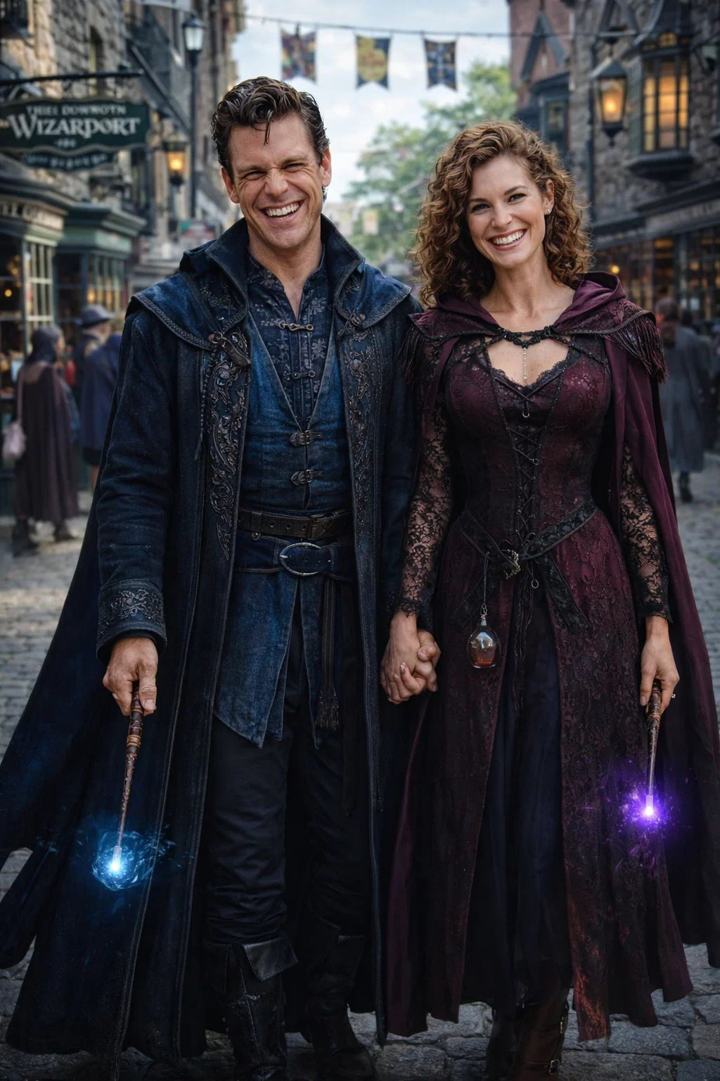 the police captain and police captainess couple of Wizardport Police Department / the 35-year-old good human-witch and good human-wizard couple / the owner and owneress couple of 5 Foxfairy Ln, Wizardport, CT 06880, United States of America.