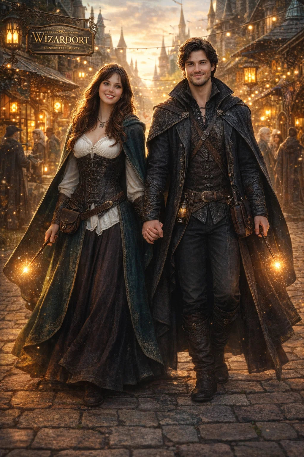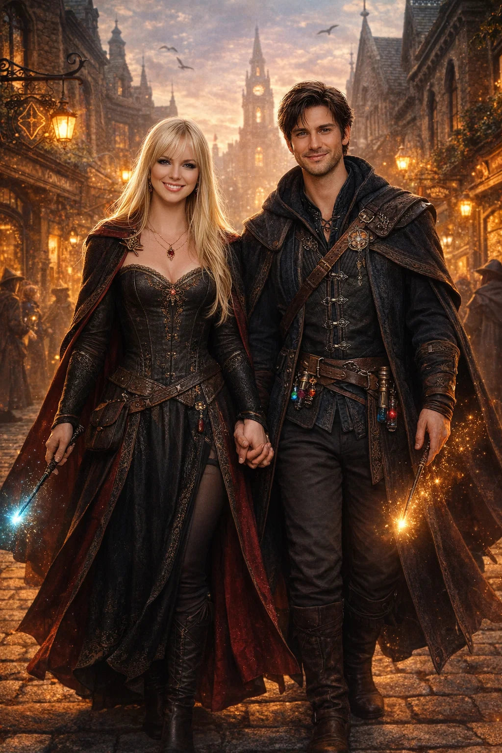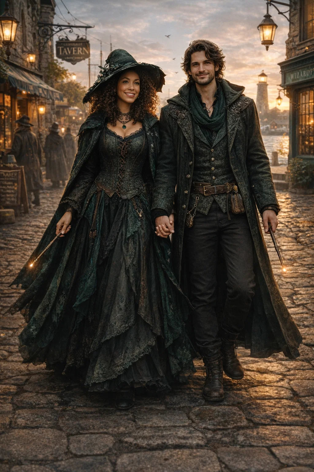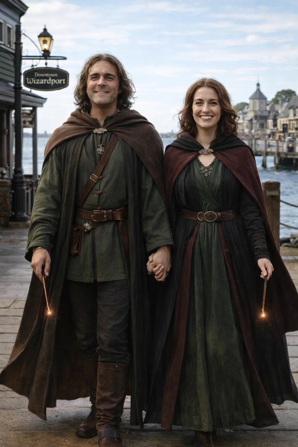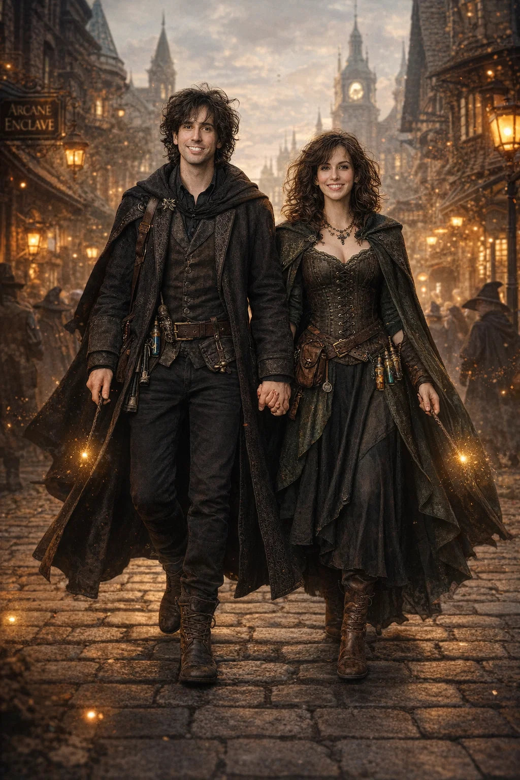 the police captain and police captainess couple of Wizardport Police Department / the 35-year-old good human-witch and good human-wizard couple / the owner and owneress couple of 5 Foxfairy Ln, Wizardport, CT 06880, United States of America.