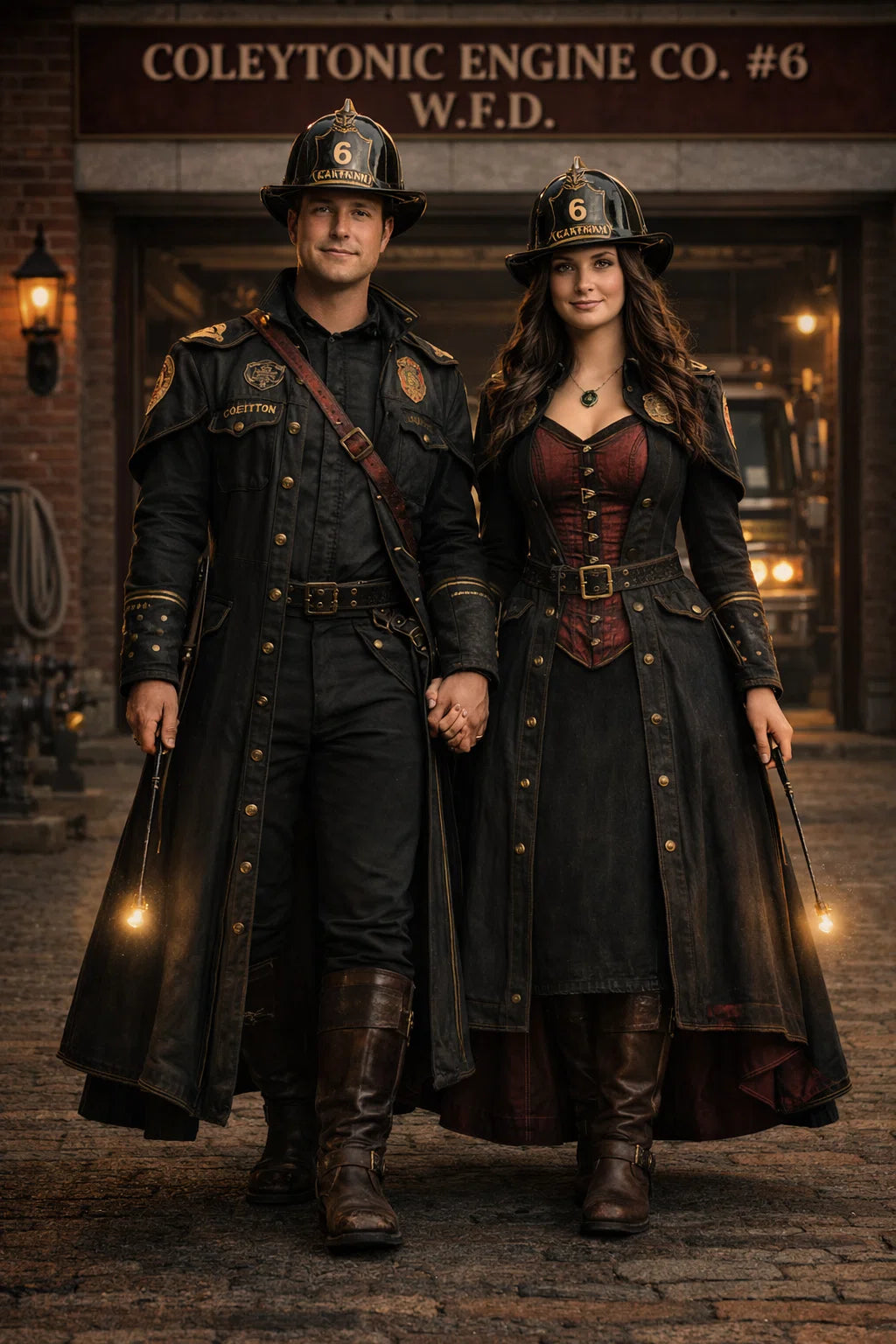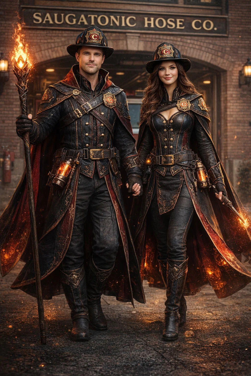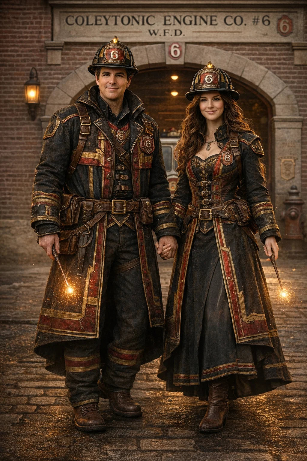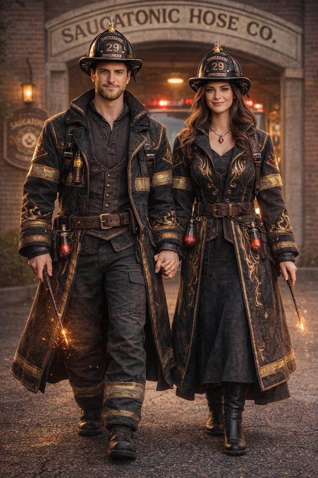the fireman and firewoman couple #1 of Coleytonic Engine CO. #6 W.F.D. / the 35-year-old good human-witch and good human-wizard couple.