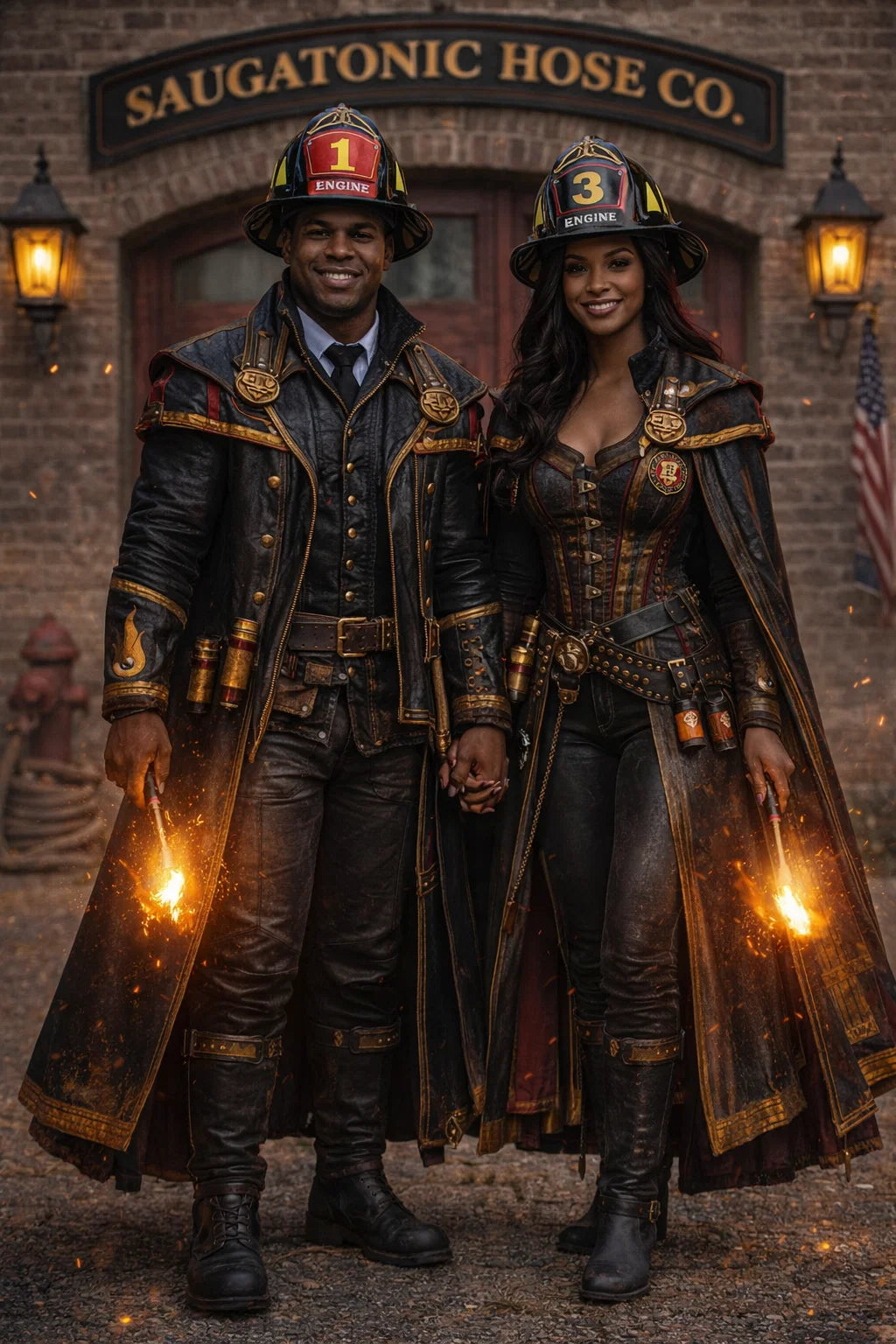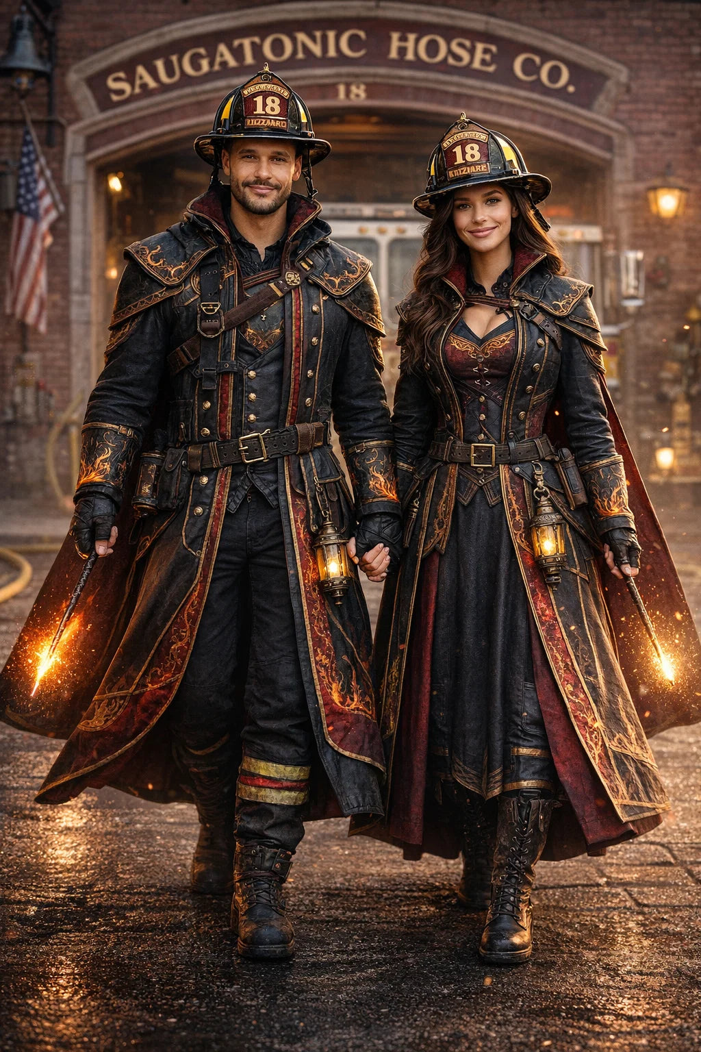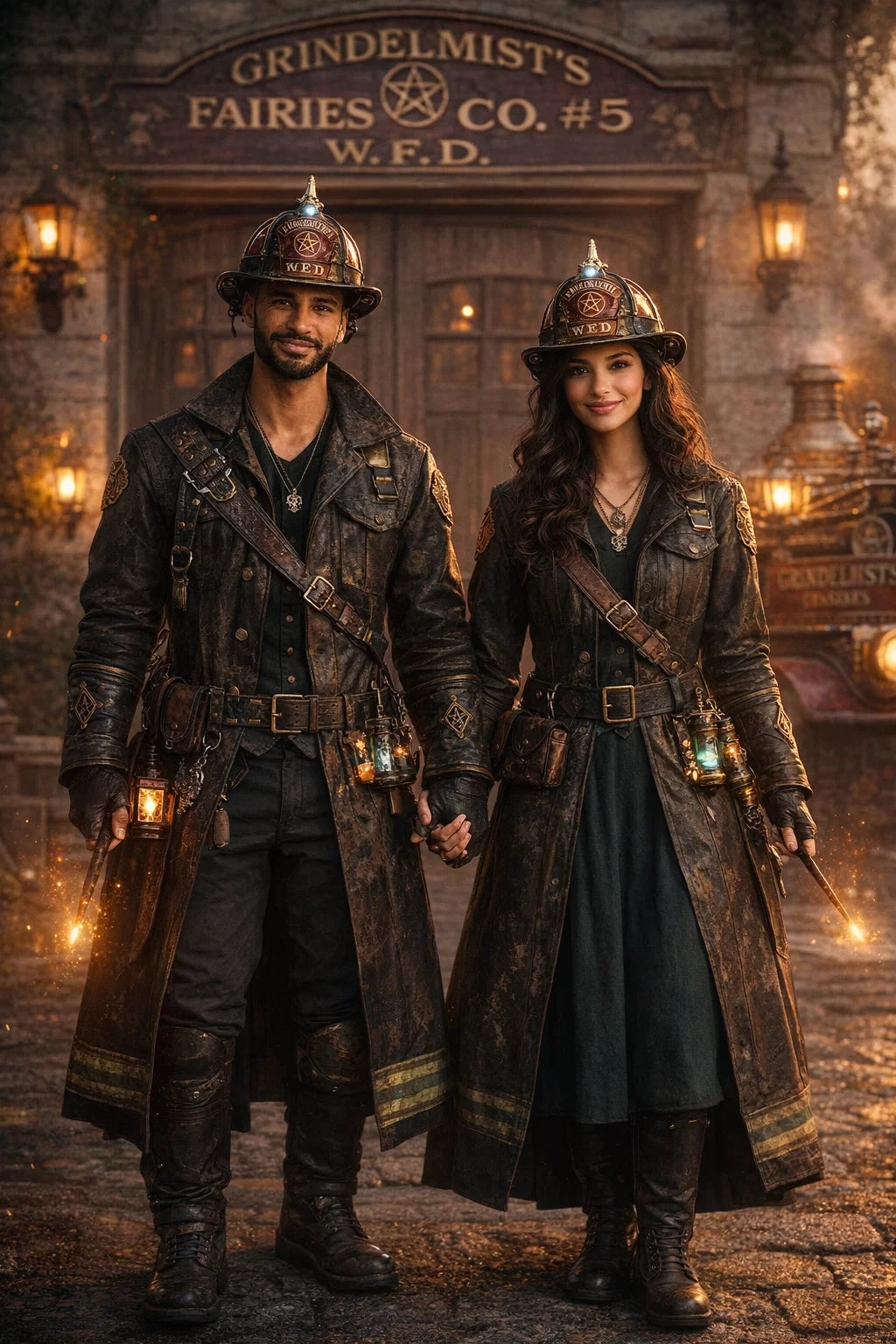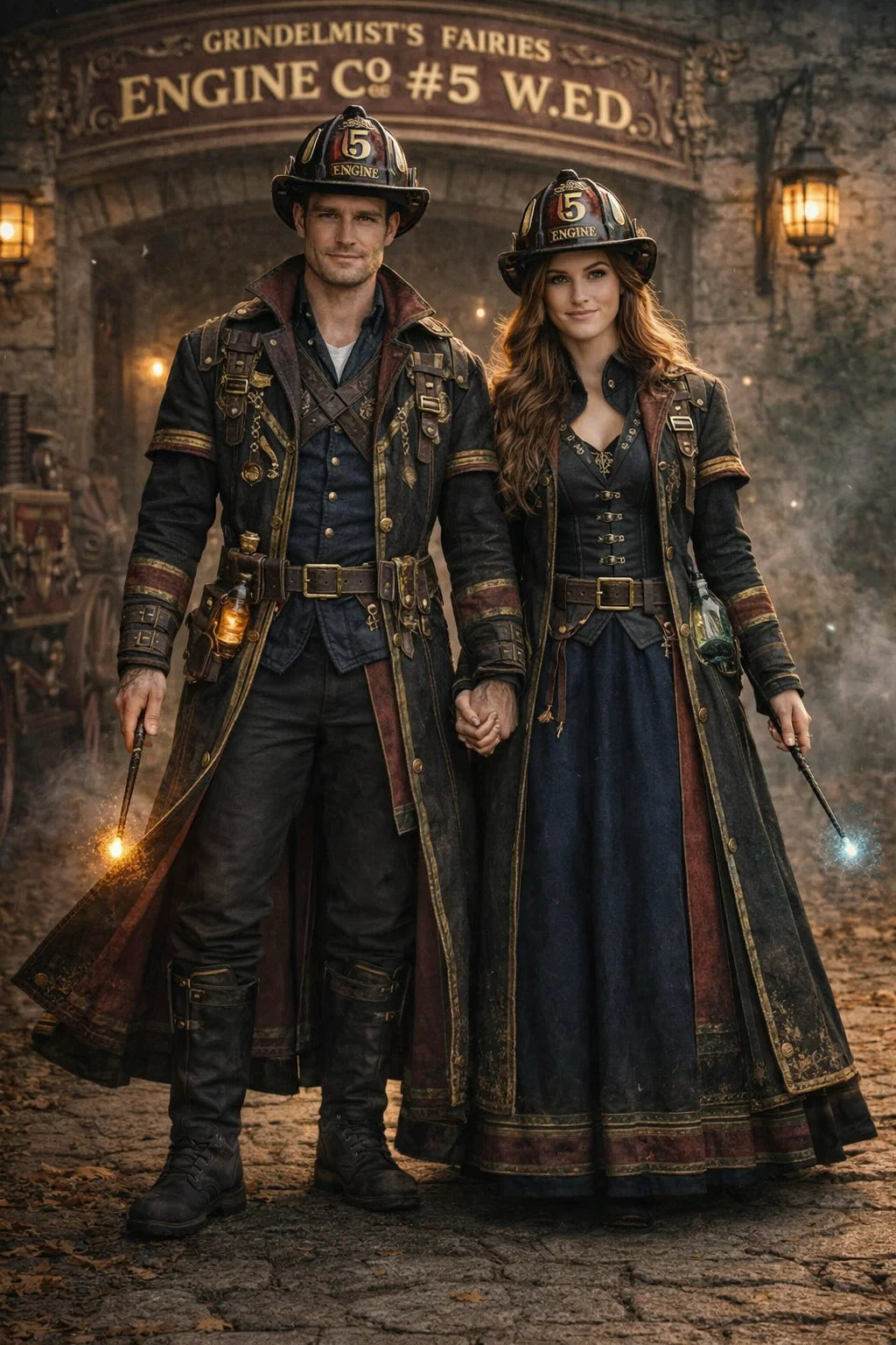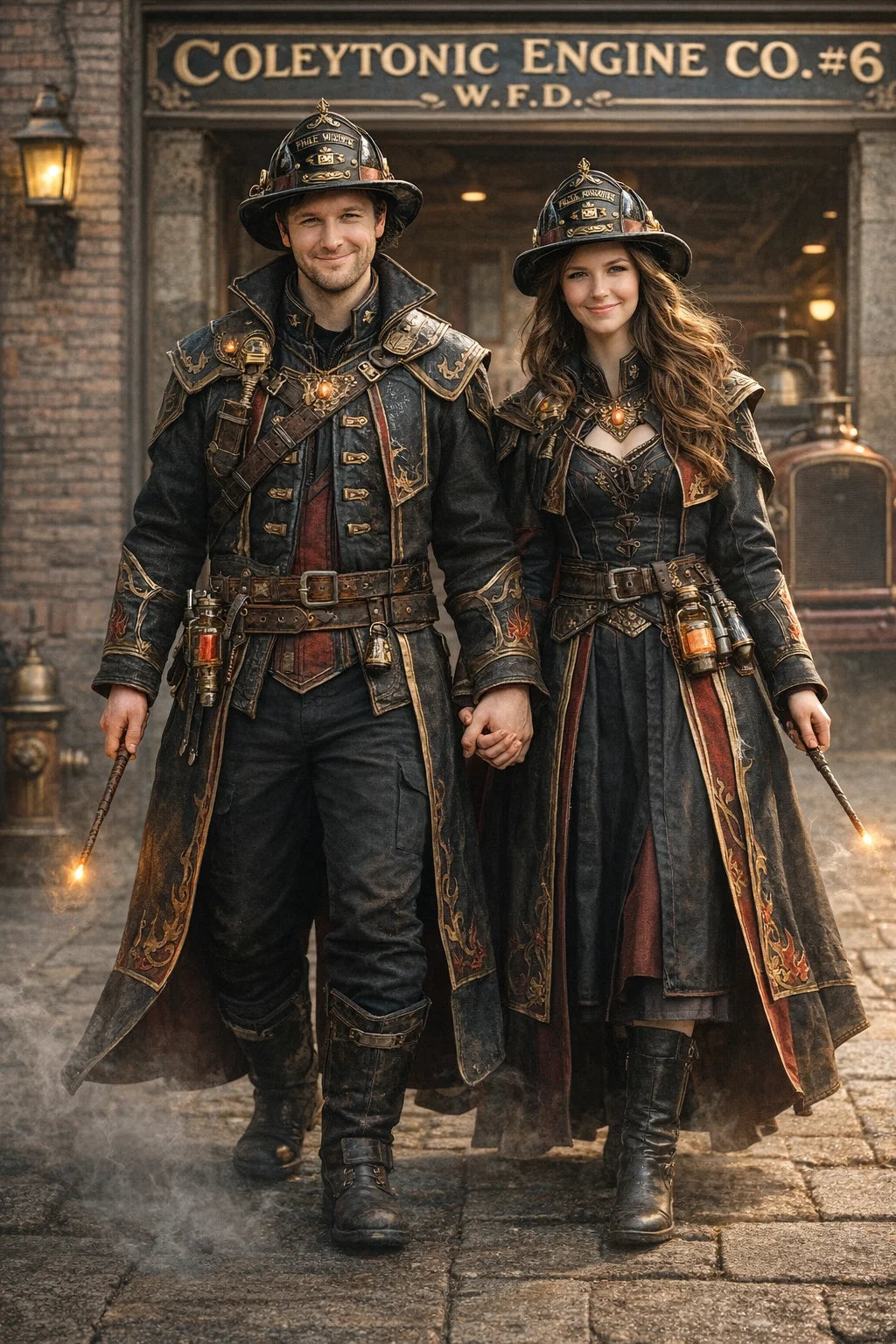 the fireman and firewoman couple #1 of Coleytonic Engine CO. #6 W.F.D. / the 35-year-old good human-witch and good human-wizard couple.