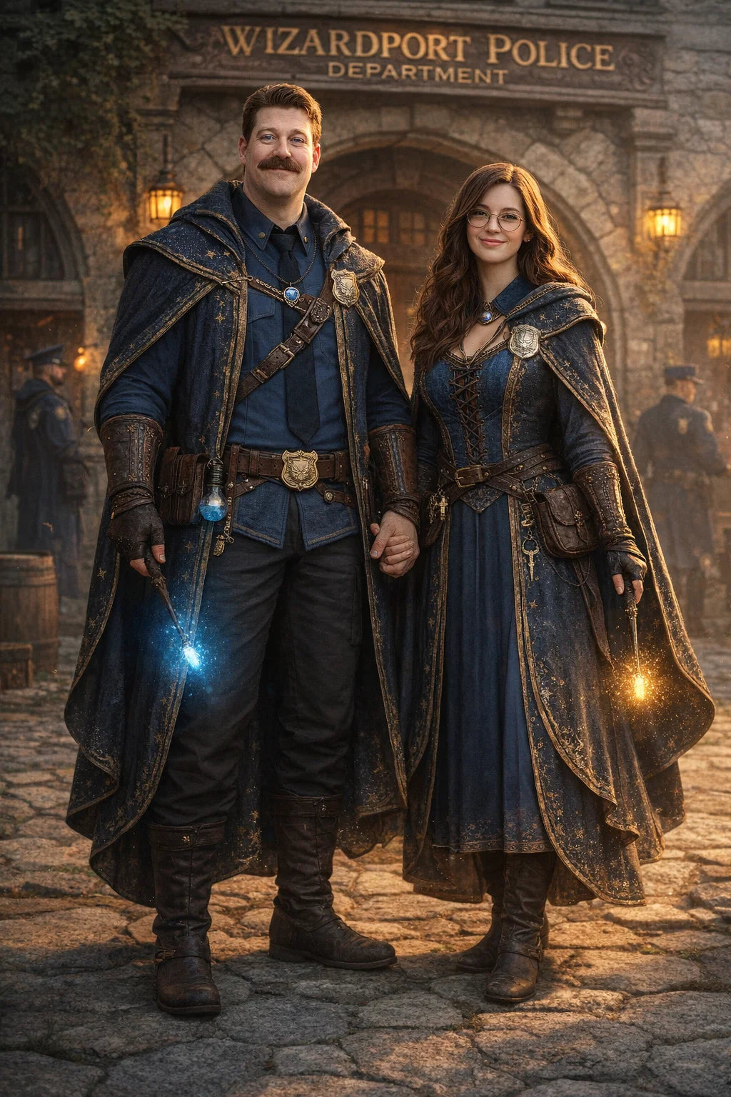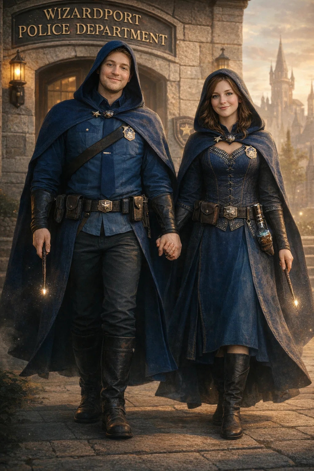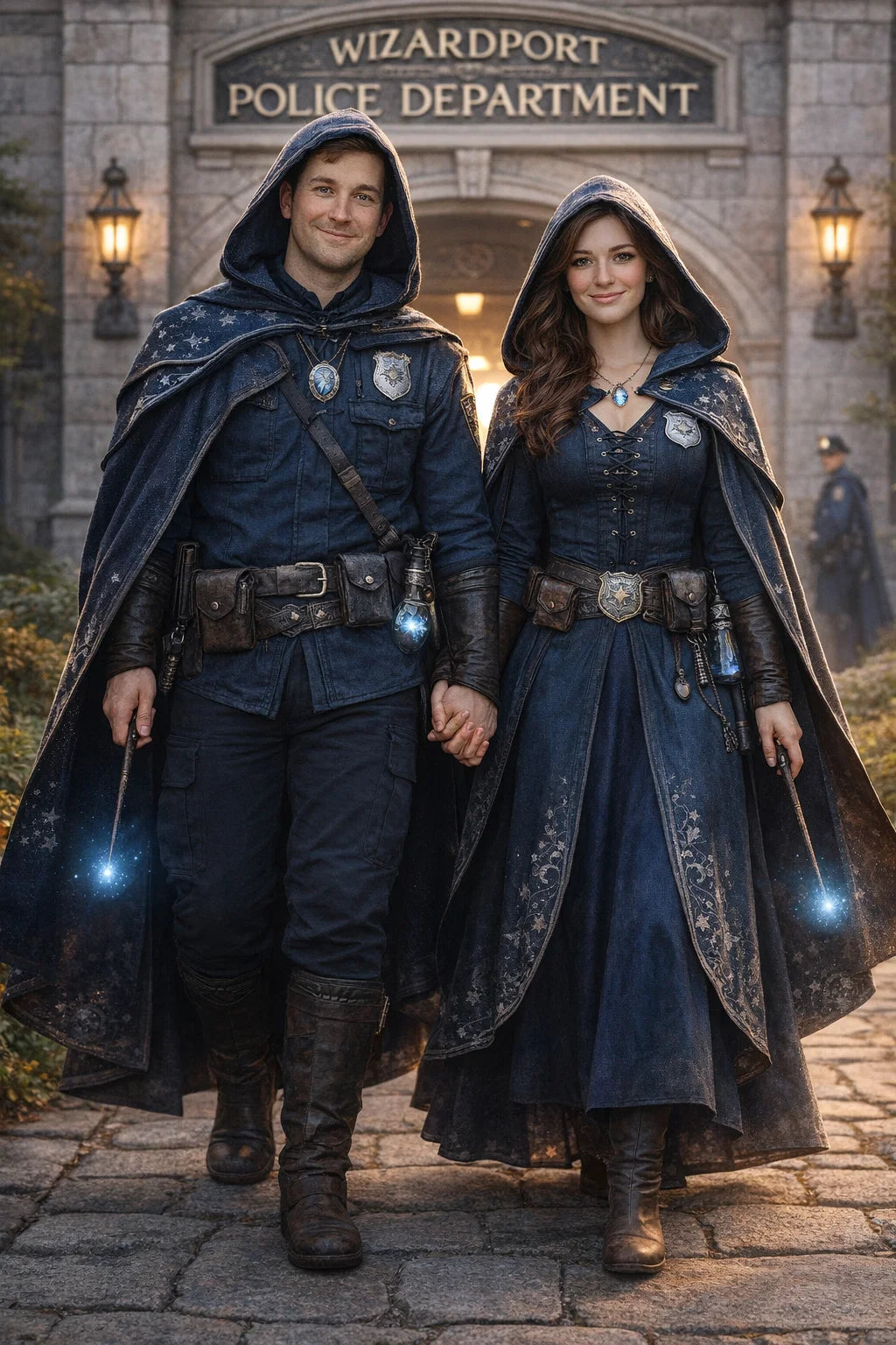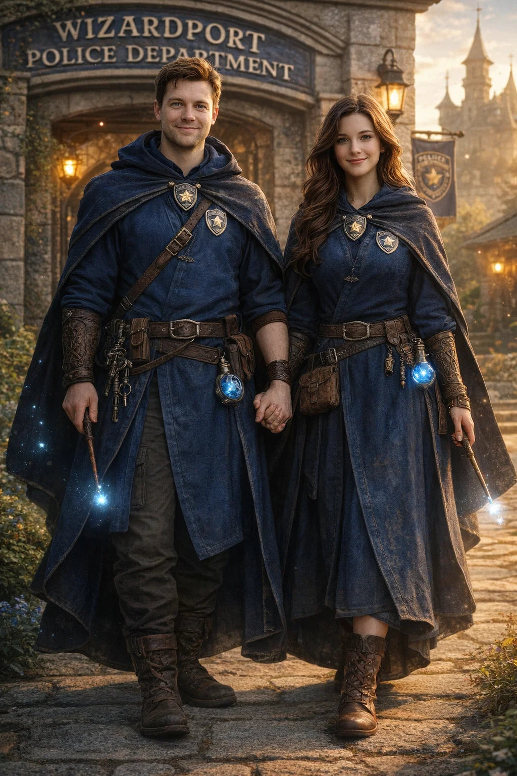 the policeman and policewoman #1 couple of Wizardport Police Department / the 35-year-old good human-witch and good human-wizard couple.
