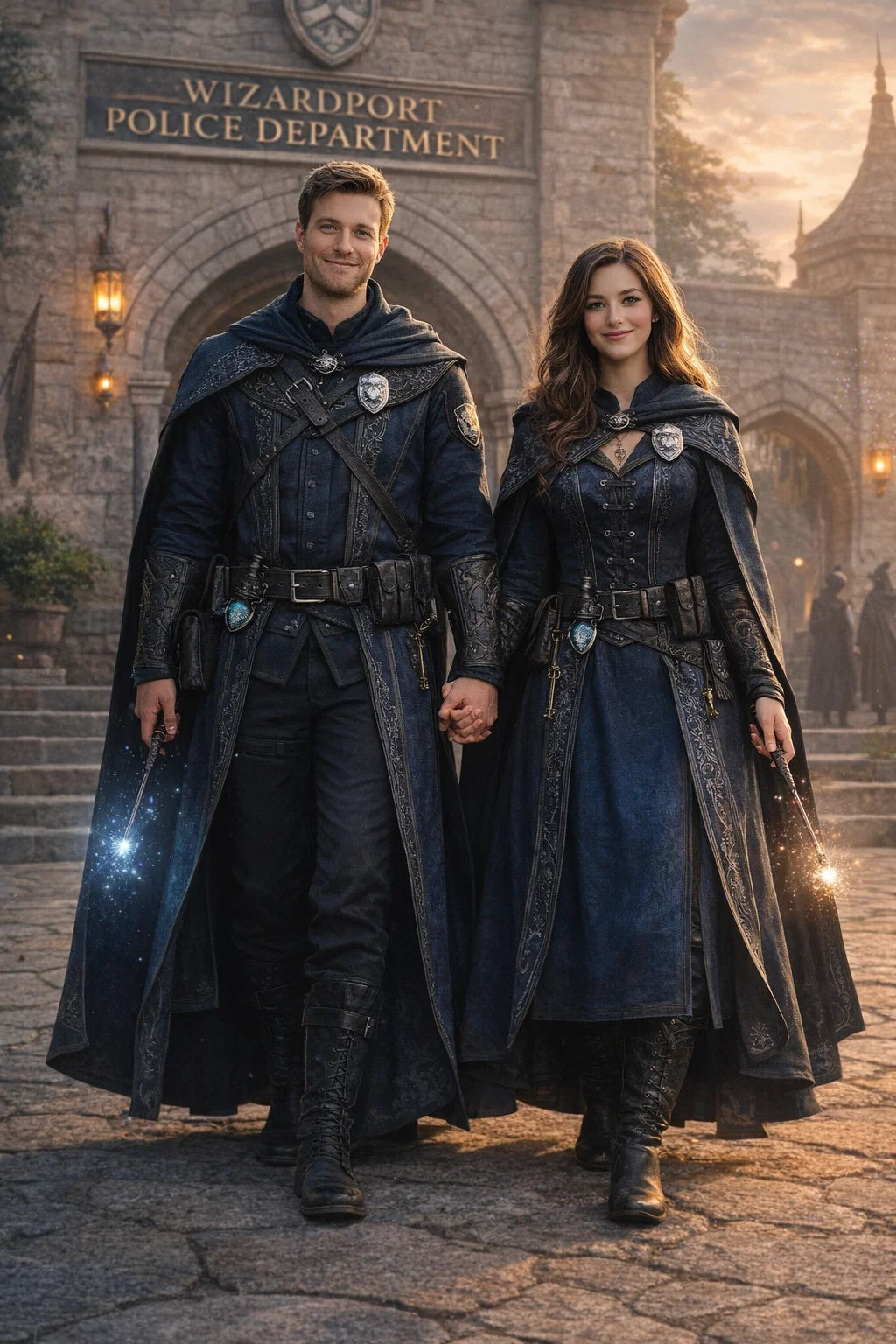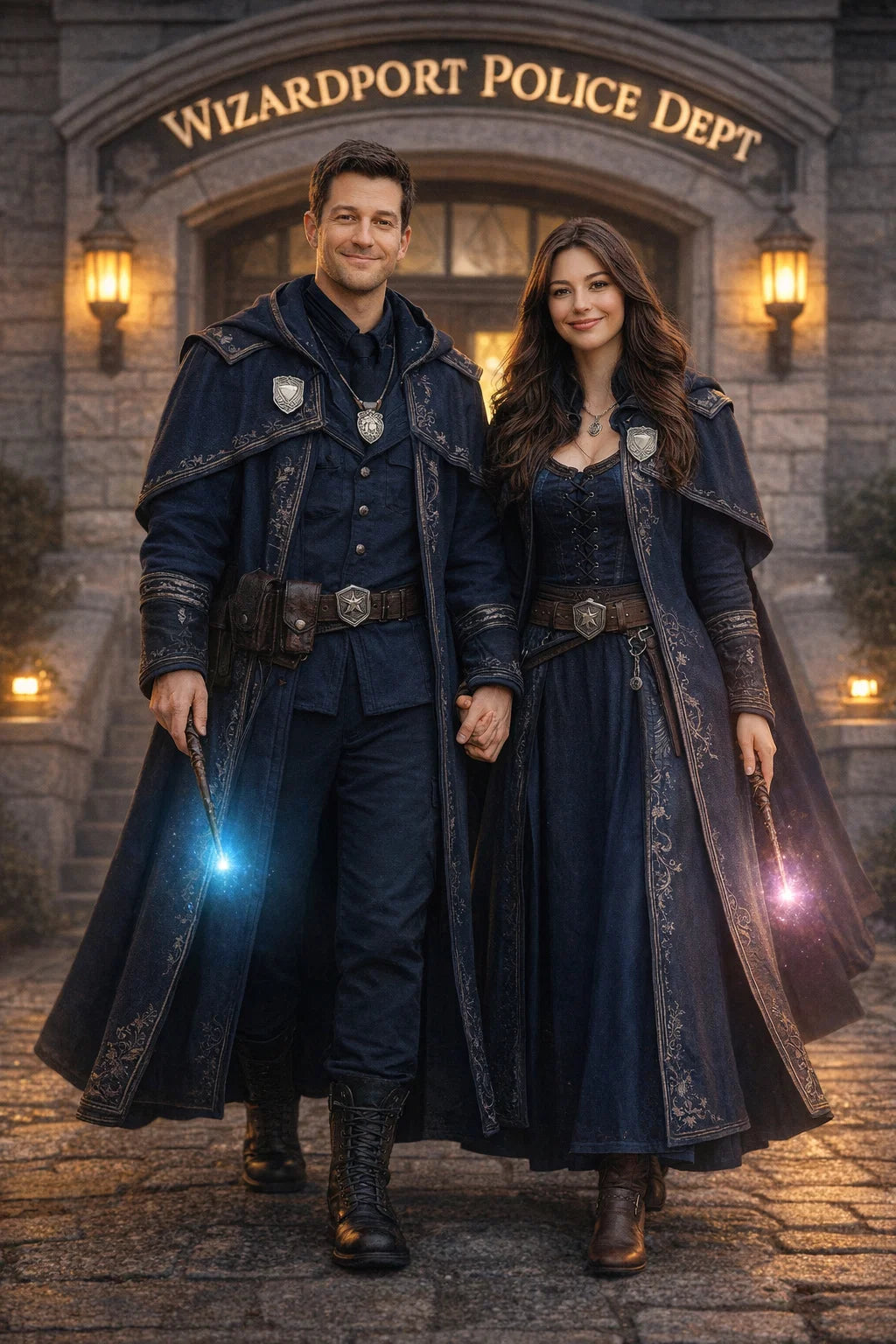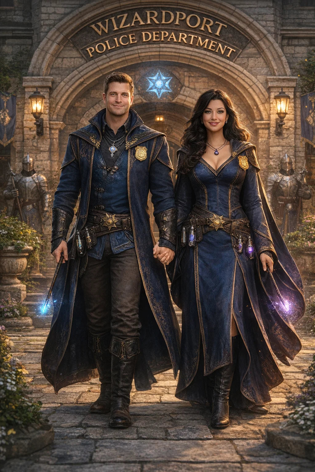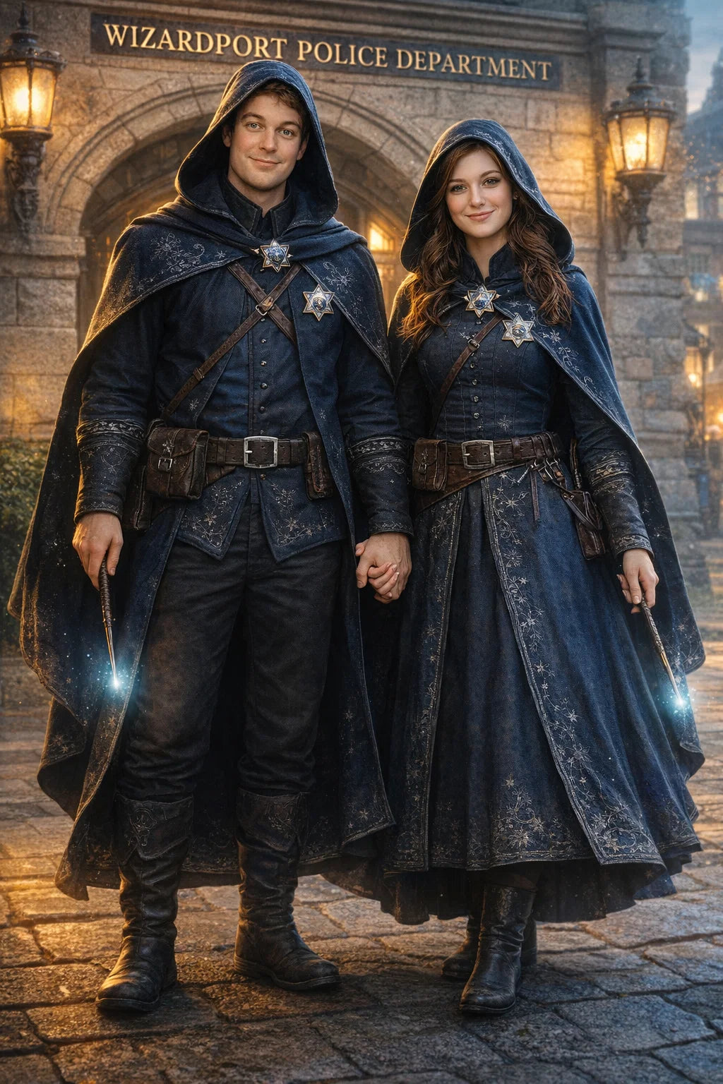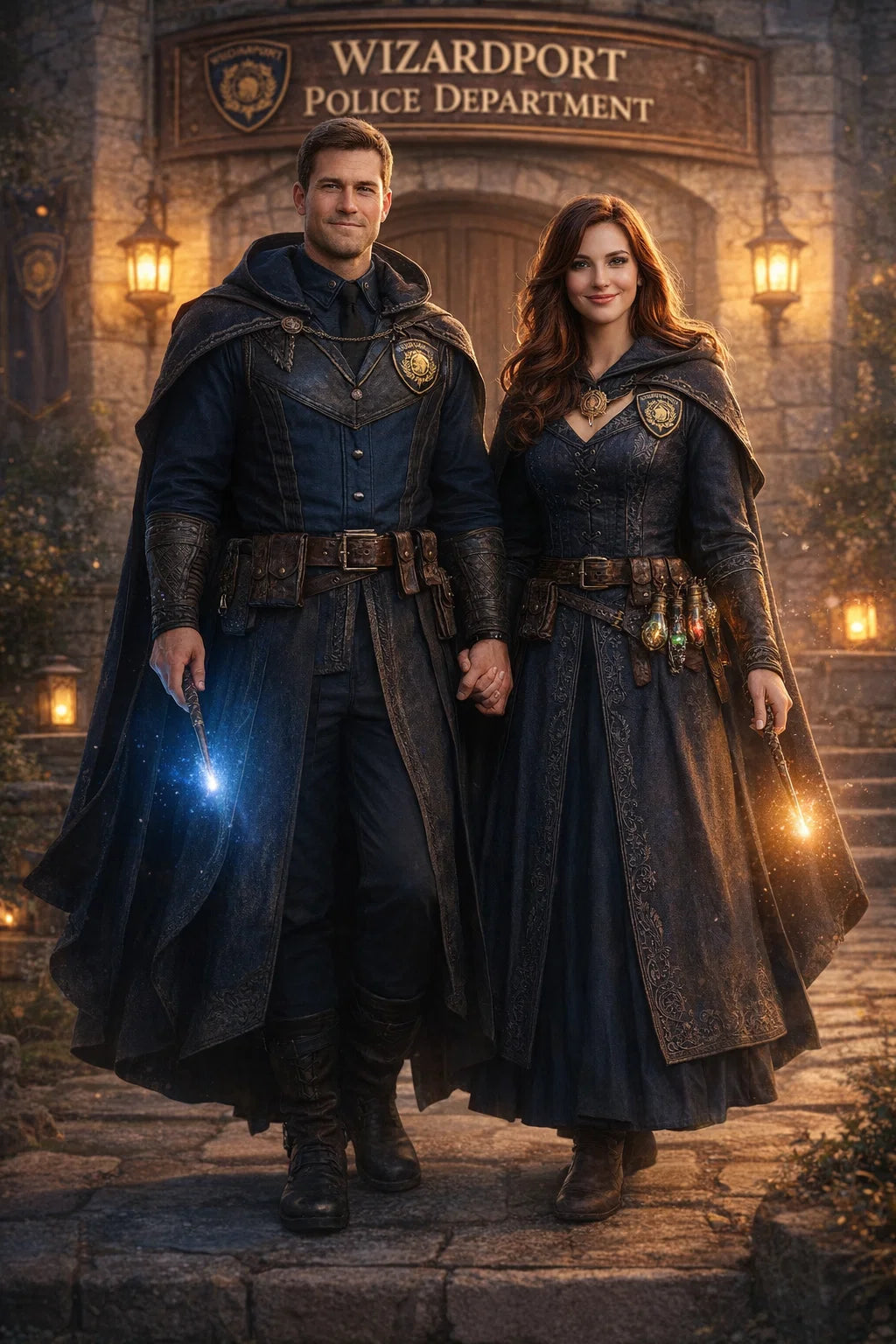 the policeman and policewoman #1 couple of Wizardport Police Department / the 35-year-old good human-witch and good human-wizard couple.