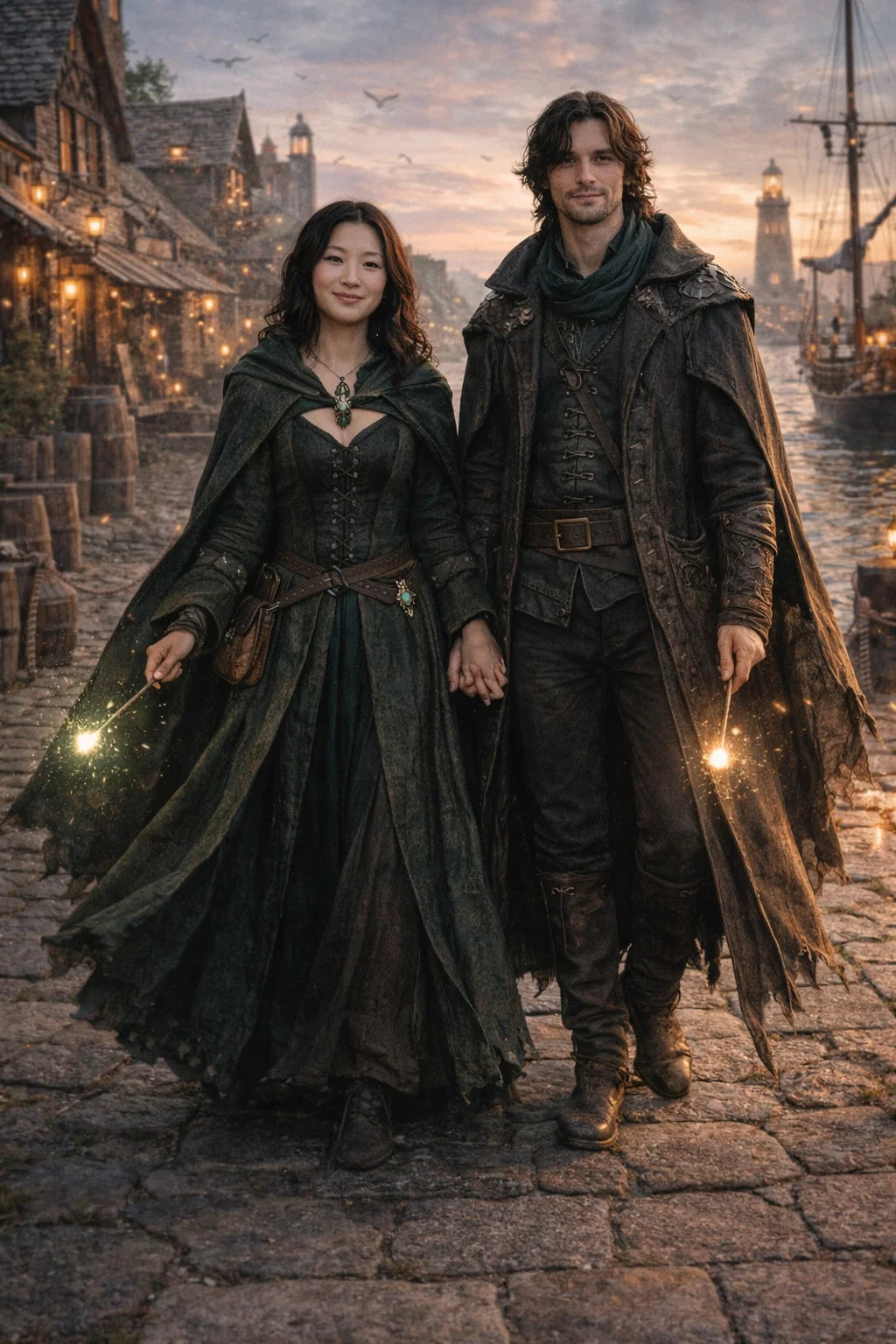 the fireman and firewoman couple #4 of Wizardport Fire Headquarters / the 35-year-old good human-witch and good human-wizard couple.