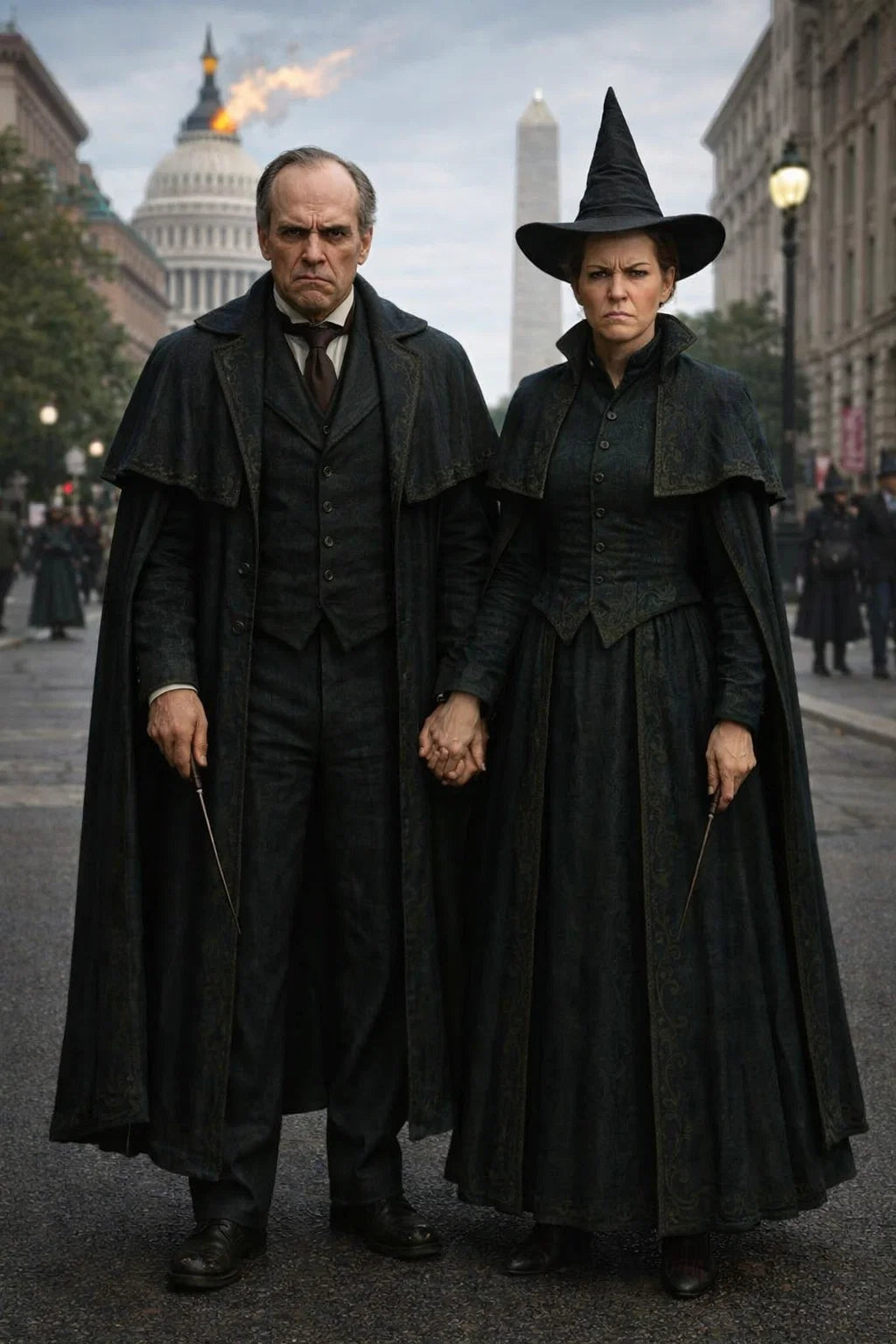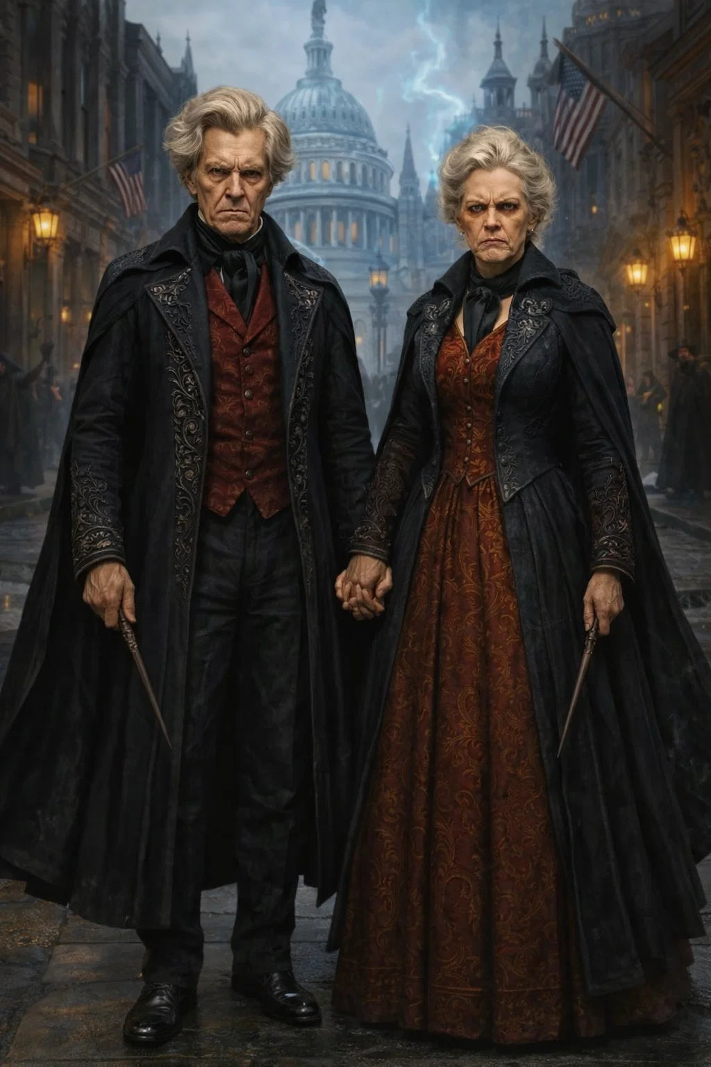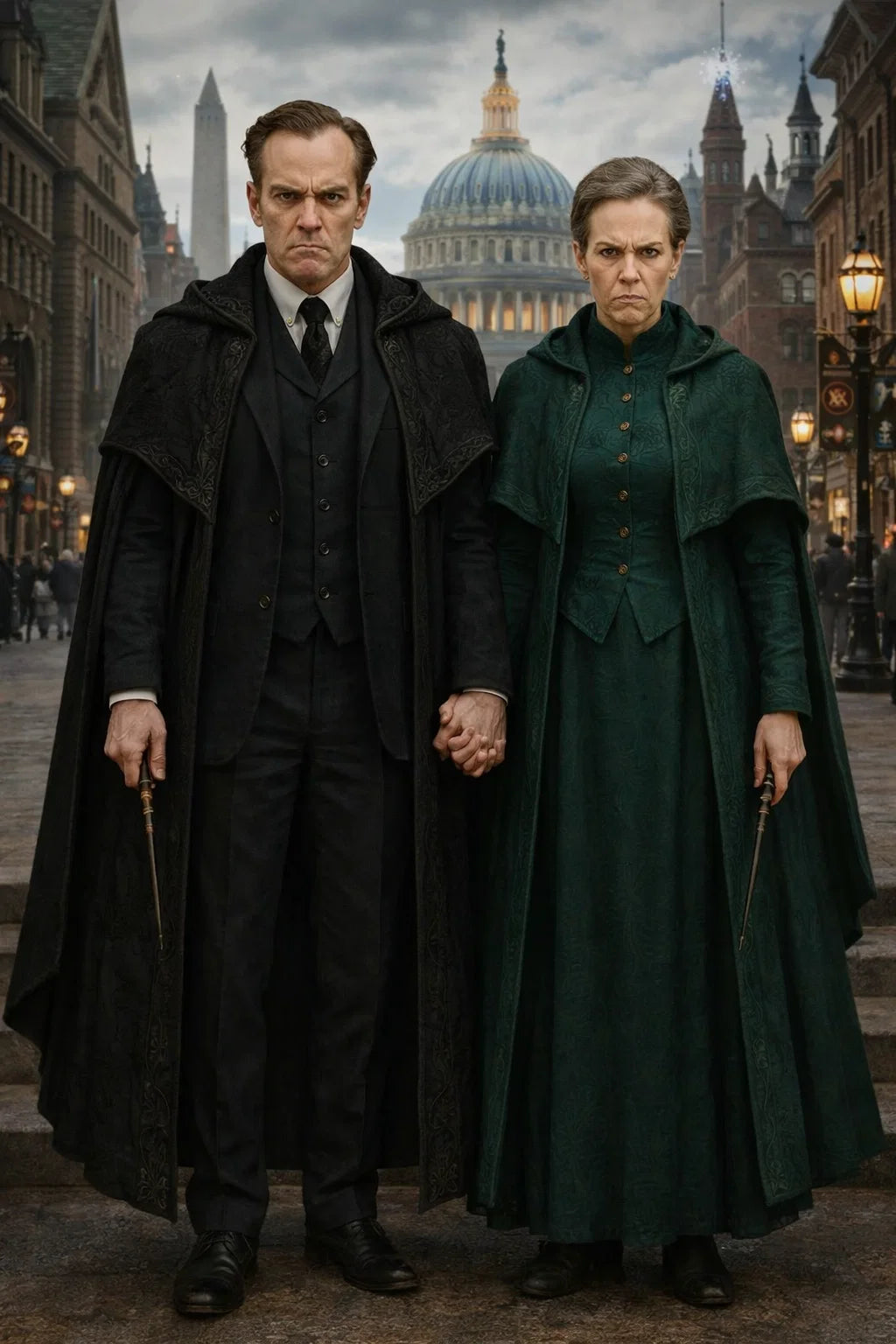 the henchman and henchwoman couple #2 of The Grumpy Governors / a bad human-witch and bad human-wizard couple.