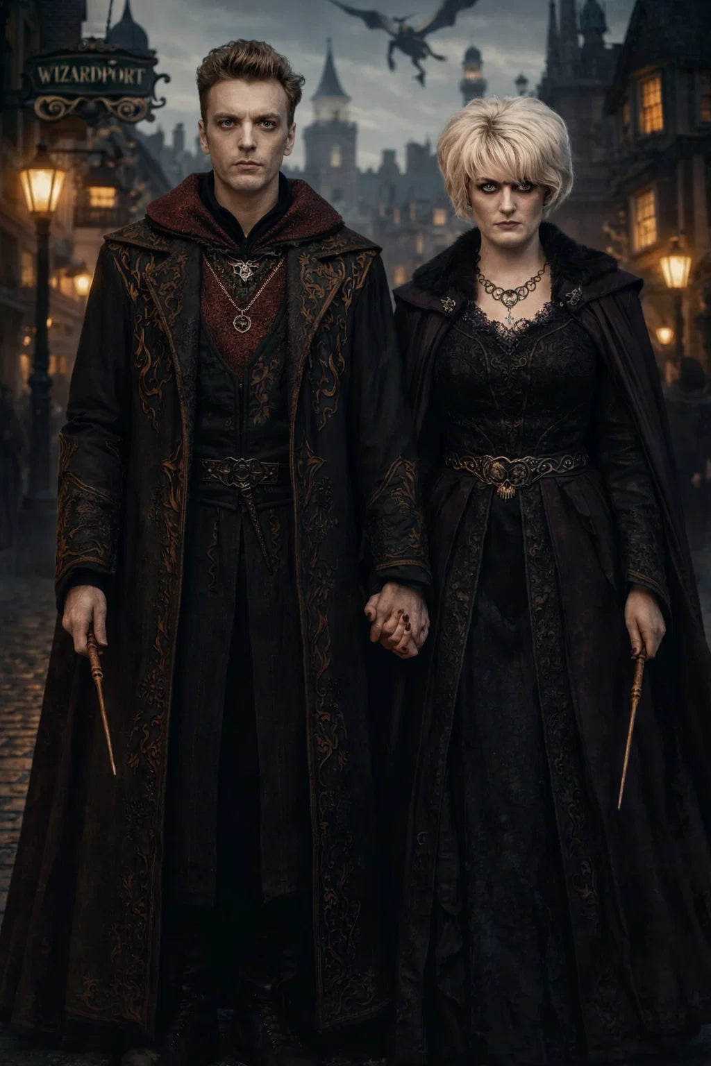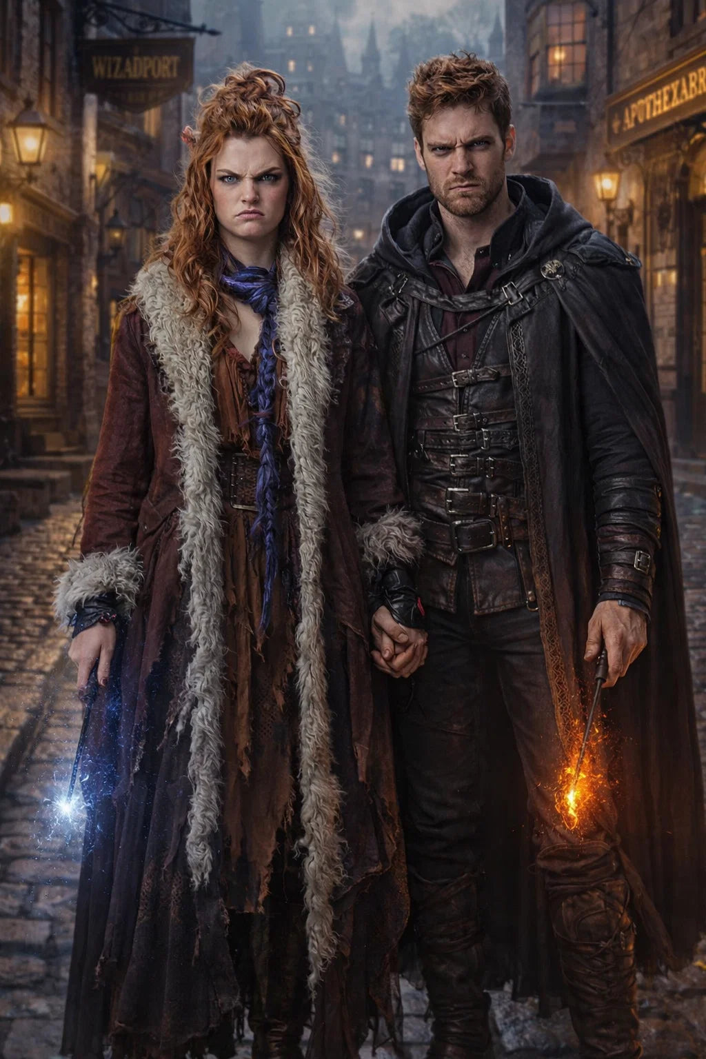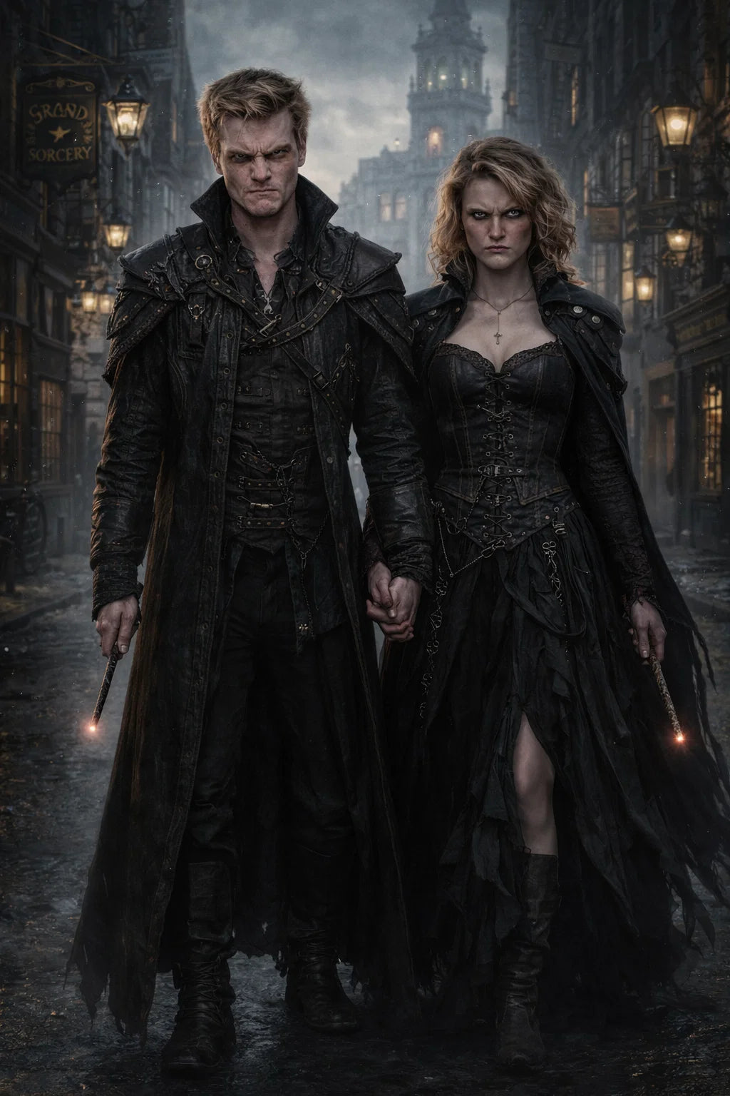the henchman and henchwoman couple #2 The Corrupt Connection / the bad human-witch and bad human-wizard couple.