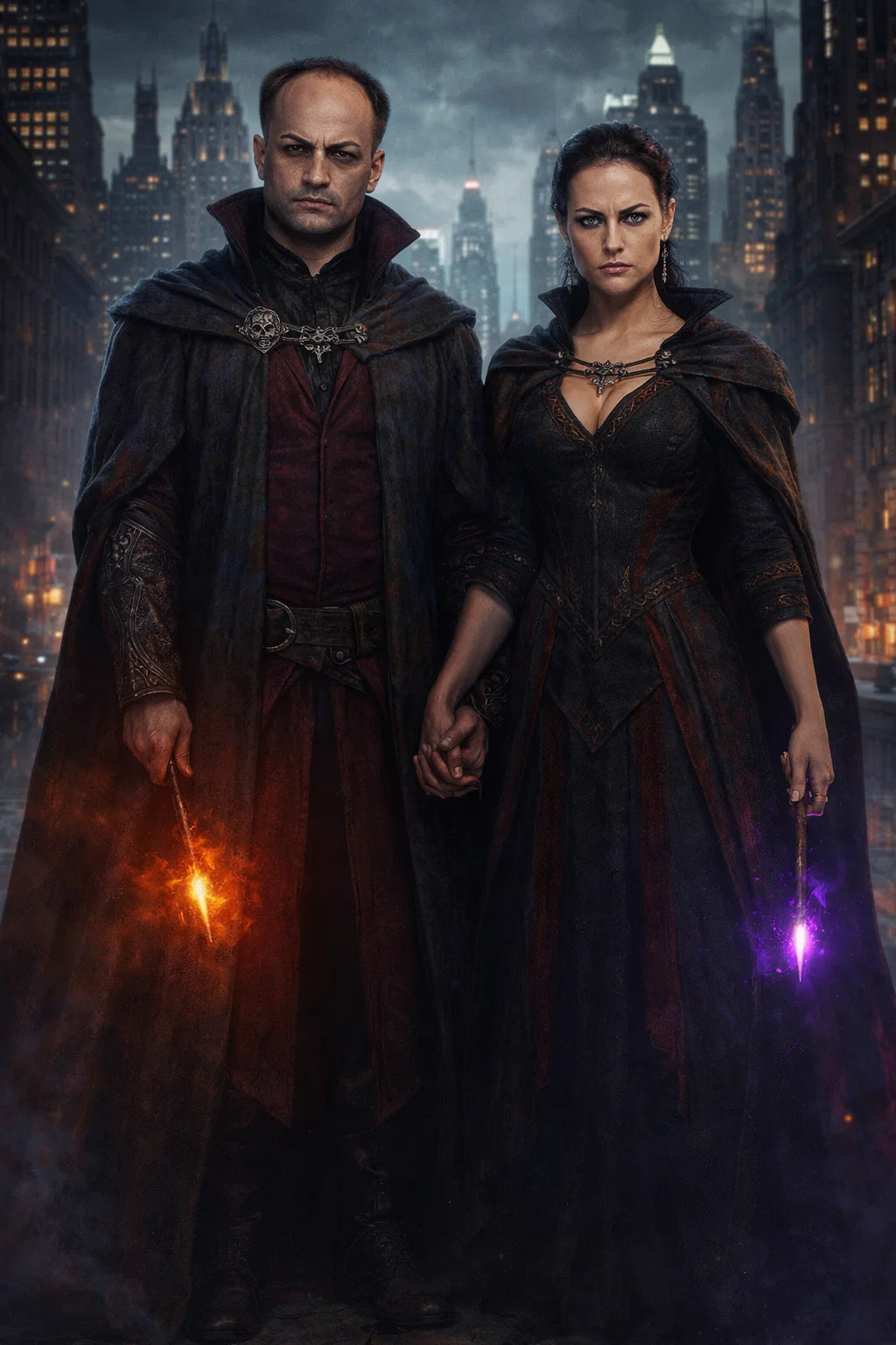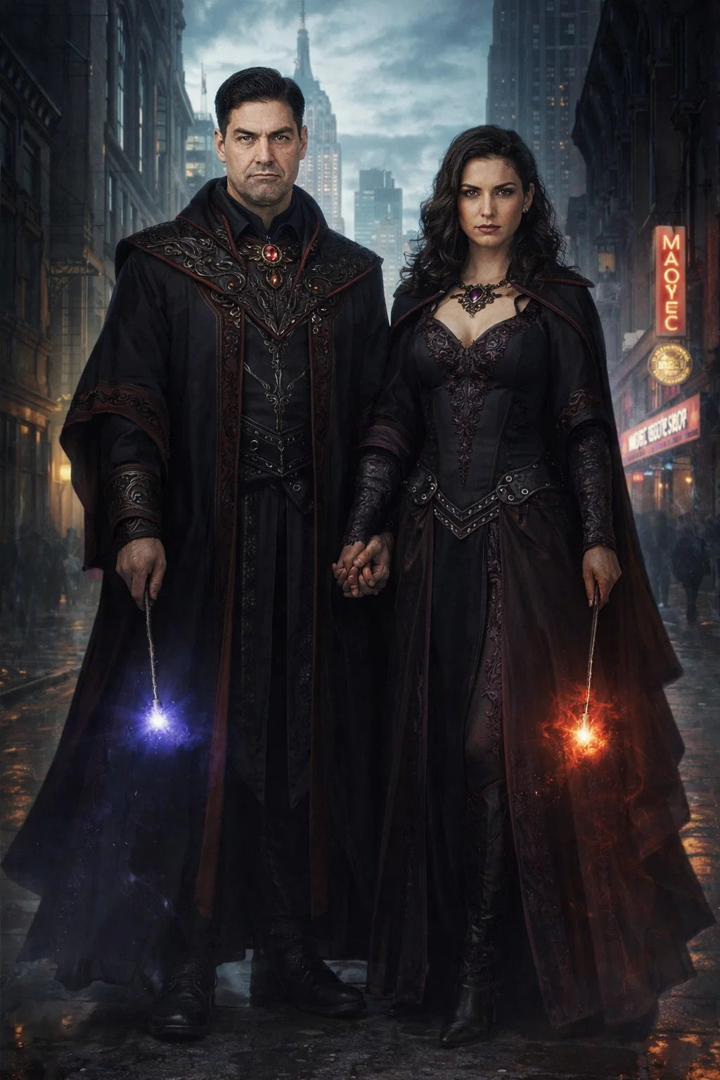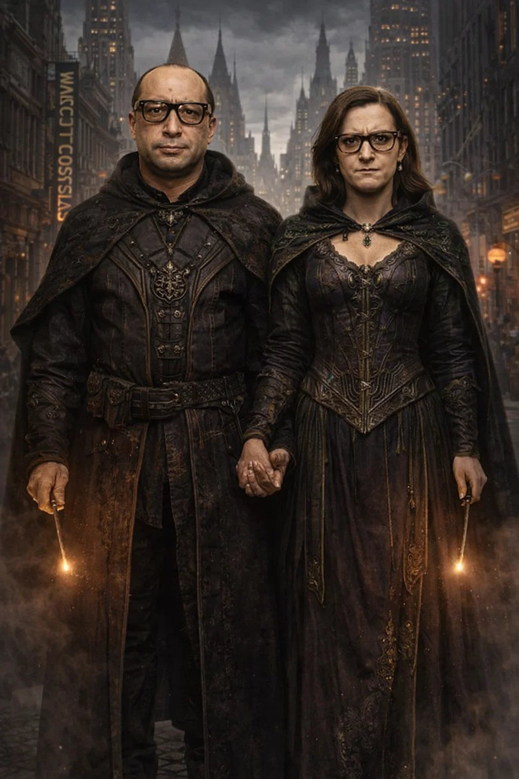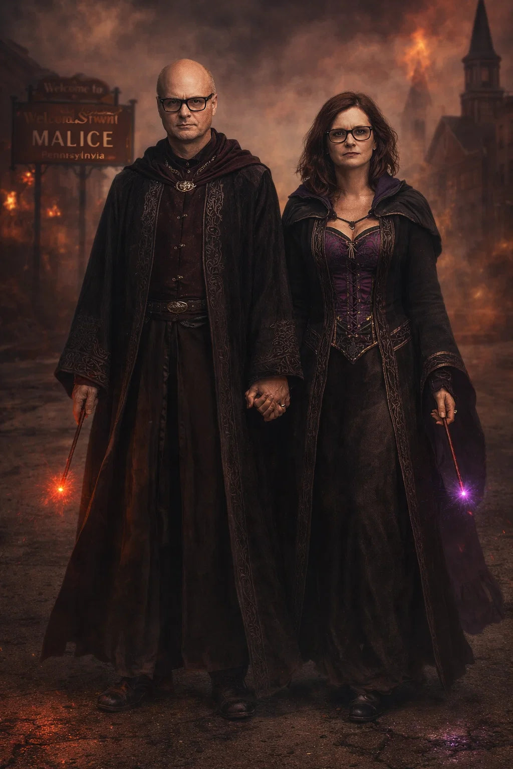 the criminal mastermind and criminal mistressmind couple of The Scary Sorcerers / the 37-year-old bad human-witch and bad human-wizard couple.