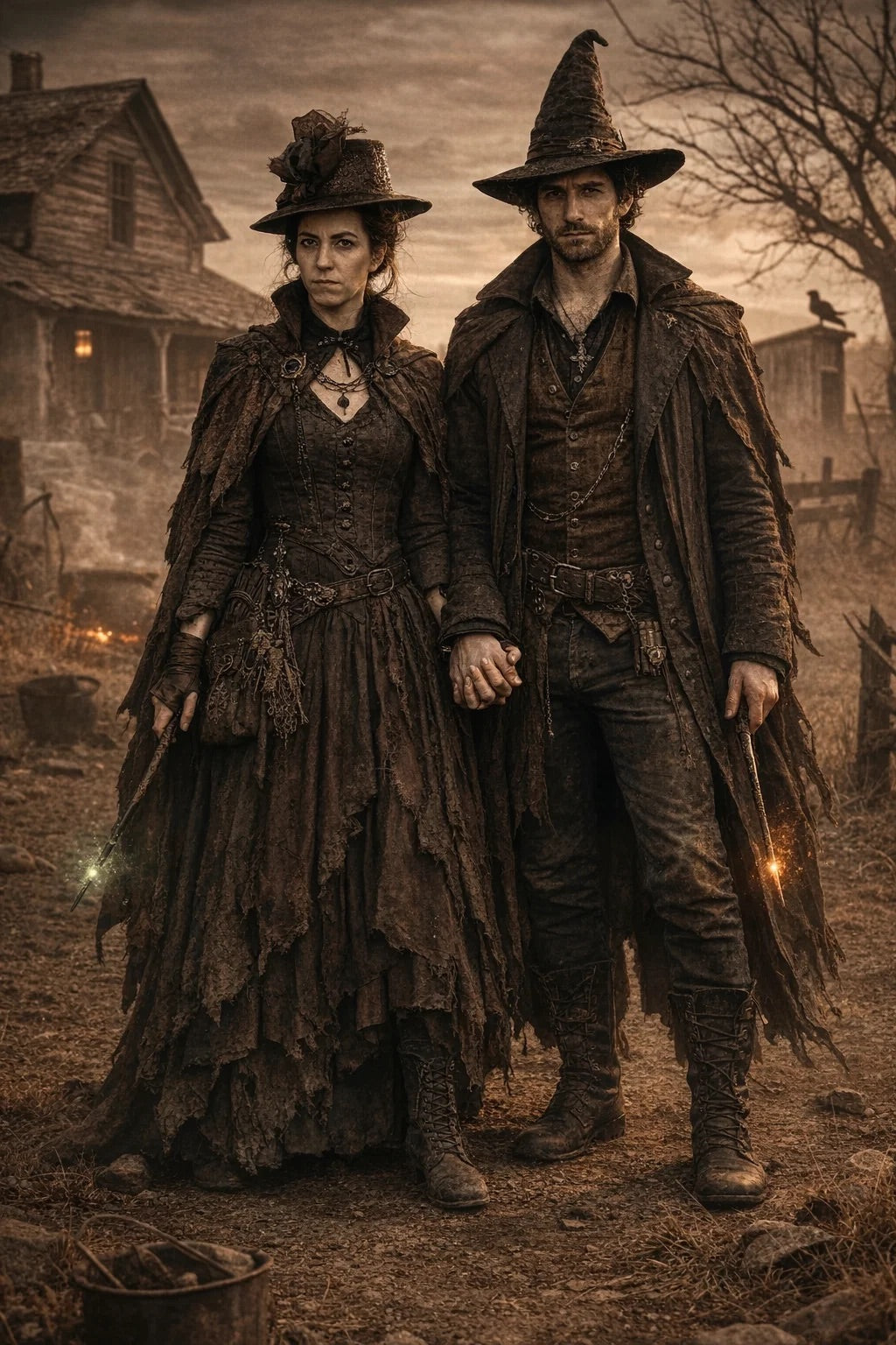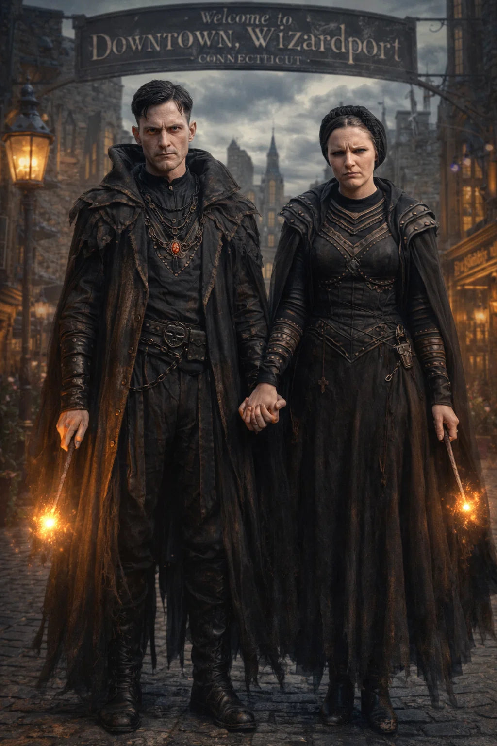 the henchman and henchwoman couple #1 of The Grubby Group / a bad human-witch and bad human-wizard couple.