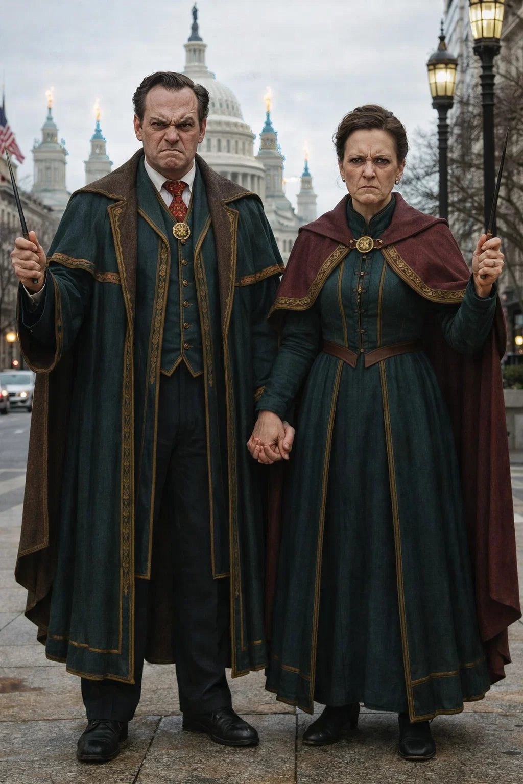 the criminal mastermind and criminal mistressmind couple of The Grumpy Governors / a bad human-witch and bad human-wizard couple.