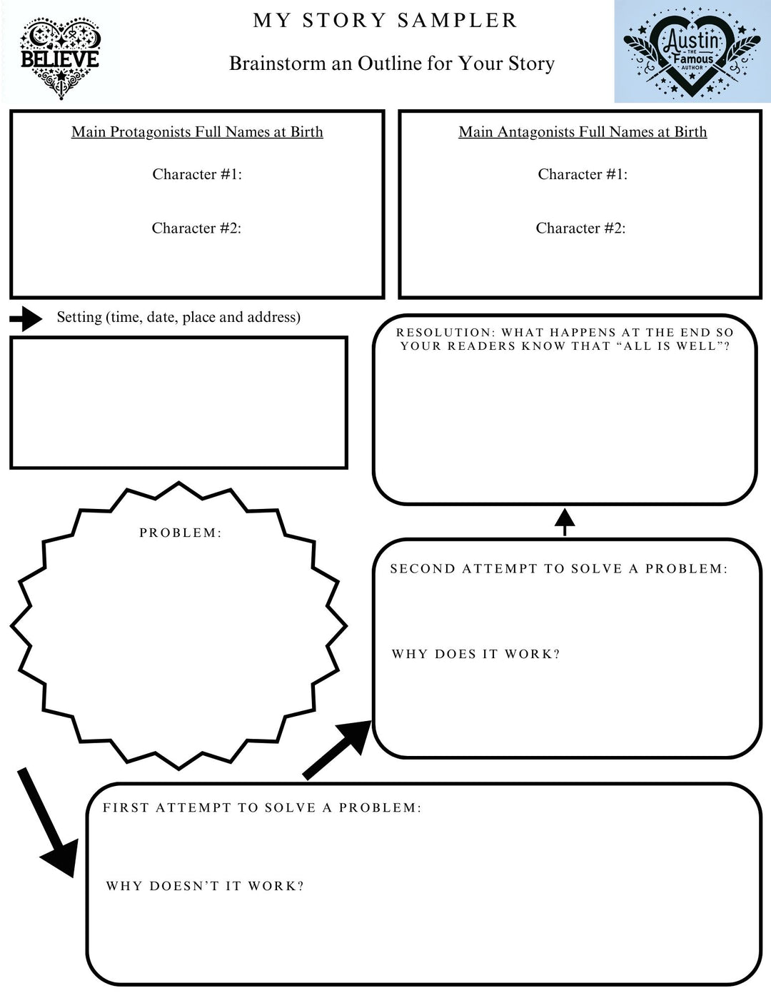 Use the "Inside Outside" template for story writing. Describe your character with 5 phrases about their appearance